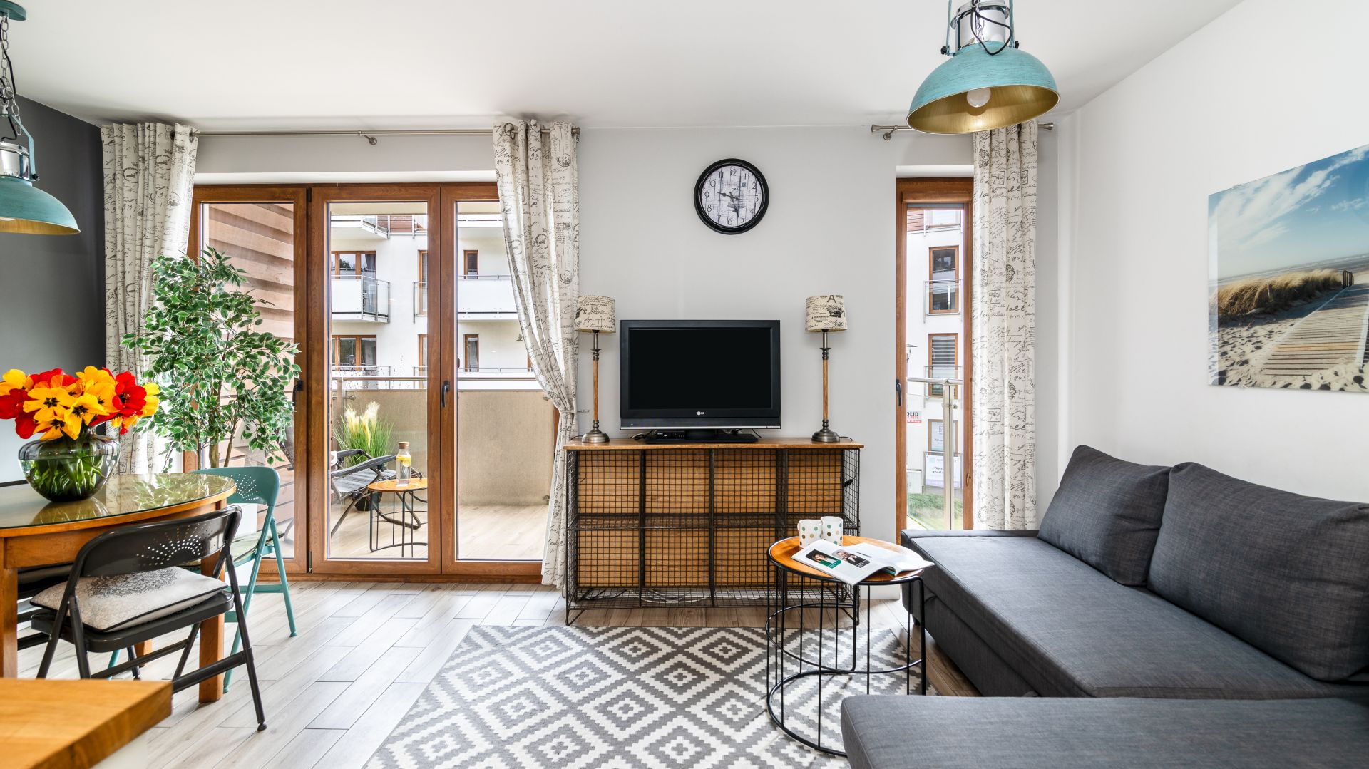 Apartament wyposażony jest również w telewizor, dzięki czemu można cieszyć się ulubionymi programami lub filmami.
