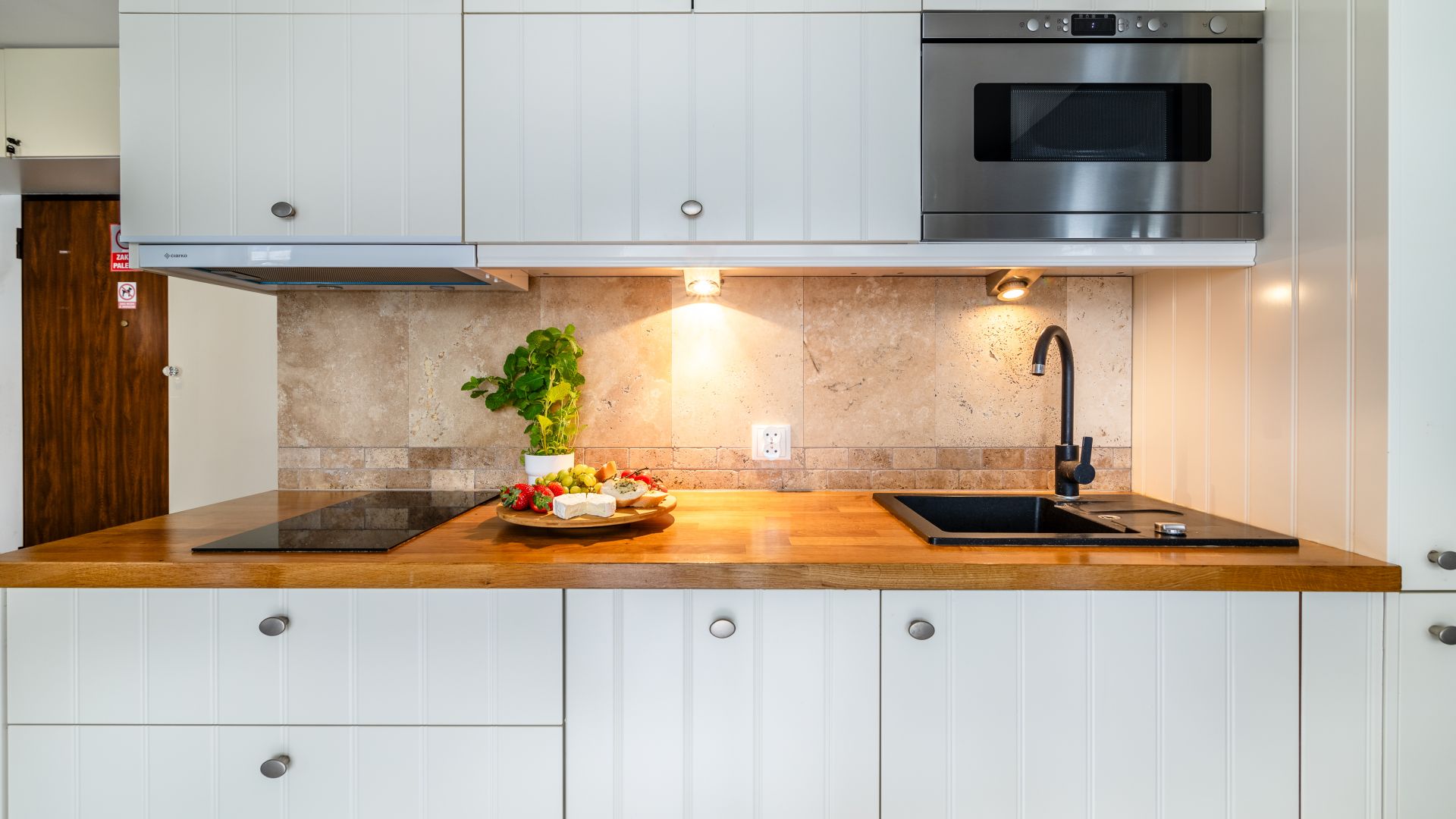 Salon z aneksem kuchennym jest sercem apartamentu. To idealne miejsce do relaksu po dniu pełnym przygód. Aneks kuchenny jest w pełni wyposażony w najnowsze urządzenia, takie jak lodówka, mikrofalówka, zmywarka i czajnik, a także niezbędne akcesoria kuchenne, które umożliwią przygotowanie ulubionych posiłków.