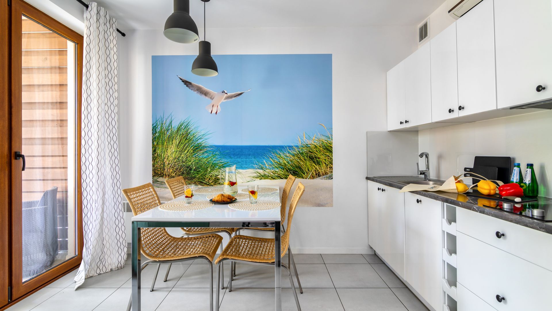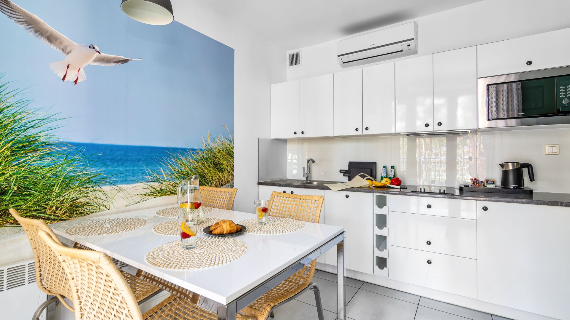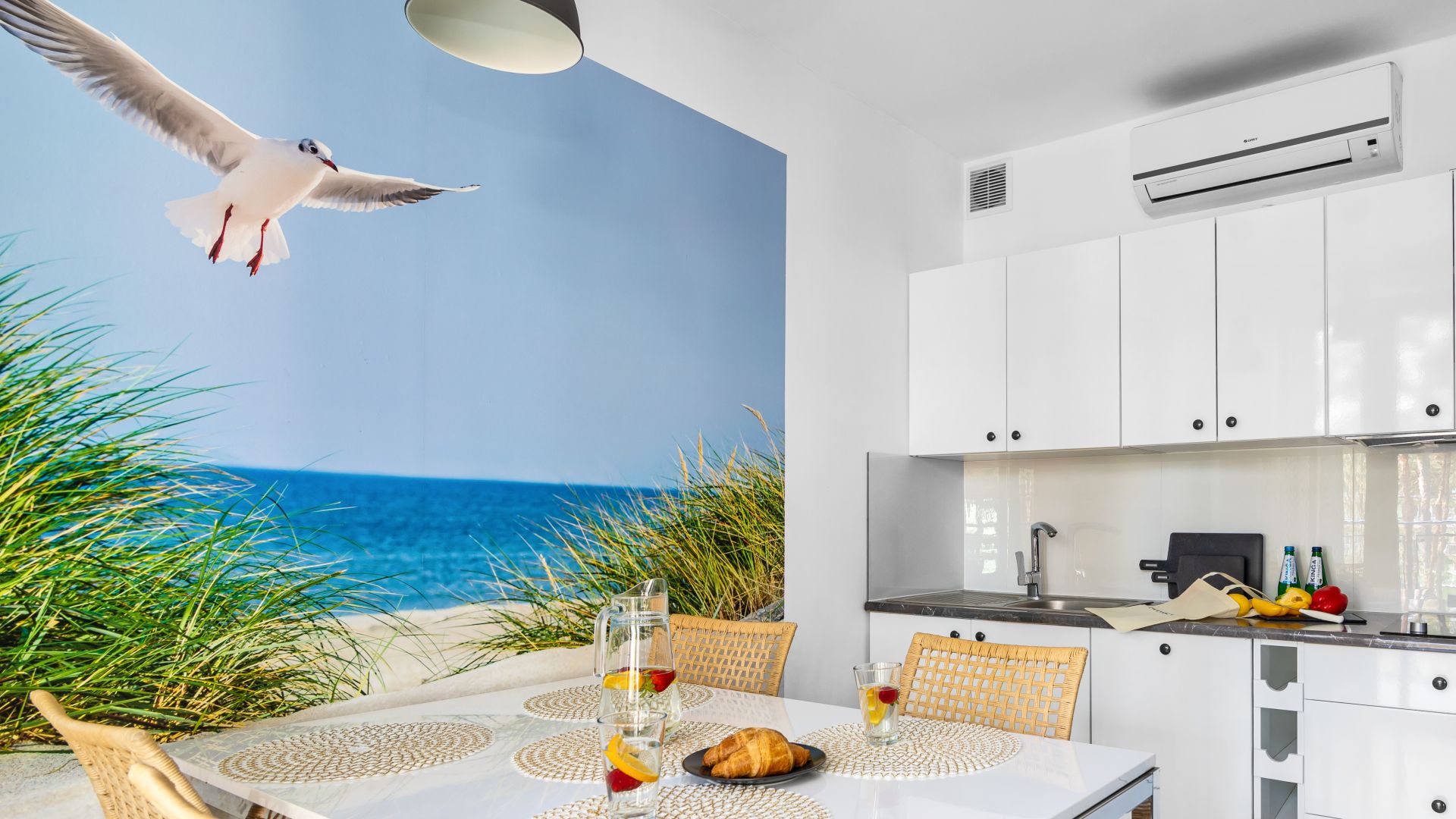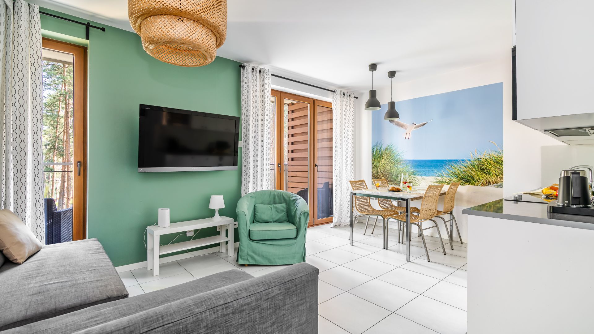 Oferujemy Państwu komfortowy apartament, zlokalizowany w nadmorskiej miejscowości Stegna, idealny na wakacyjny pobyt. Apartament ma 36 m2 powierzchni i może nocować w nim do 5 osób. Otwarty salon połączono z aneksem kuchennym oraz wyjściem na taras, z którego możemy podziwiać wschód słońca. W salonie umiejscowiono narożnik, który po rozłożeniu zmienia przestrzeń w część sypialną. Część kuchenna to w pełni wyposażony aneks. Oprócz płyty grzewczej i lodówki znalazły się tam także mikrofalówka oraz zmywarka. Dla naszych gości przygotowaliśmy także niezbędne naczynia, sztućce, kawę i herbatę. Na komfortowe zjedzenie posiłku pozwoli stół jadalniany. W upalne dni, możemy obniżyć temperaturę za sprawą klimatyzacji. Studio posiada własną łazienkę z prysznicem oraz sypialnie ze 140 cm łóżkiem sypialnianym i wygodnym łóżkiem jednoosobowym.