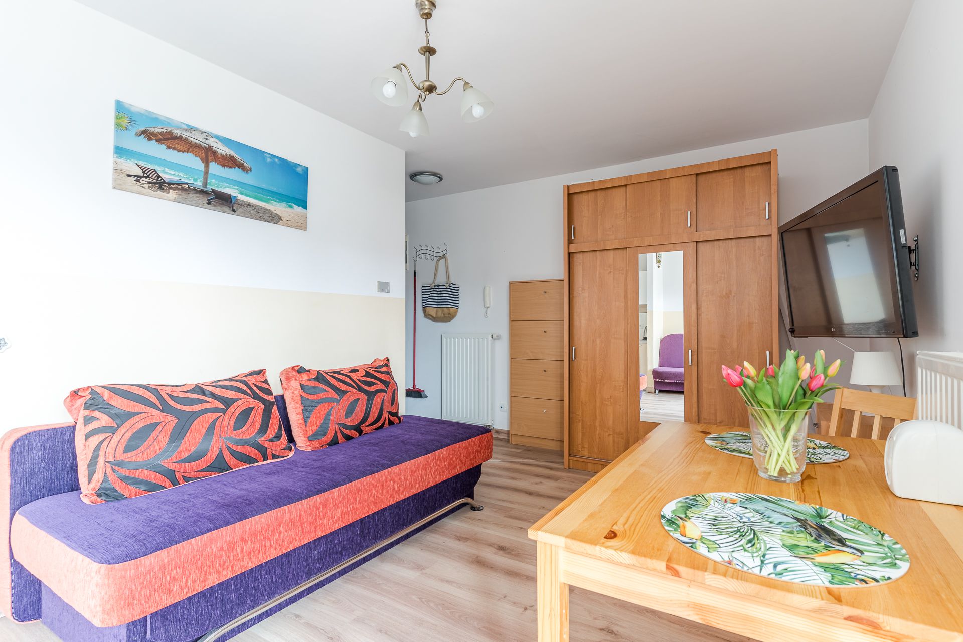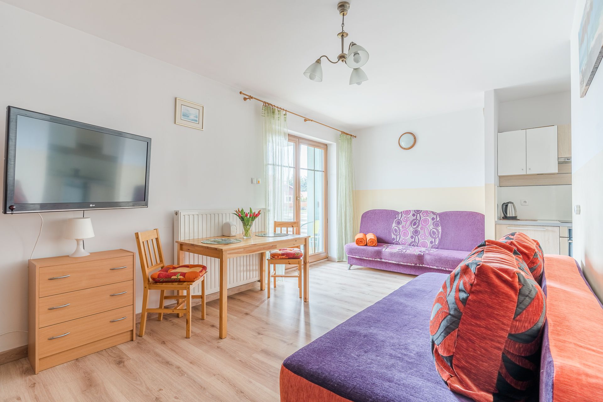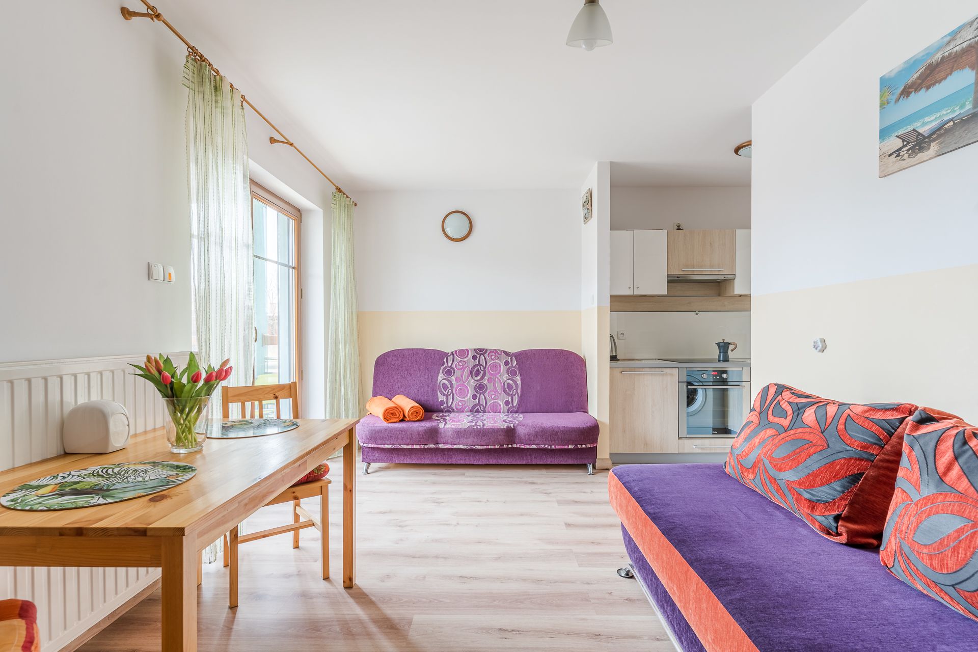 Oferujemy Państwu Apartament 4-osobowy o powierzchni 26 mkw zlokalizowany w kompleksie Willa Turkusowa na parterze. Miejsce parkingowe na terenie ogrodzonego obiektu dostępne jest w cenie pobytu dla jednego samochodu naszych Gości. Nasz apartament składa się z salonu z balkonem, w pełni wyposażonego aneksu kuchennego oraz łazienki z umywalką, WC i prysznicem. Na wyposażeniu mieszkania dostępne jest TV, pralka, lodówka, kuchenka elektryczna oraz mikrofalowa, czajnik, żelazko, suszarka do włosów, WiFi. W apartamencie znajdują się dwie rozkładane sofy. Zapewniamy ręczniki i pościel. Akceptujemy również zwierzęta domowe za dodatkową opłatą. Kompleks Willa Turkusowa leży w środku Kątów Rybackich około 1,4 km od pięknej, szerokiej i piaszczystej plaży. W okolicy znajduje się plac zabaw, Muzeum Zalewu Wiślanego, port i marina przy Zalewie Wiślanym, sklepy, restauracje oraz malowniczy las sosnowy z licznymi szlakami rowerowymi i ścieżkami nordic walking dla lubiących aktywny wypoczynek. Obiekt Willa Turkusowa oraz nasz apartament dedykowany jest głównie dla rodzin z dziećmi, pragnących odetchnąć z dala od zgiełku i hałasu. Na terenie kompleksu znajduje się plac zabaw dla dzieci. Przez cały okres pobytu Gości, jesteśmy dostępni pod telefonem oraz w biurze - gotowi do pomocy w razie jakichkolwiek problemów.
