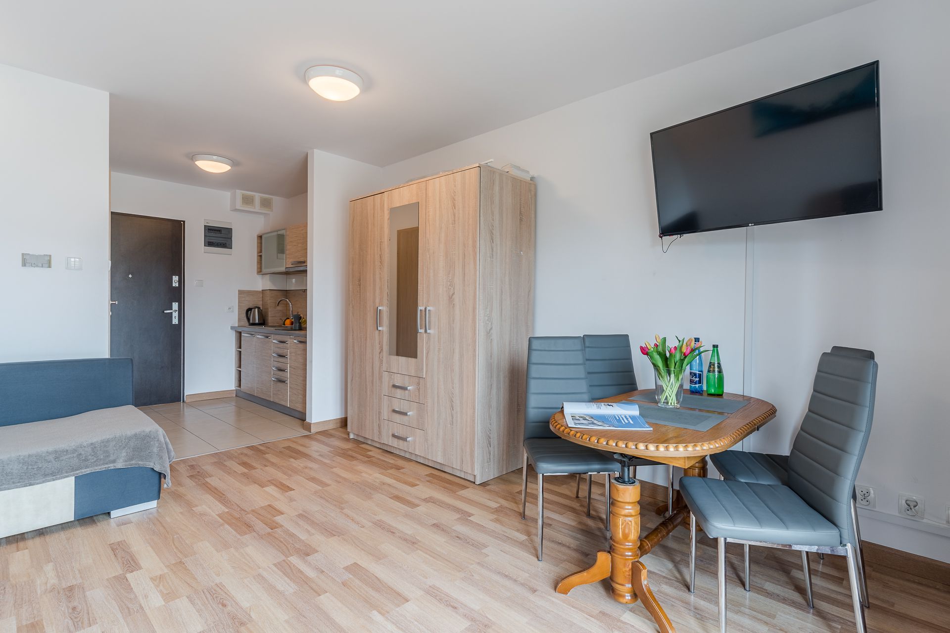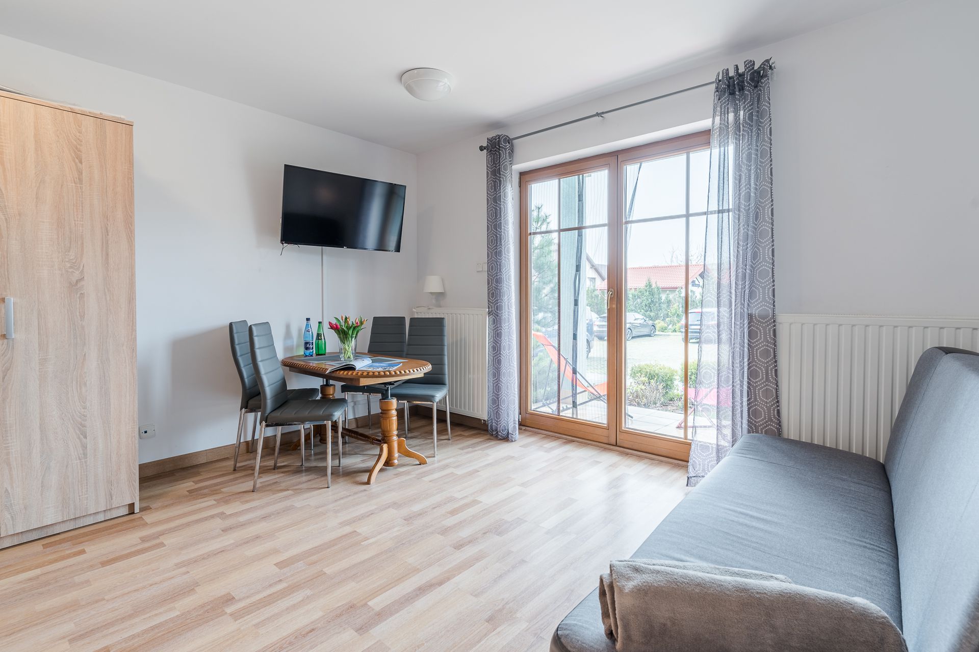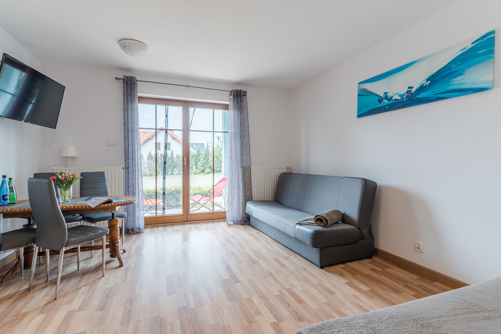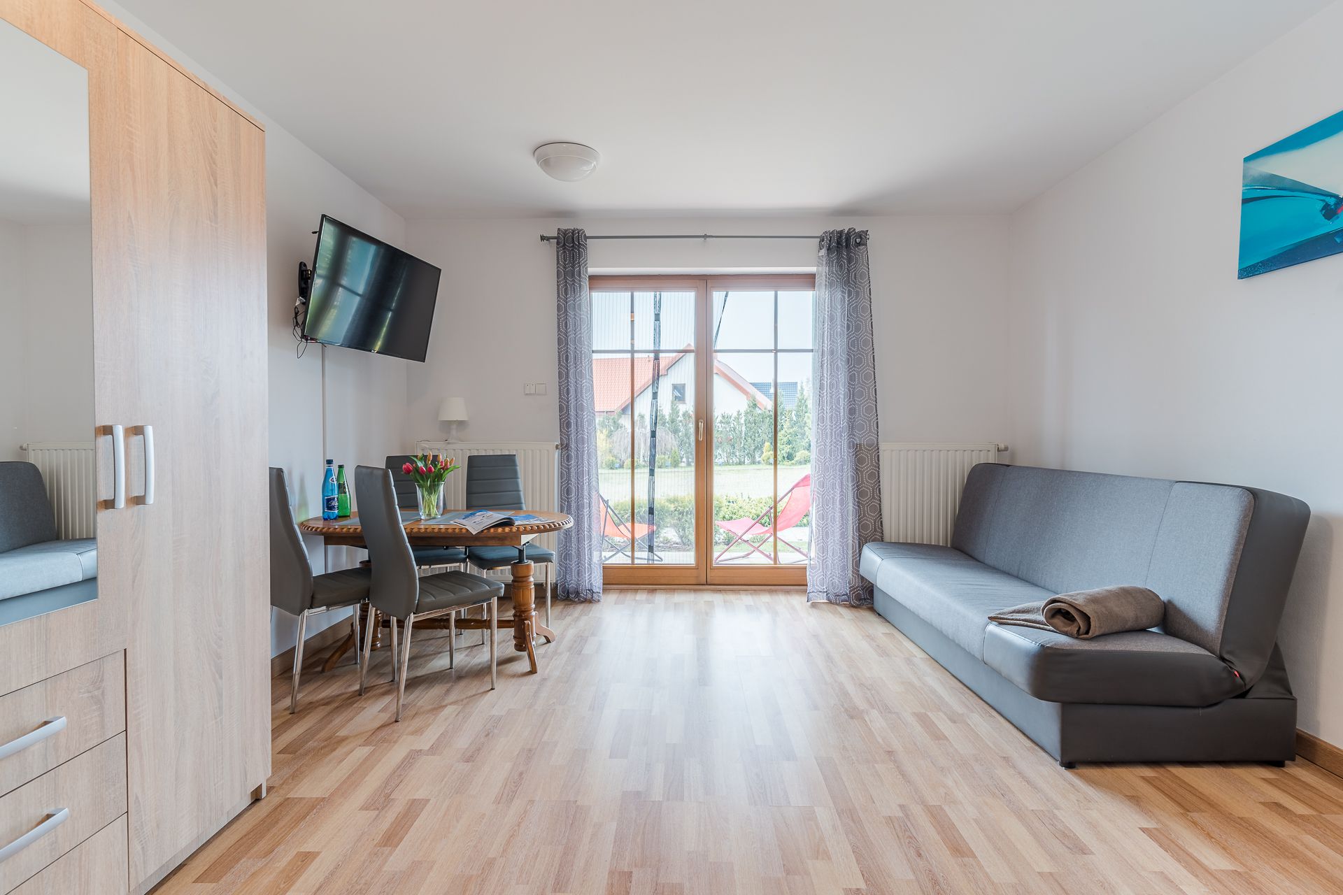 Nasz apartament zlokalizowany jest w samym centrum Kątów Rybackich na zamkniętym i bezpiecznym kompleksie Willa Turkusowa. Mieszkanie ma powierzchnię 26 mkw dedykowane jest dla maksymalnej liczby 4 osób i znajduje się na parterze. Apartament składa się z salonu z balkonem i aneksem kuchennym, oraz łazienki. Aneks kuchenny wyposażony jest w zastawę stołową, akcesoria niezbędne do przygotowywania posiłków, lodówkę, kuchenkę elektryczną i mikrofalową, czajnik, żelazko. Na wyposażenie łazienki składa się umywalka, WC, prysznic, pralka i suszarka do włosów.Akceptujemy zwierzęta domowe za dodatkową opłatą. W apartamencie znajdują się dwie dwuosobowe sofy rozkładane. Zapewniamy ręczniki i pościel. Dla naszego apartamentu dedykowane jest miejsce miejsce parkingowe przed budynkiem w cenie pobytu dla jednego samochodu naszych Gości. Na terenie obiektu znajduje się bezpieczny plac zabaw dla dzieci zapewniający wypoczynek oraz zabawę na świeżym powietrzu. Kompleks Willa Turkusowa oraz nasz apartament to idealne miejsce dla ceniących sobie ciszę i spokój w otoczeniu natury, czyli coś dla ciała, duszy i umysłu. Przez cały okres pobytu Gości, jesteśmy dostępni pod telefonem oraz w biurze - gotowi do pomocy w razie jakichkolwiek problemów.
