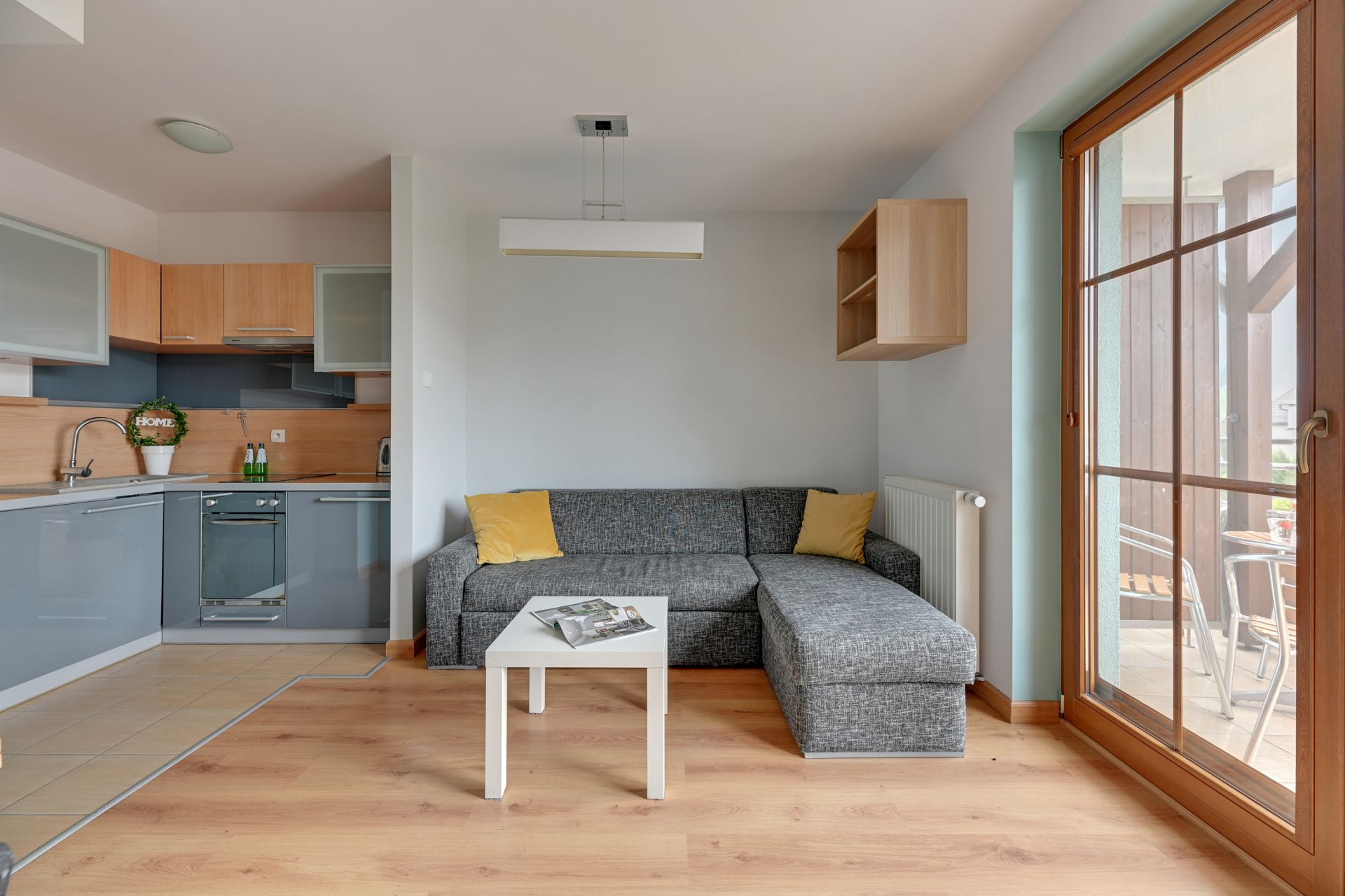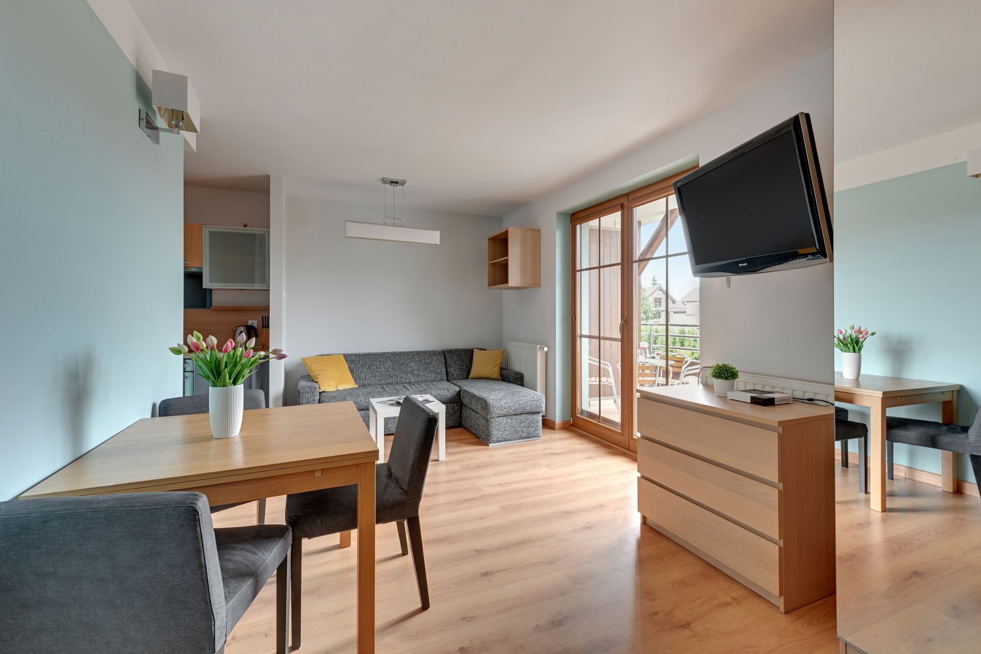 Oferujemy Państwu Apartament 4-osobowy o powierzchni 26 mkw zlokalizowany w kompleksie Willa Turkusowa na piętrze. Miejsce parkingowe na terenie ogrodzonego obiektu dostępne jest w cenie pobytu dla jednego samochodu naszych Gości. Nasz apartament składa się z salonu z balkonem, w pełni wyposażonego aneksu kuchennego oraz łazienki z umywalką, WC i prysznicem. Na wyposażeniu mieszkania dostępne jest TV, pralka, lodówka, kuchenka elektryczna oraz piekarnik, czajnik, żelazko, suszarka do włosów. W apartamencie znajdują się narożnik oraz rozkładana sofa. Zapewniamy ręczniki oraz pościel. Zwierzęta są akceptowane za dodatkową opłatą. Kompleks Willa Turkusowa leży w środku Kątów Rybackich około 1,4 km od pięknej, szerokiej i piaszczystej plaży. W okolicy znajduje się plac zabaw, wiata grillowa, Muzeum Zalewu Wiślanego, port i marina przy Zalewie Wiślanym, sklepy, restauracje oraz malowniczy las sosnowy z licznymi szlakami rowerowymi i ścieżkami nordic walking dla lubiących aktywny wypoczynek. Obiekt Willa Turkusowa oraz nasz apartament dedykowany jest głównie dla rodzin z dziećmi, pragnących odetchnąć z dala od zgiełku i hałasu. Na terenie kompleksu znajduje się plac zabaw dla dzieci. Przez cały okres pobytu Gości, jesteśmy dostępni pod telefonem oraz w biurze - gotowi do pomocy w razie jakichkolwiek problemów.
