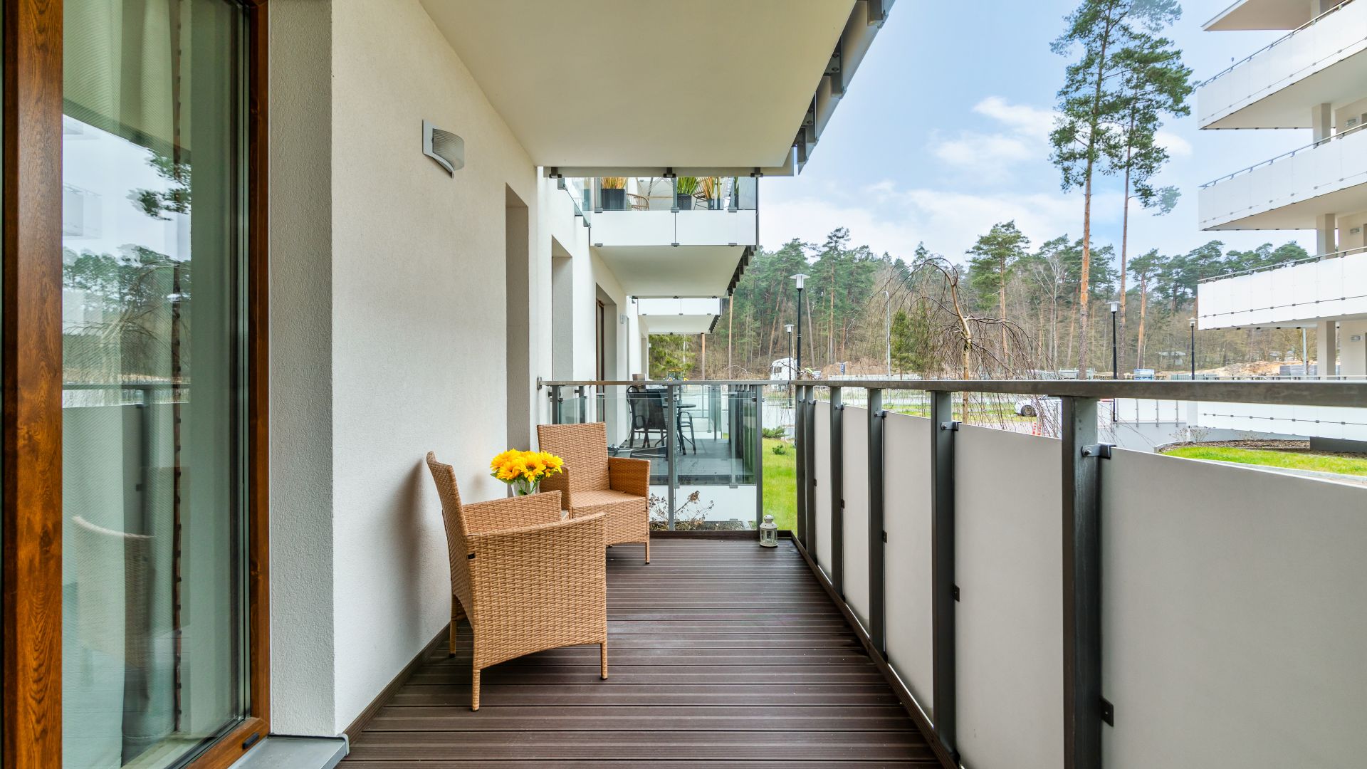 Stegna Park to nowoczesny kompleks kilku budynków o eleganckiej architekturze śródziemnomorskiej. Charakterystyczne duże, przeszklone okna i balkony, wpuszczają naturalne światło do apartamentów. Przestronne tarasy zapraszają na poranną kawę przy wschodzie słońca i śpiewie ptaków, a wieczorami relaks przy lampce wina. Wewnątrz budynków szerokie przejścia i schody oraz nowoczesne windy osobowe. Cały obiekt posiada własne ogrodzenie, jest monitorowany i chroniony całodobowo, a wjazd i wyjazd na teren obsługiwany przez ochronę. Kompleks powstał na terenie pięknej nadmorskiej przyrody, charakteryzującej się iglastymi lasami i kołyszącymi trawami w bliskości plaży i morza (około 450m). Trakt prowadzący do morza to liczne kafejki, punkty gastronomiczne, sklepiki.