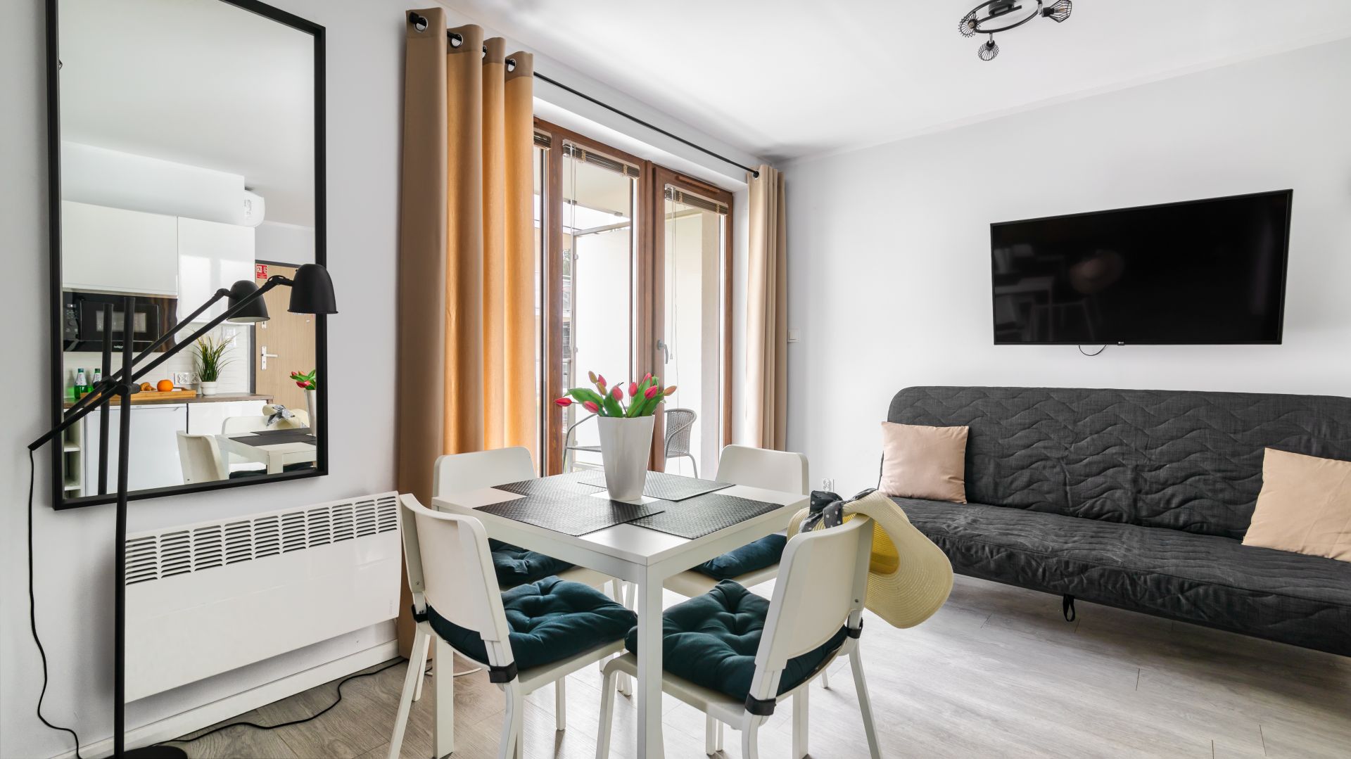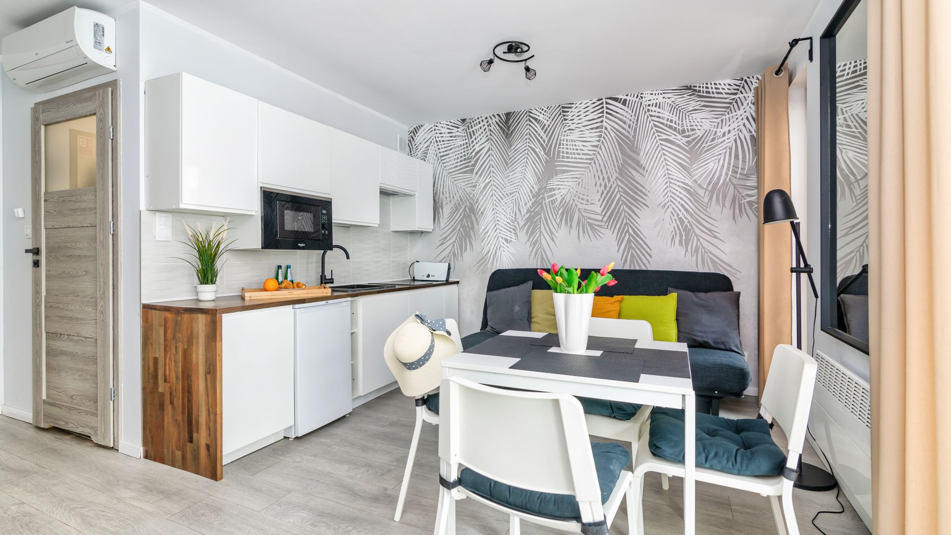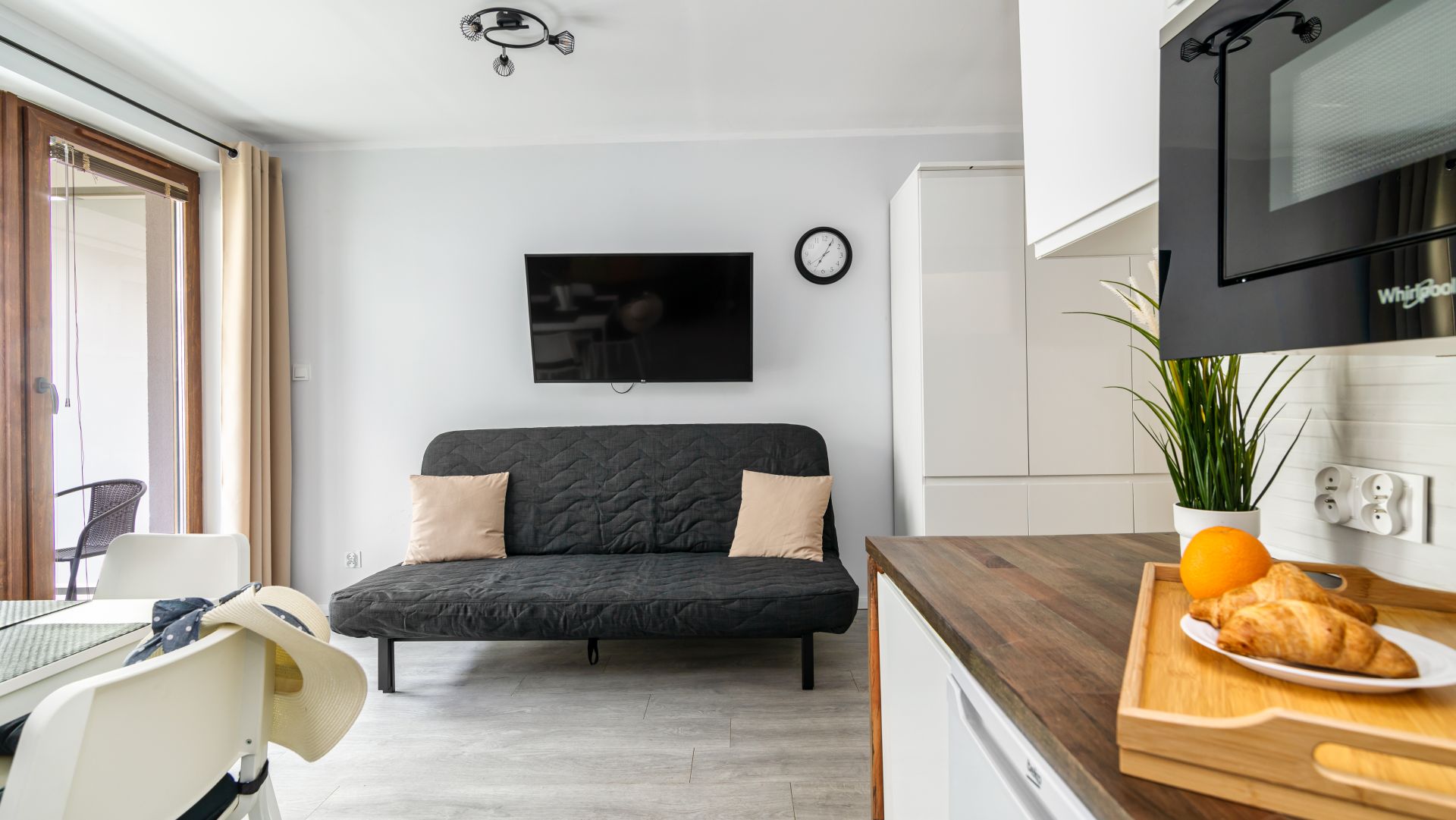 Zapraszamy do komfortowego lokalu położonego na pierwszym piętrze w nowo wybudowanym apartamentowcu, z widokiem na zieloną strefę osiedla. W pobliżu znajdują się punkty gastronomiczne, sklepy spożywcze i z pamiątkami. Do morza dzieli nas odległość 500 m do wyboru ścieżką przez las lub traktem ulicznym. Apartament składa się z salonu z aneksem kuchennym, łazienki i przestronnego tarasu. Kuchnia jest w pełni wyposażona i z pewnością ułatwi przygotowanie smacznych posiłków. Nie zabrakło również zmywarki, pralki i klimatyzacji, co pozwala na długi, komfortowy pobyt rodzinny lub we dwoje. Zapewniamy ręczniki i pościel. Akceptujemy zwierzęta domowe za dodatkową opłatą. Do apartamentu przynależy prywatne miejsce postojowe.