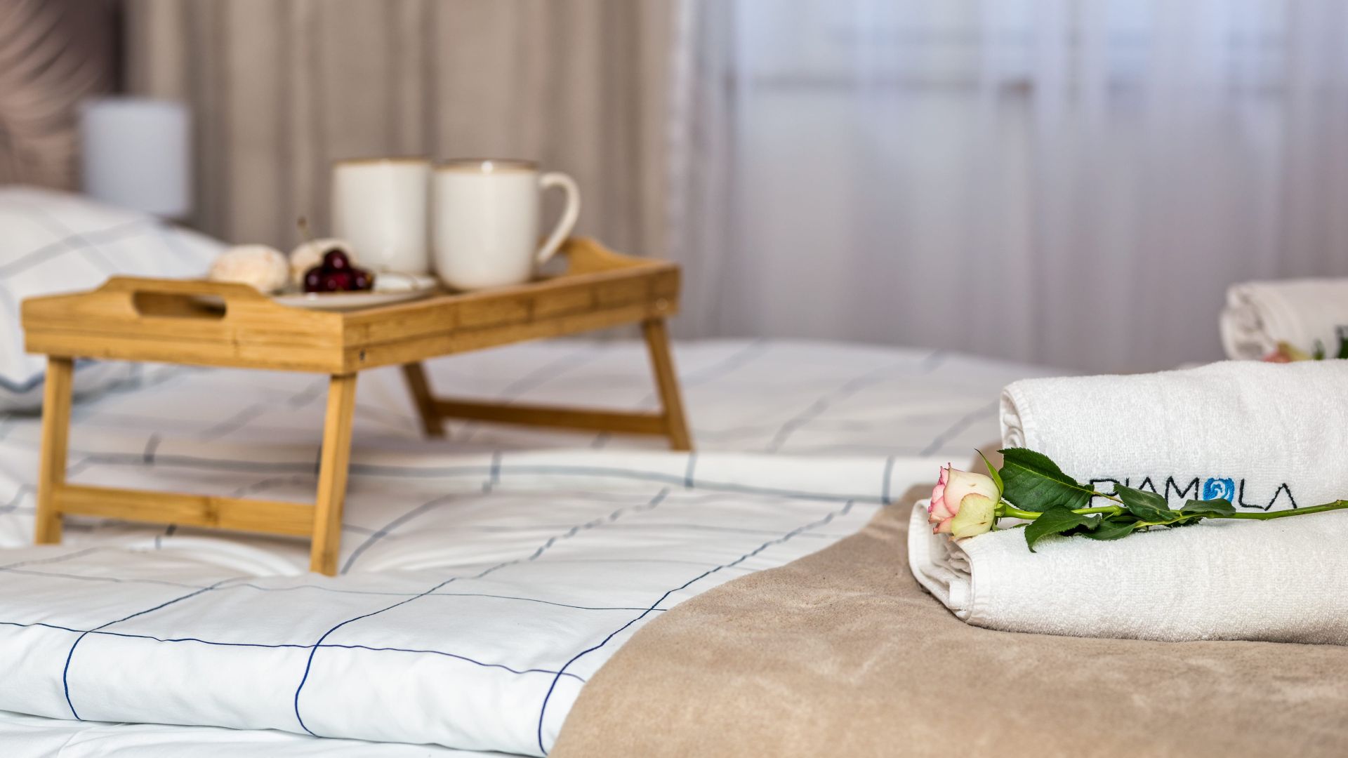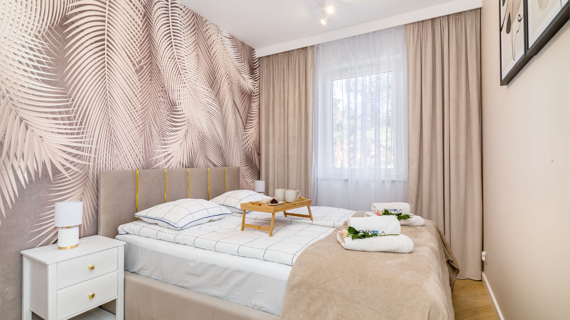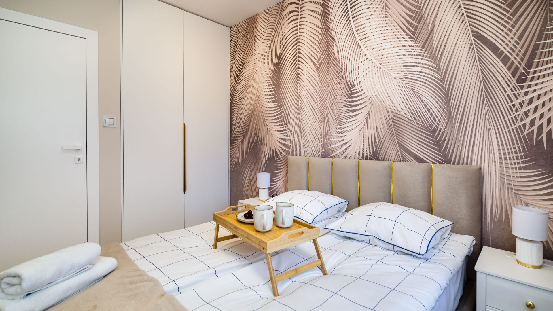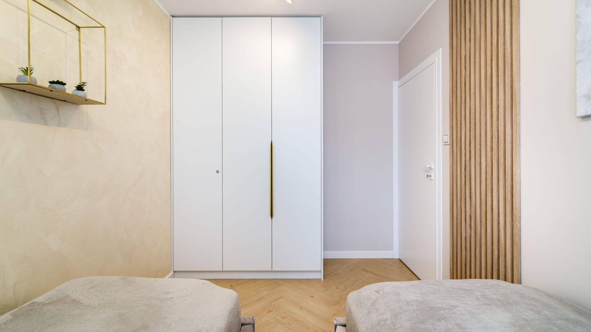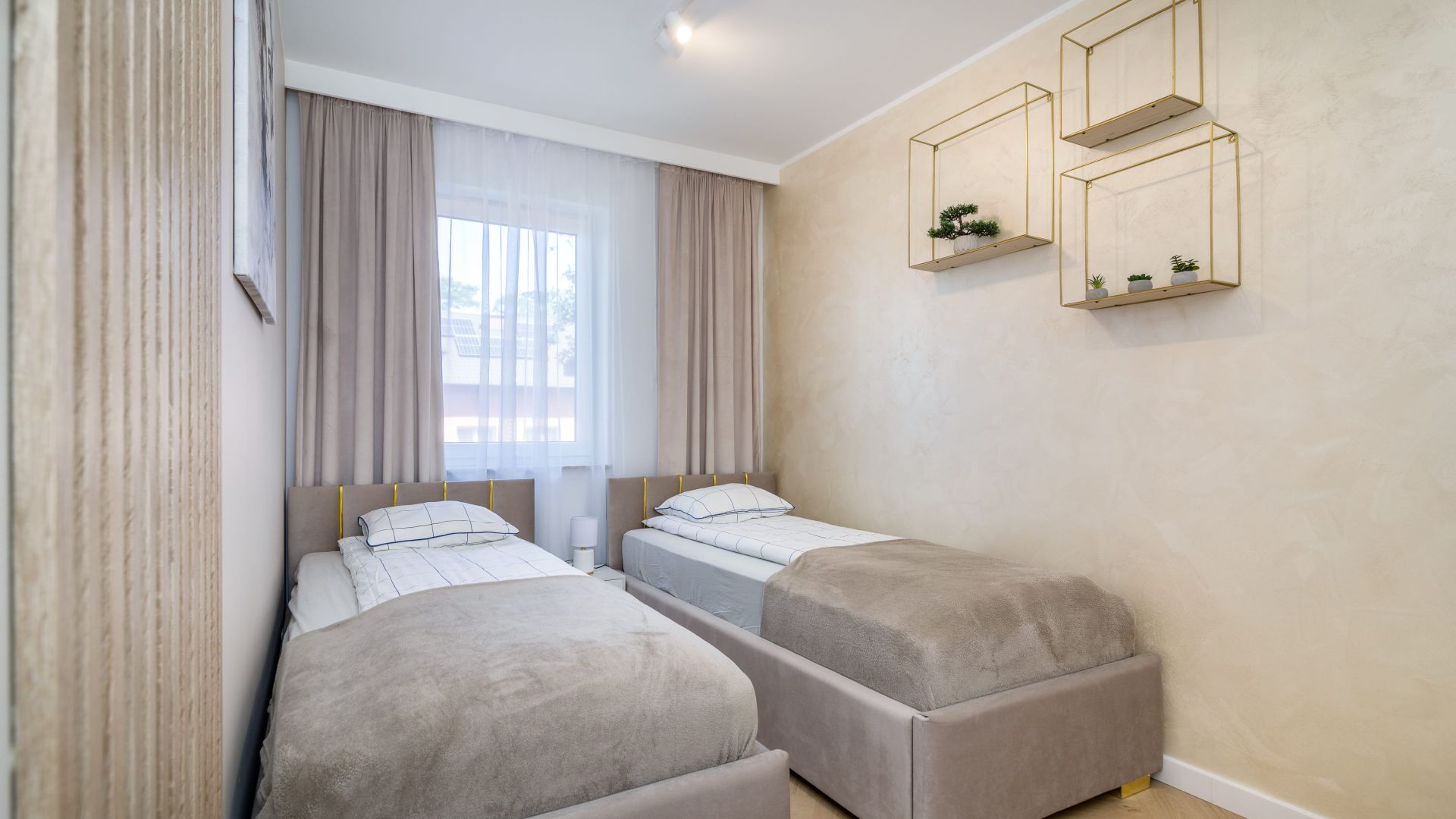 Apartament ma dwie sypialnie. W jednej znajduje się wygodne łóżko małżeńskie i szafa, a w drugiej dwa pojedyncze łóżka, co czyni to miejsce świetnym wyborem dla par lub rodzin.