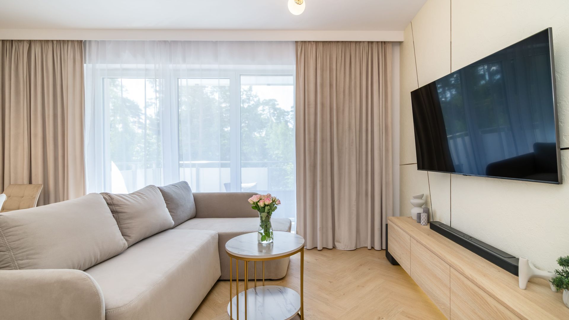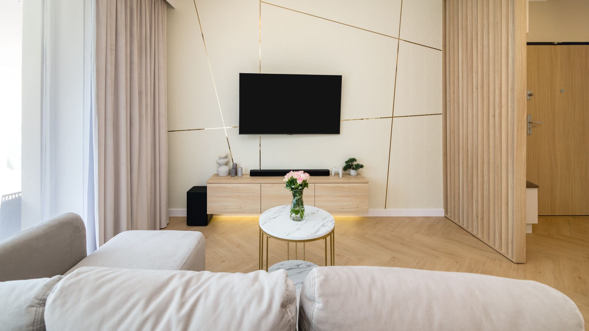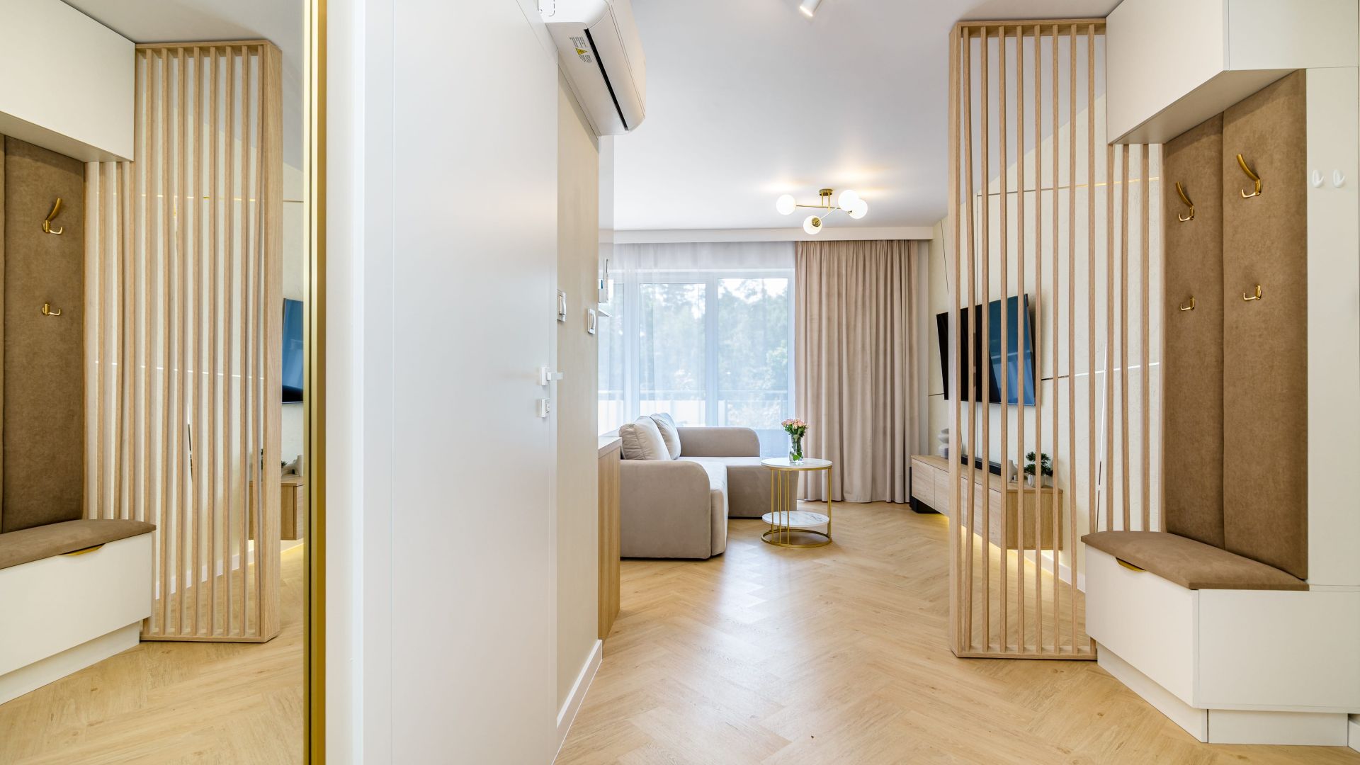 Zapraszamy do nowoczesnego, 50-metrowego apartamentu w Stegnie, urzekającego swoim spokojem i elegancją w stylu Japandi.