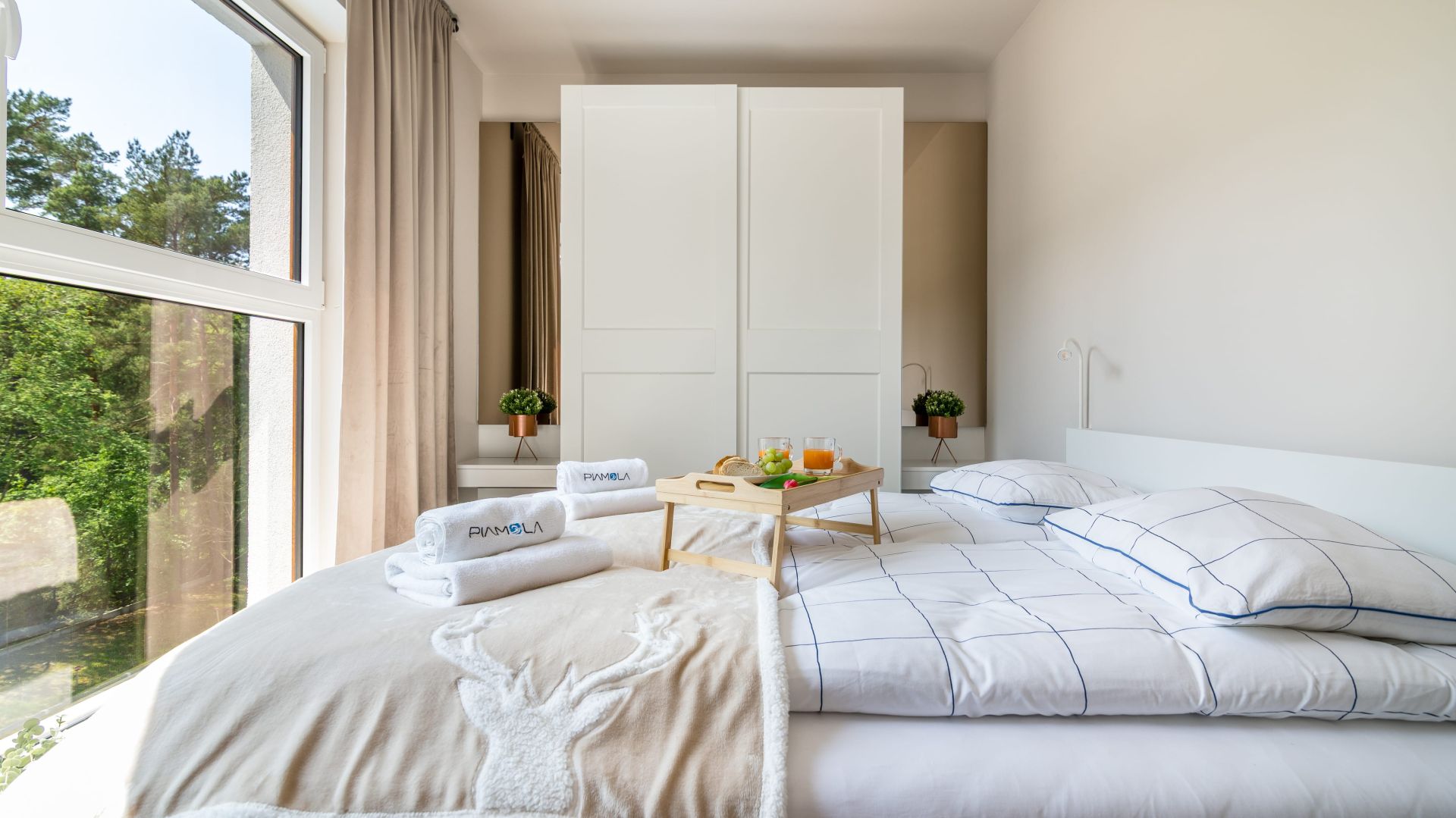 W sypialni znajduje się wygodne łóżko małżeńskie oraz również widok na las, co zapewnia wyjątkowo spokojną atmosferę do wypoczynku.