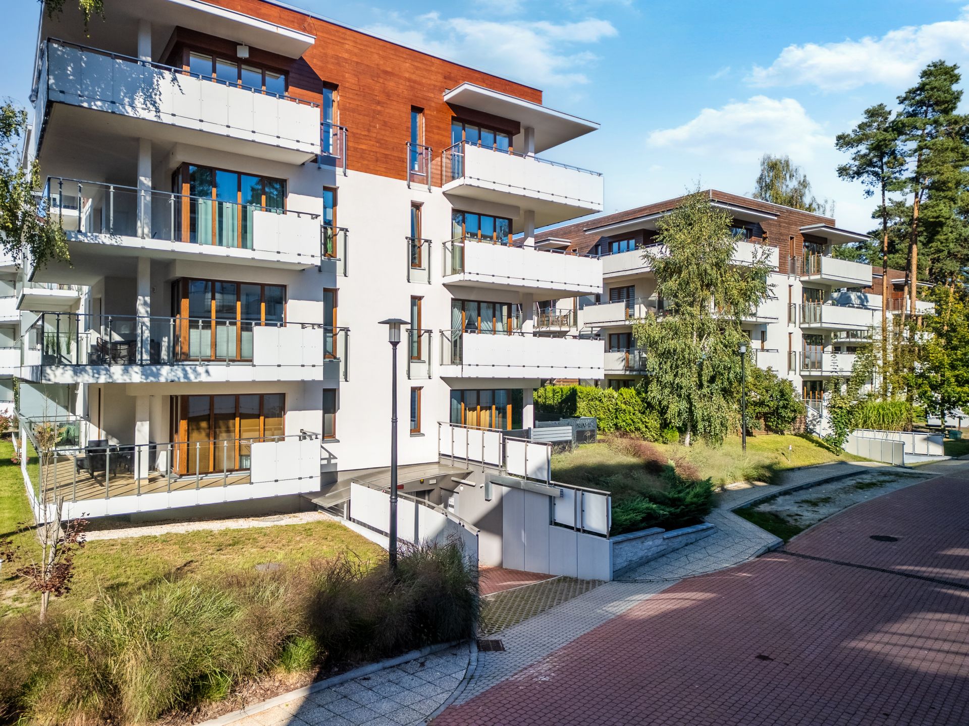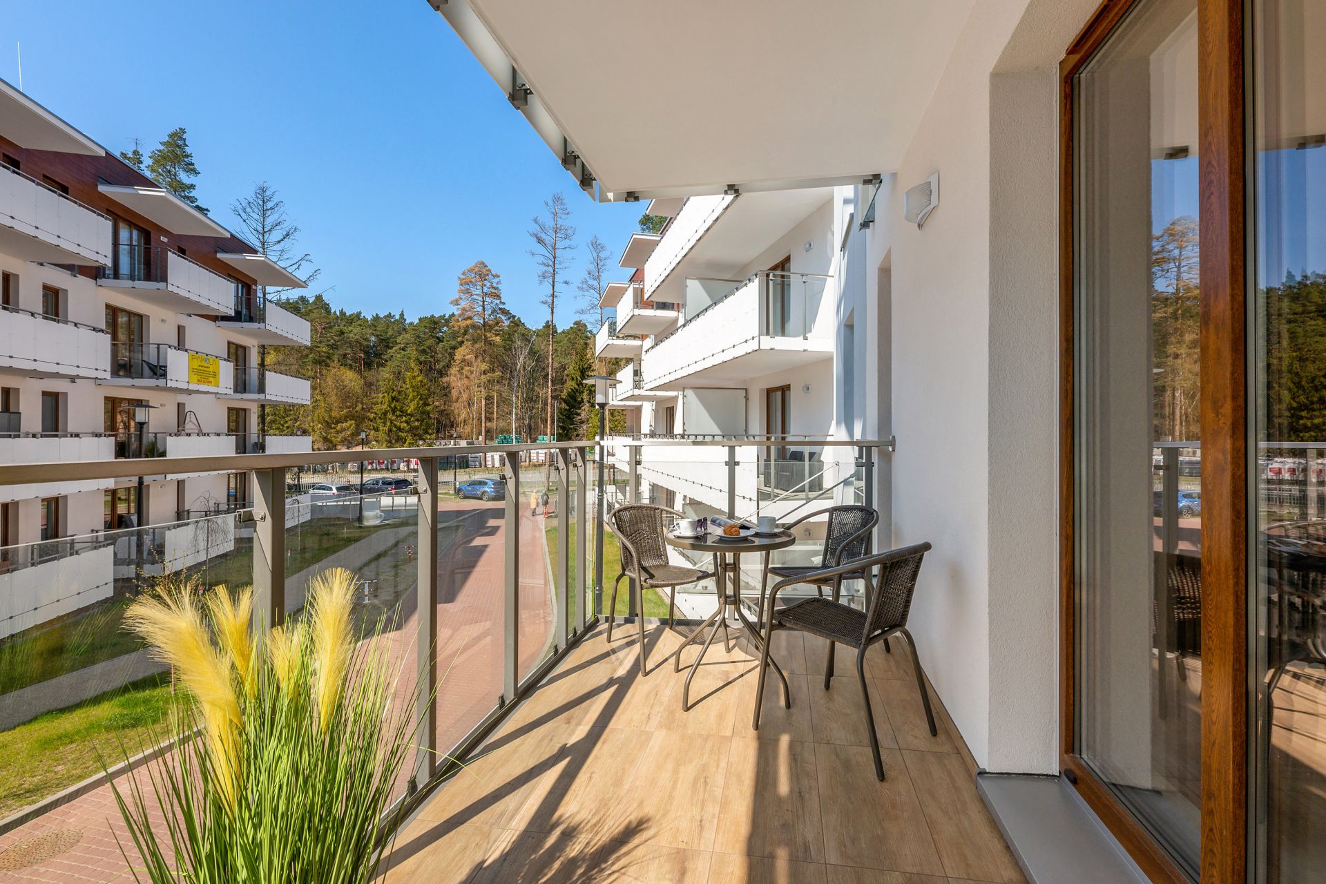 Baltic Park Stegna to nowoczesny kompleks kilku budynków o eleganckiej architekturze śródziemnomorskiej. Charakterystyczne duże, przeszklone okna i balkony, wpuszczają naturalne światło do apartamentów. Przestronne tarasy zapraszają na poranną kawę przy wschodzie słońca i śpiewie ptaków, a wieczorami relaks przy lampce wina. Wewnątrz budynków szerokie przejścia i schody oraz nowoczesne windy osobowe. Cały obiekt posiada własne ogrodzenie, jest monitorowany i chroniony całodobowo, a wjazd i wyjazd na teren obsługiwany przez ochronę. Kompleks powstał na terenie pięknej nadmorskiej przyrody, charakteryzującej się iglastymi lasami i kołyszącymi trawami w bliskości plaży i morza (około 450m). Trakt prowadzący do morza to liczne kafejki, punkty gastronomiczne, sklepiki.
