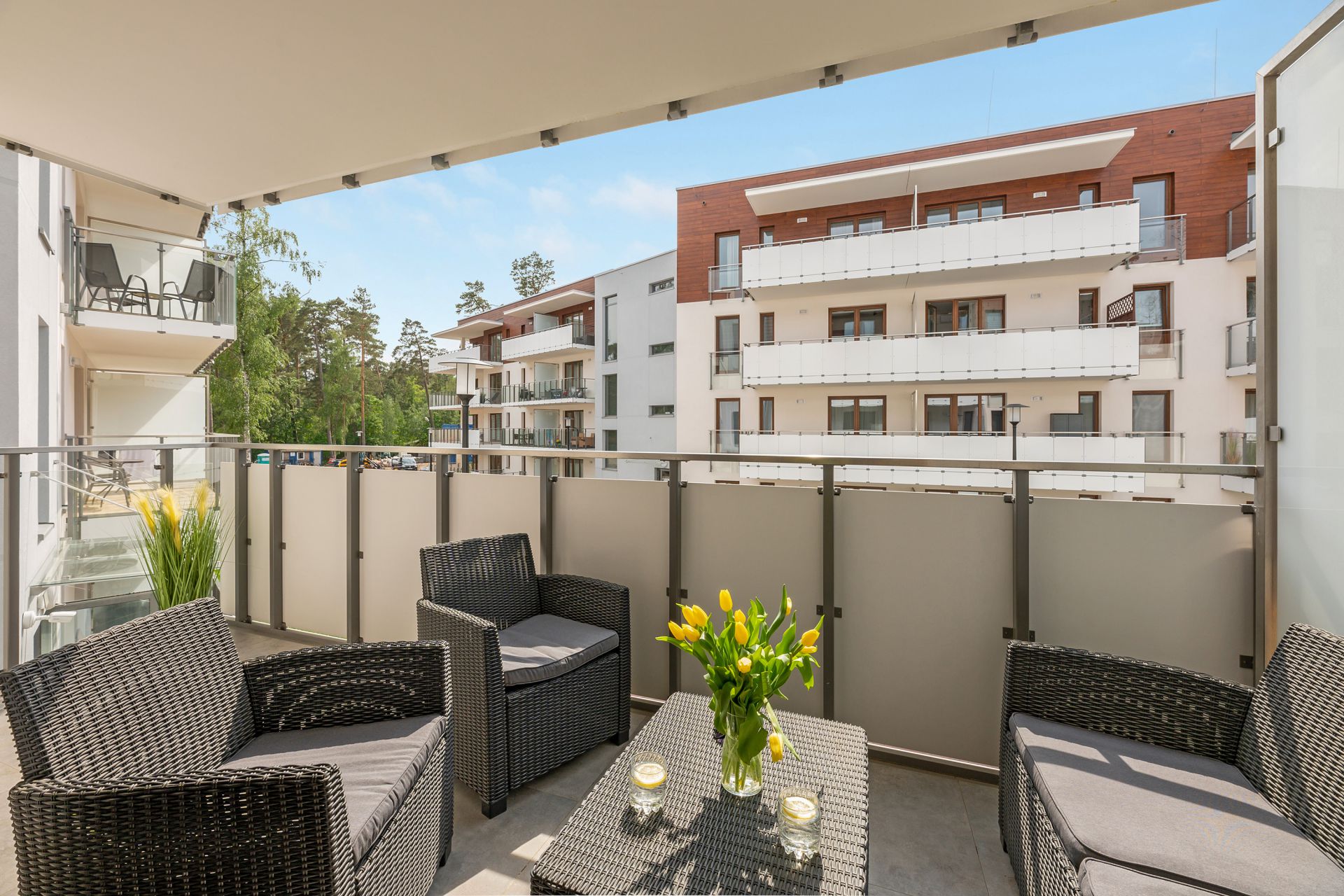 Baltic Park Stegna to nowoczesny kompleks kilku budynków o eleganckiej architekturze śródziemnomorskiej. Charakterystyczne duże, przeszklone okna i balkony, wpuszczają naturalne światło do apartamentów. Przestronne tarasy zapraszają na poranną kawę przy wschodzie słońca i śpiewie ptaków, a wieczorami relaks przy lampce wina. Wewnątrz budynków szerokie przejścia i schody oraz nowoczesne windy osobowe. Cały obiekt posiada własne ogrodzenie, jest monitorowany i chroniony całodobowo, a wjazd i wyjazd na teren obsługiwany przez ochronę. Kompleks powstał na terenie pięknej nadmorskiej przyrody, charakteryzującej się iglastymi lasami i kołyszącymi trawami w bliskości plaży i morza (około 450m). Trakt prowadzący do morza to liczne kafejki, punkty gastronomiczne, sklepiki.