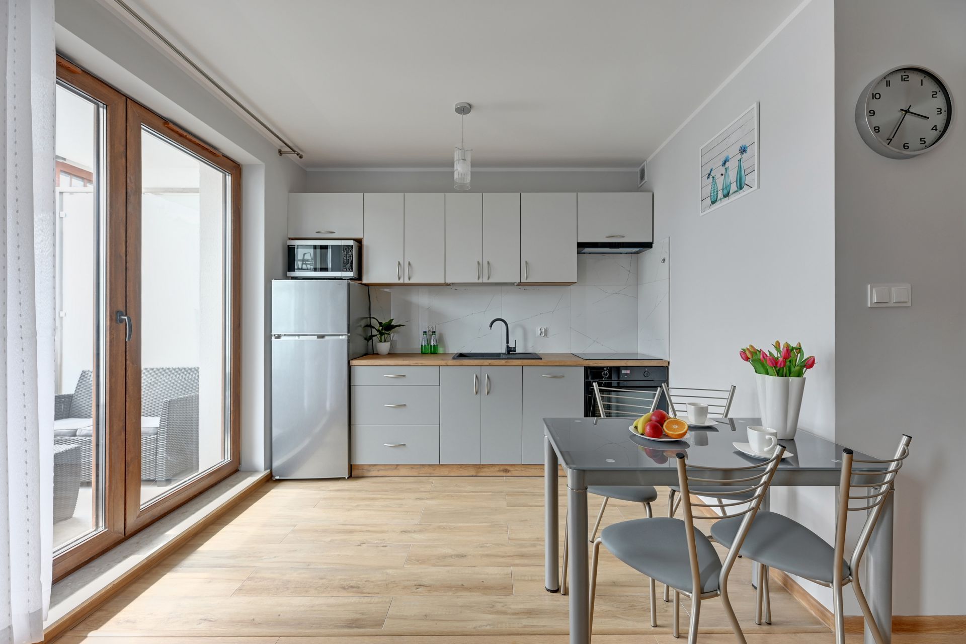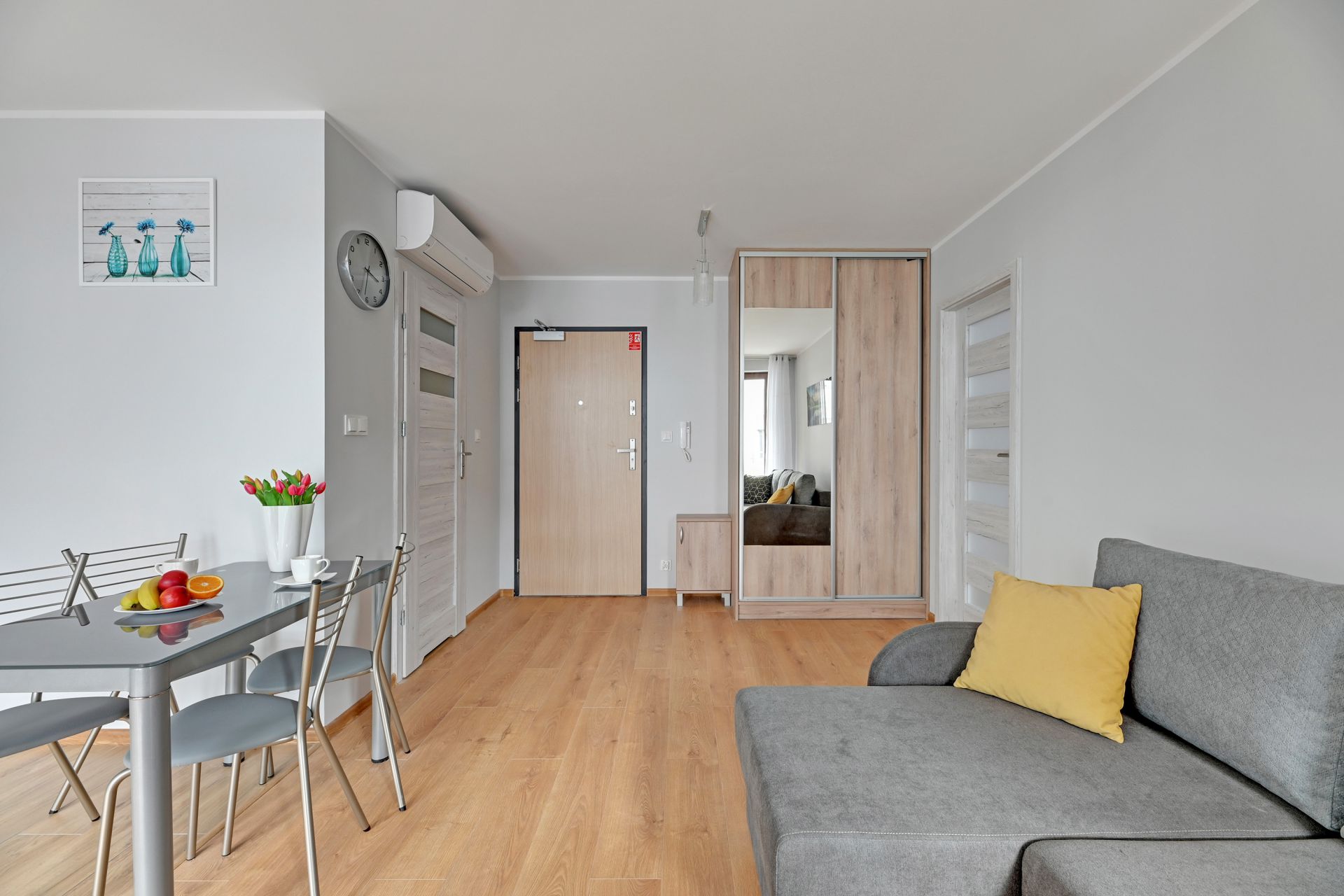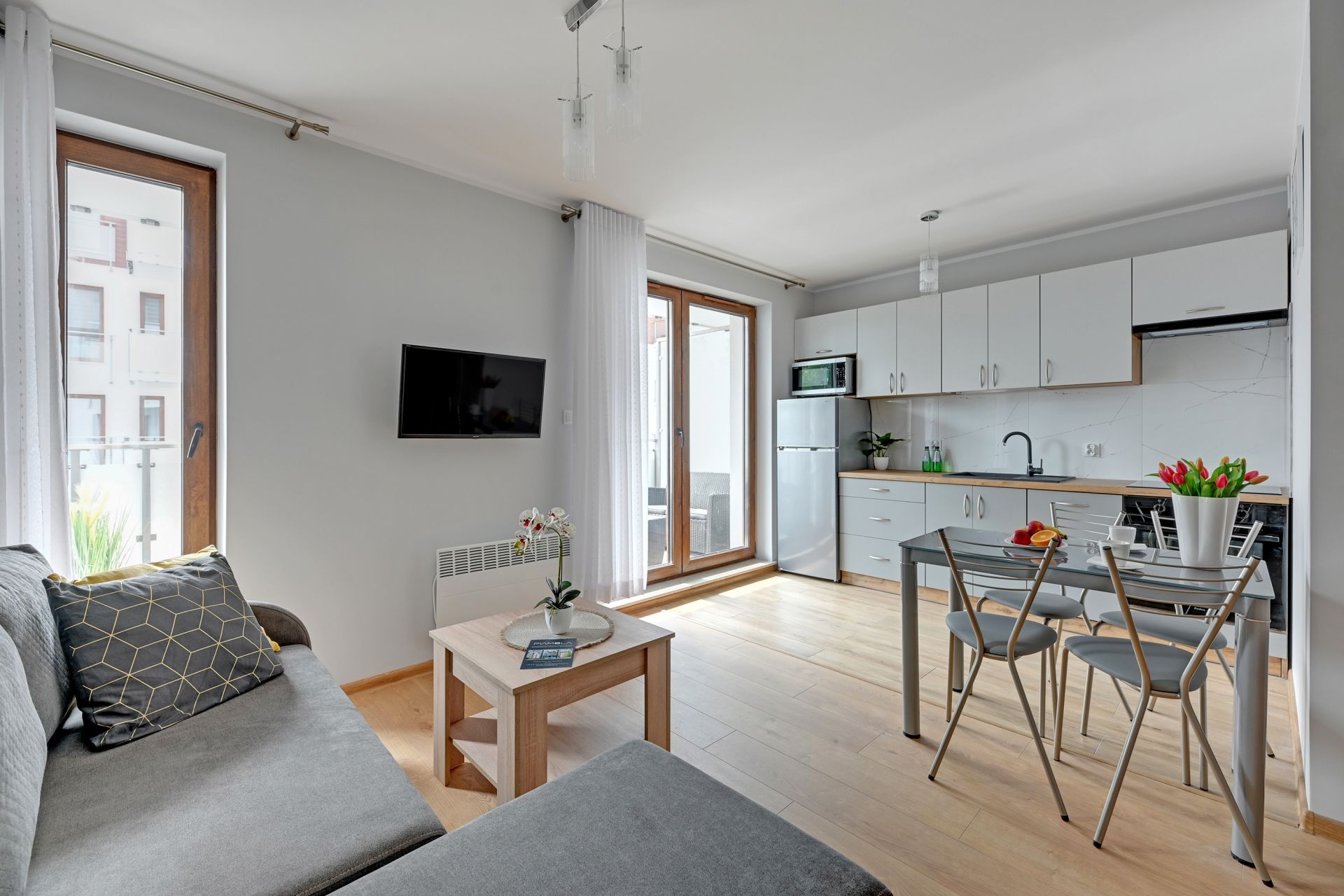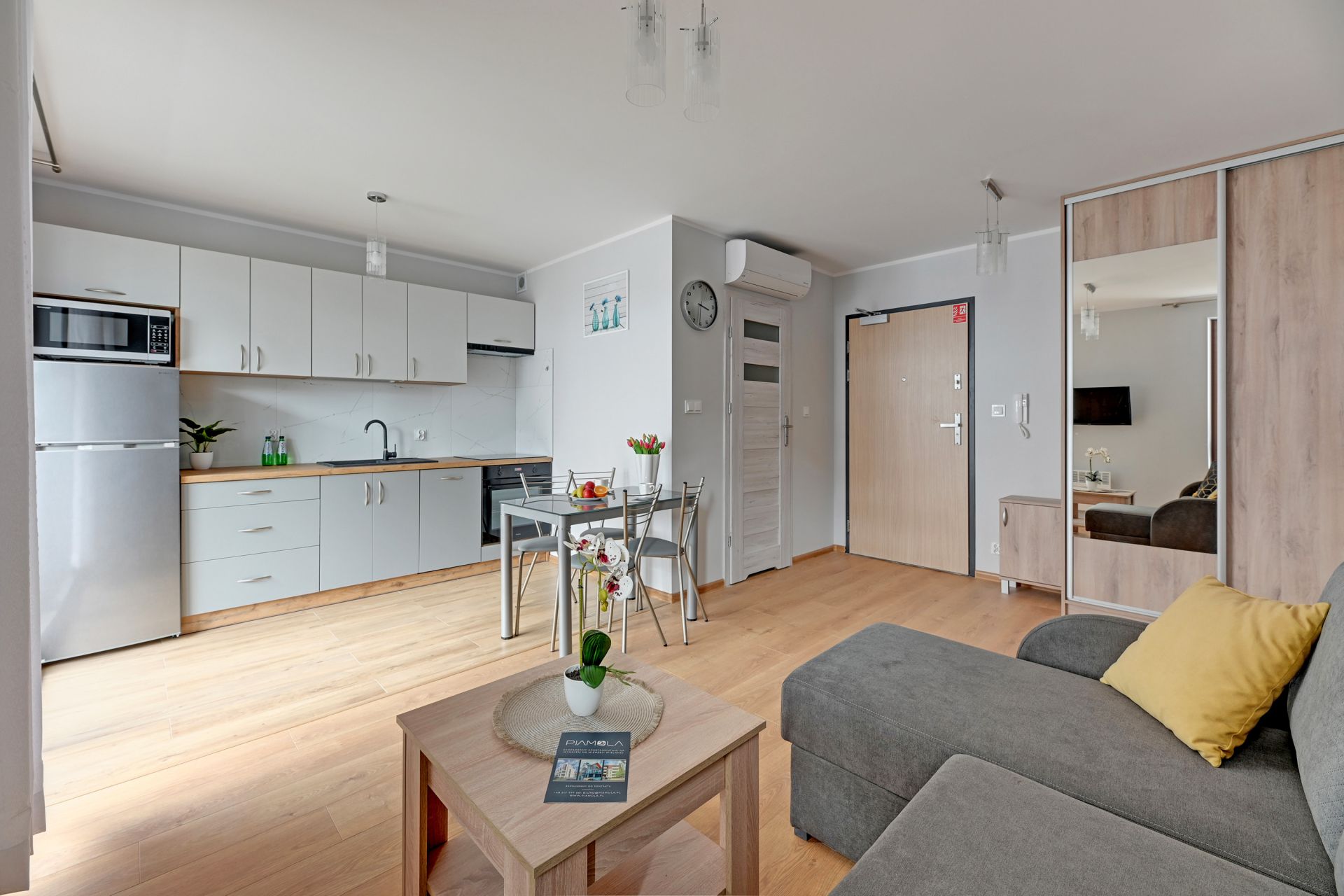 Oferujemy Państwu komfortowy apartament idealny na wakacyjny pobyt, zlokalizowany w nadmorskiej miejscowości Stegna. Apartament ma 36 m2 powierzchni i może nocować w nim do 4 osób. Otwarty salon połączono z aneksem kuchennym oraz wyjściem na taras, który przez większą część dnia skąpany jest w słońcu. W salonie umiejscowiono narożnik, który po rozłożeniu zmienia przestrzeń w część sypialną. Część kuchenna to w pełni wyposażony aneks. Oprócz płyty grzewczej i lodówki znalazły się tam także mikrofalówka, zmywarka oraz piekarnik. Dla naszych gości przygotowaliśmy także niezbędne naczynia, sztućce, kawę i herbatę. Na komfortowe zjedzenie posiłku pozwoli stół jadalniany. W upalne dni, możemy obniżyć temperaturę za sprawą klimatyzacji. Studio posiada własną łazienkę z prysznicem oraz sypialnie z 140 cm łóżkiem sypialnianym i wygodnym fotelem, gdzie można wygodnie odpocząć czytając książkę.