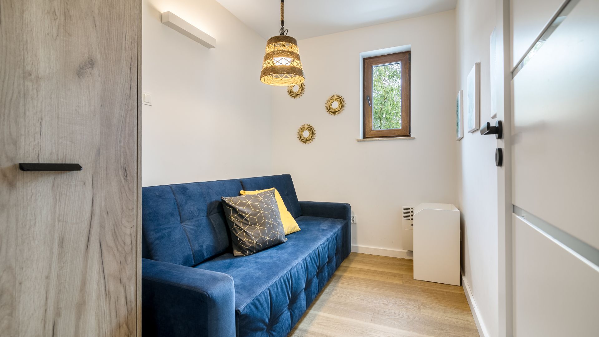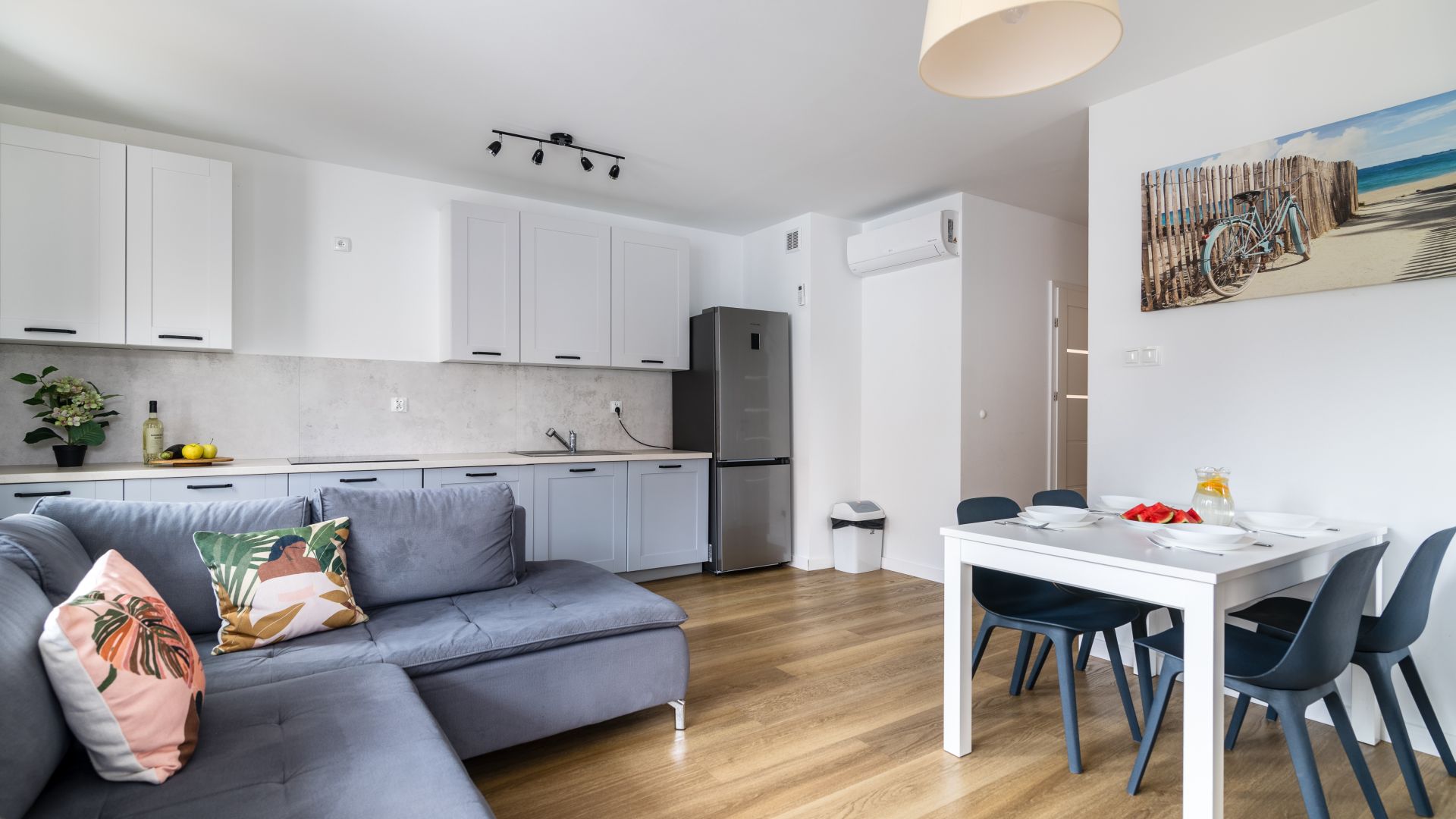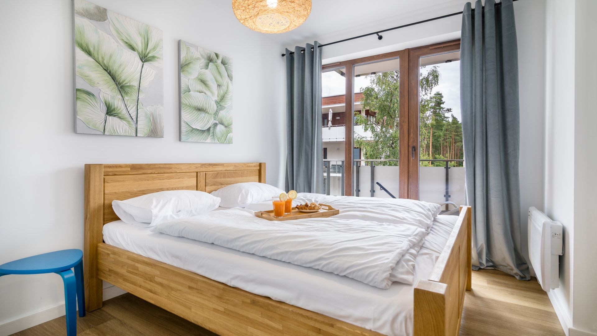 Apartament posiada dwie sypialnie. W jednej znajduje się łóżko małżeńskie, a w drugiej rozkładana sofa, która może pomieścić dwie osoby.