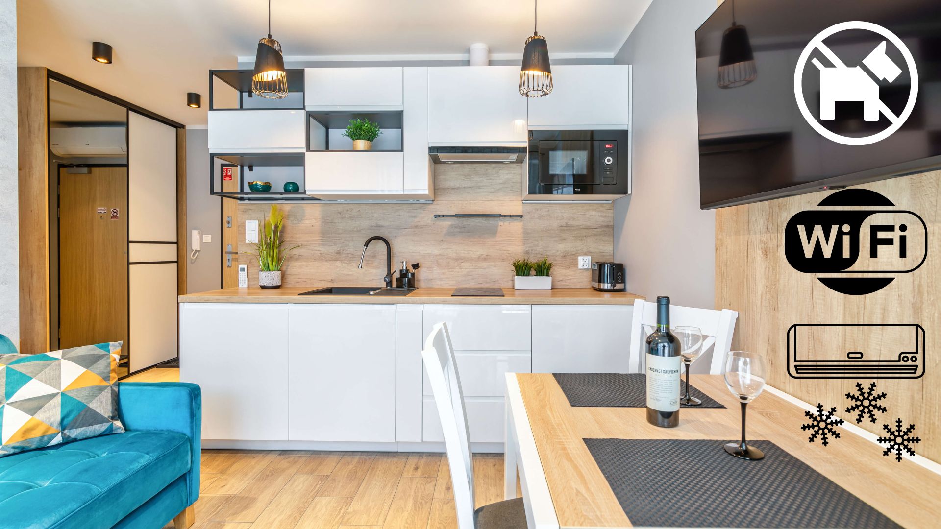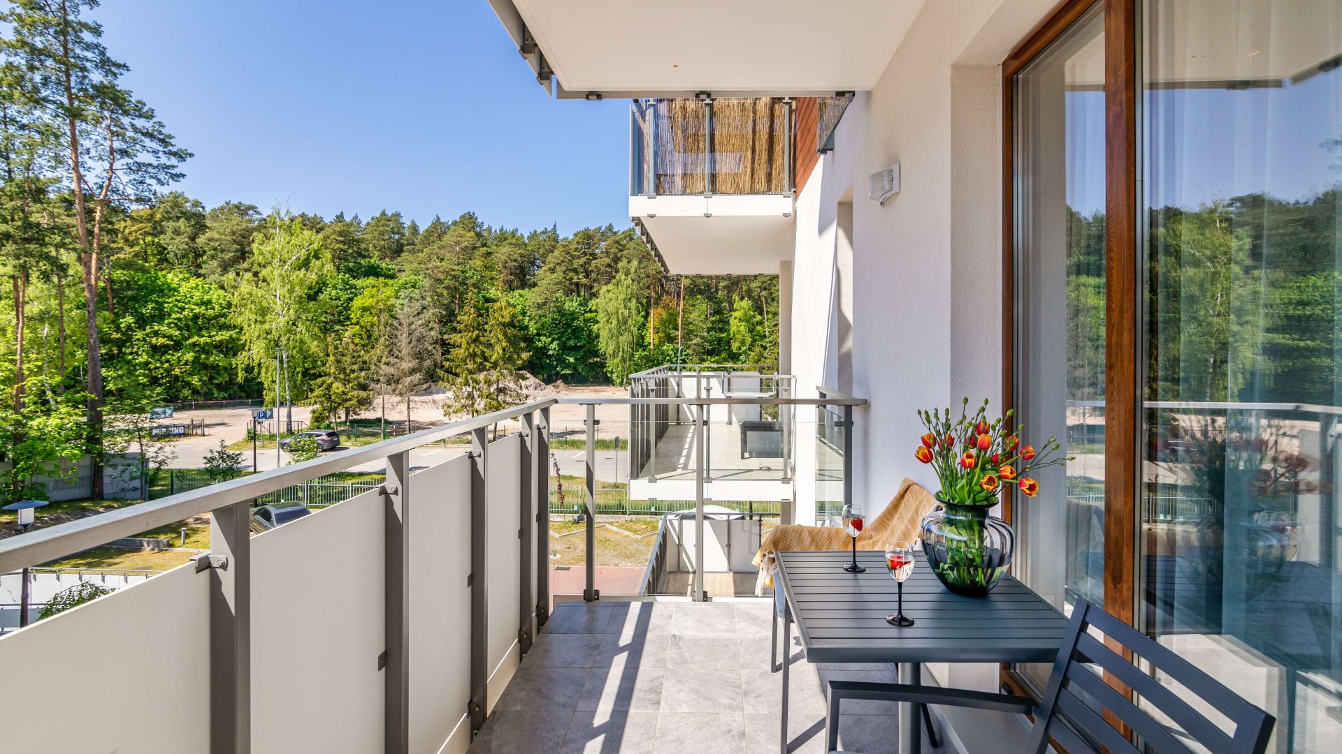 Nowy, gustownie i praktycznie urządzony apartament o powierzchni 24m² znajduje się w nowej części renomowanego osiedla Baltic Park w Stegnie. Lokal usytuowany jest na drugim piętrze. Wydzielono w nim ścianką część sypialnianą i wypoczynkową. W części sypialnianej znajduje się wygodna, rozkładana sofa dla dwóch osób. W części wypoczynkowej znajduje się funkcjonalny, dobrze wyposażony aneks kuchenny, rozkładany stół, TV oraz duży narożnik z funkcją spania dla kolejnych dwóch osób. W apartamencie znajdują się wysokiej jakości meble oraz sprzęt, a także duża szafa. Łazienka oferuje kabinę prysznicową, umywalkę oraz pralkę. Na balkonie czeka na Państwa wygodny zestaw mebli wypoczynkowych, który pozwoli na podziwianie otaczającej natury. Do lokalu przynależy darmowe, zewnętrzne miejsce parkingowe, usytuowane tuż przy wejściu do budynku, co bardzo ułatwia przenoszenie bagaży.