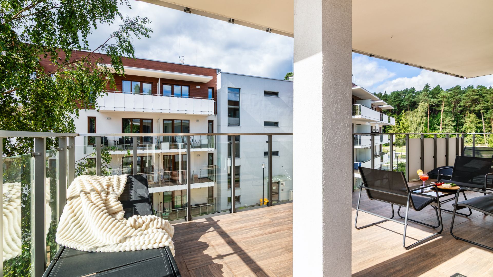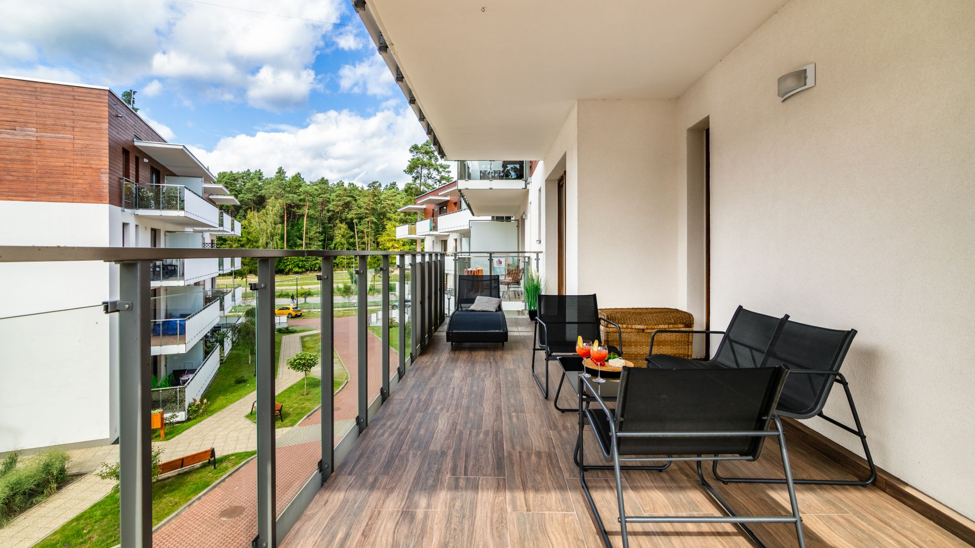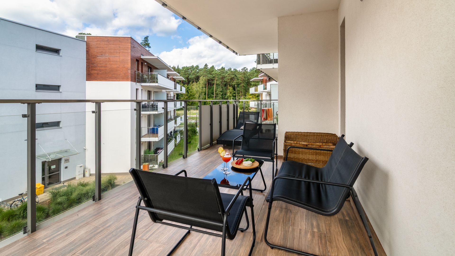 Wyjątkowym atutem apartamentu jest narożny, przestronny balkon – doskonałe miejsce na poranną kawę, wieczorny relaks czy wspólne chwile na świeżym powietrzu.