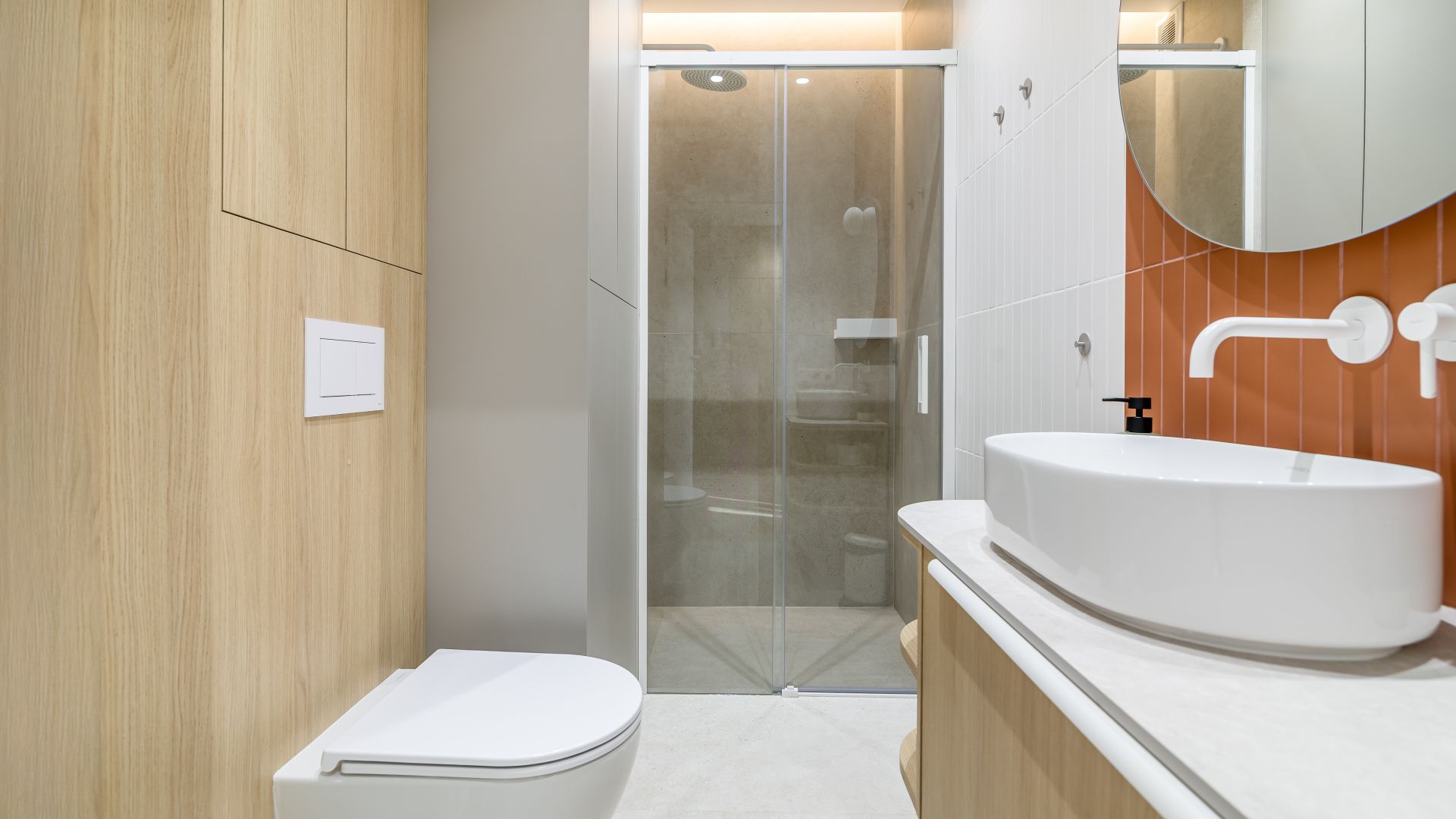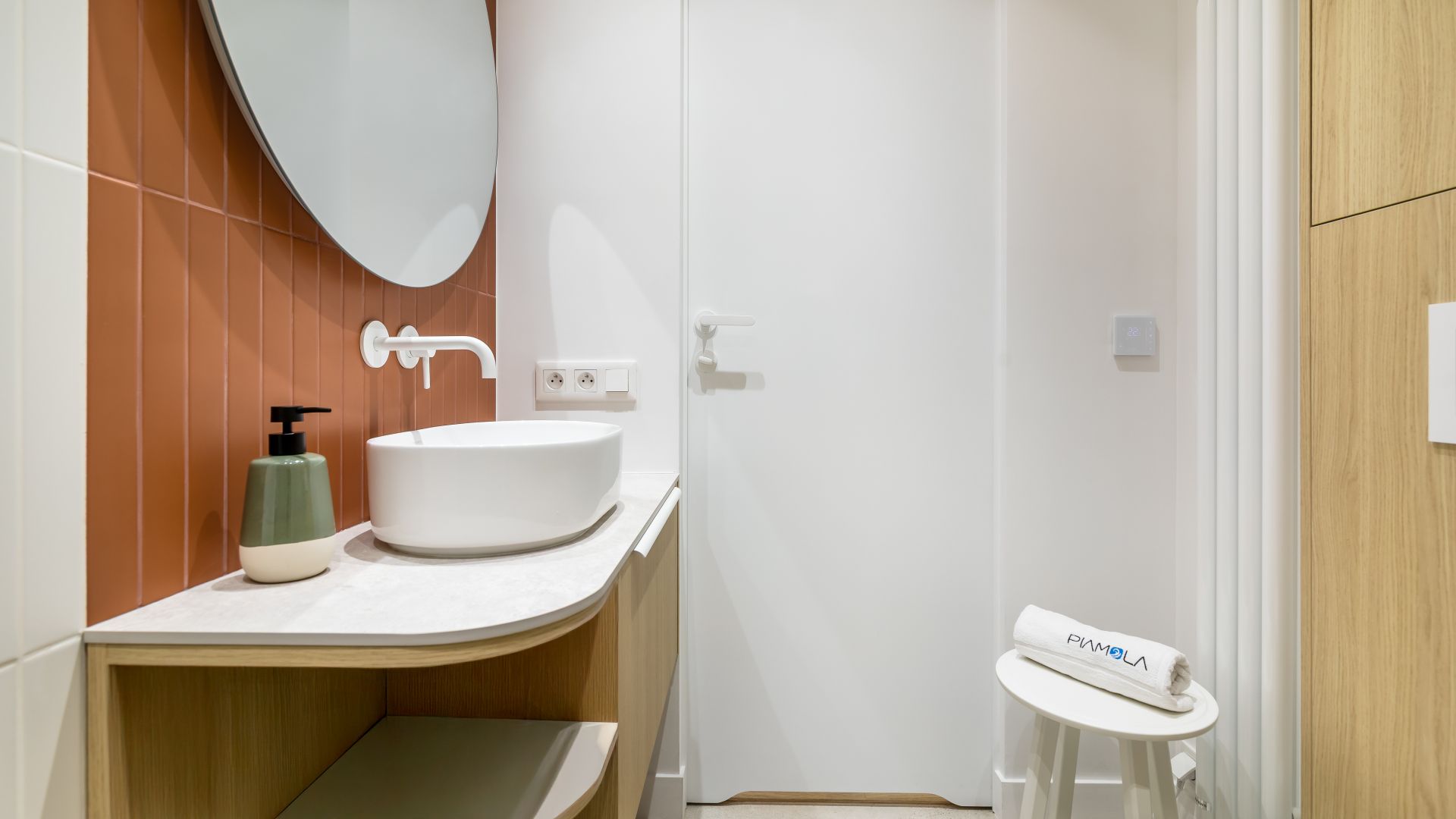 W apartamencie znajduje się również elegancka łazienka z prysznicem, w której zadbano o każdy detal, oraz pralka – szczególnie przydatna przy dłuższych pobytach lub rodzinnych wyjazdach. Całość została zaprojektowana z dbałością o komfort i estetykę, łącząc nowoczesne rozwiązania z ciepłą, przyjazną atmosferą.