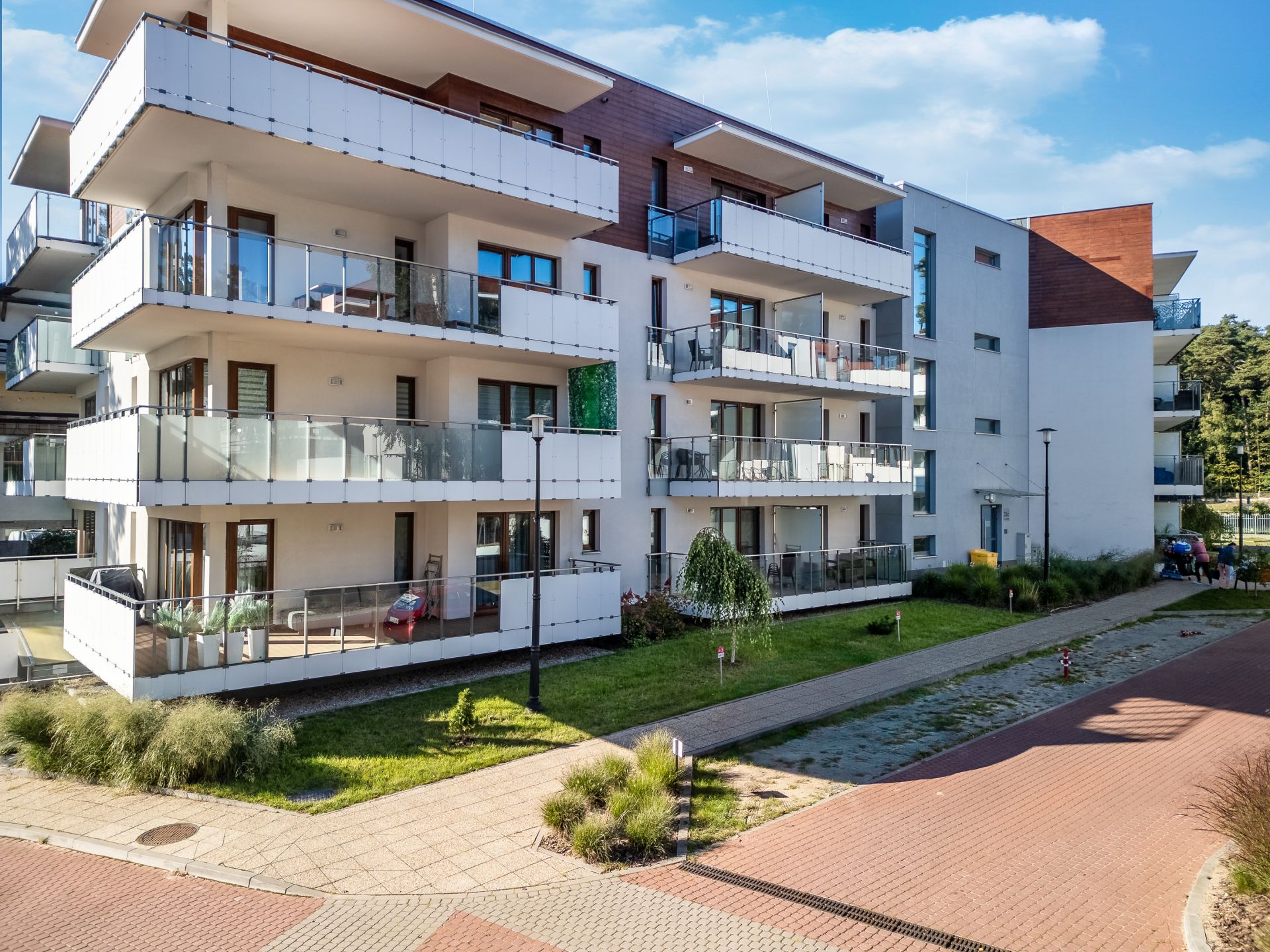Baltic Park Stegna to nowoczesny kompleks kilku budynków o eleganckiej architekturze śródziemnomorskiej. Charakterystyczne duże, przeszklone okna i balkony, wpuszczają naturalne światło do apartamentów. Przestronne tarasy zapraszają na poranną kawę przy wschodzie słońca i śpiewie ptaków, a wieczorami relaks przy lampce wina. Wewnątrz budynków szerokie przejścia i schody oraz nowoczesne windy osobowe. Pod budynkami mieszczą się hale garażowe. Cały obiekt posiada własne ogrodzenie, jest monitorowany i chroniony całodobowo, a wjazd i wyjazd na teren obsługiwany przez ochronę. Kompleks powstał na terenie pięknej nadmorskiej przyrody, charakteryzującej się iglastymi lasami i kołyszącymi trawami w bliskości plaży i morza (około 450m). Trakt prowadzący do morza to liczne kafejki, punkty gastronomiczne, sklepiki.