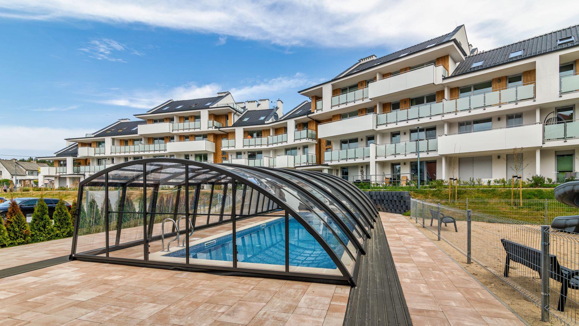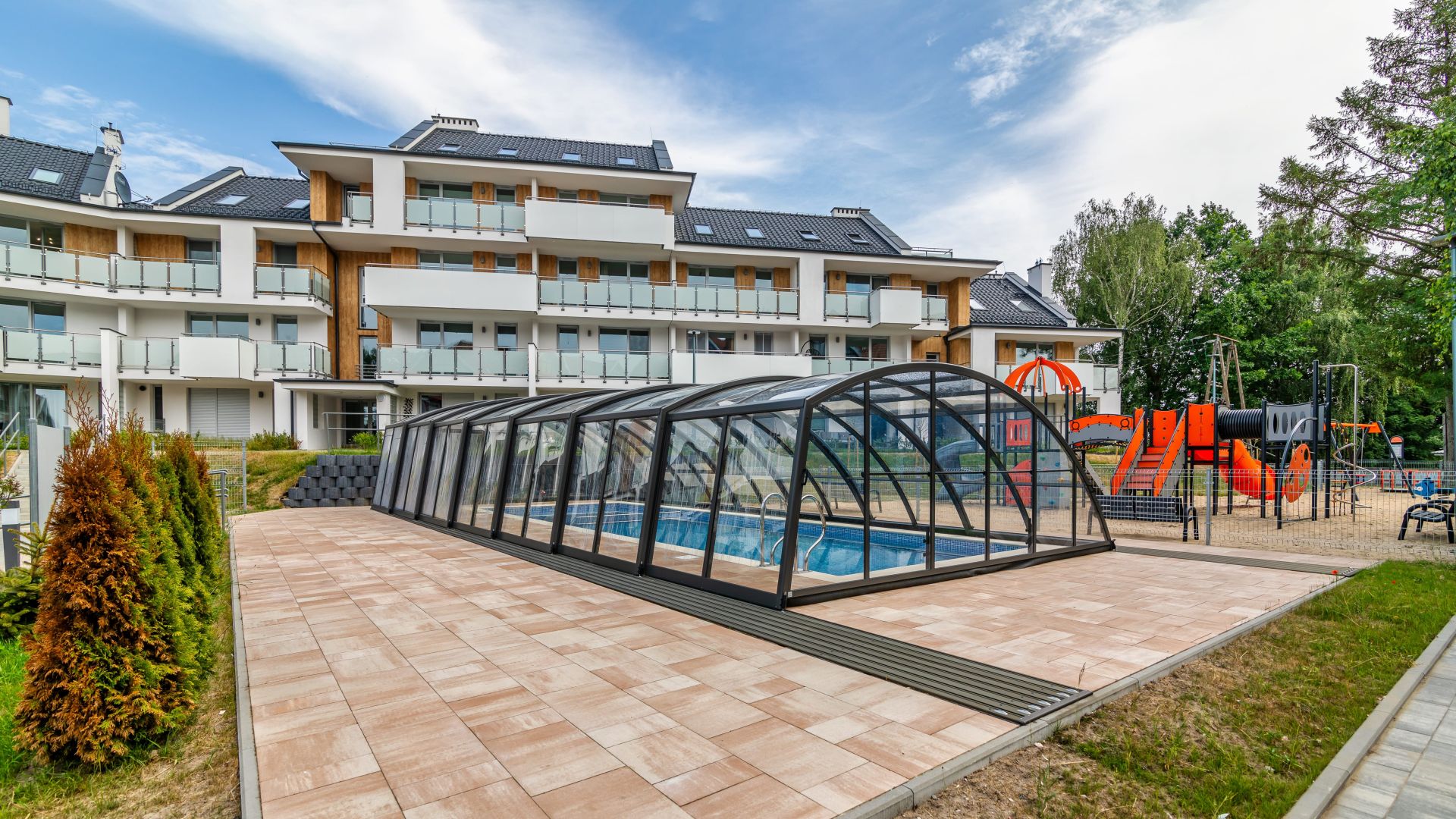 Dodatkowym atutem naszej oferty, jest możliwość skorzystania z krytego basenu, znajdującego się na terenie obiektu. Naszym najmłodszym Gościom proponujemy wolny czas na placu zabaw.