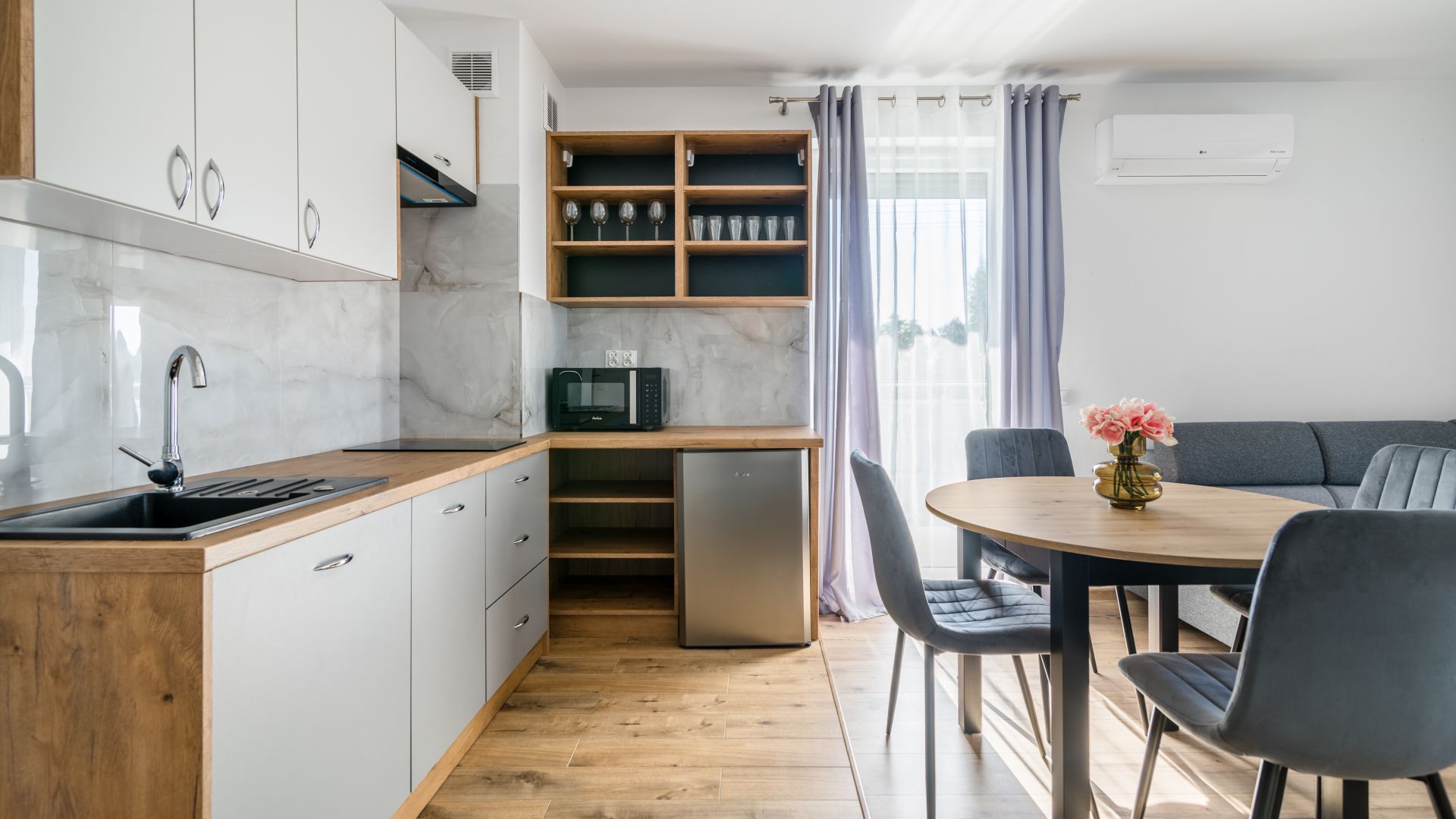 Zapraszamy do komfortowego apartamentu przeznaczonego dla 4 osób, położonego w samym centrum Kątów Rybackich. To idealne miejsce na wypoczynek nad morzem, w otoczeniu przyrody i z łatwym dostępem do plaży oraz lokalnych atrakcji. Apartament składa się z przestronnego salonu z aneksem kuchennym oraz oddzielnej sypialni, zapewniając pełen komfort i prywatność. W salonie znajduje się rozkładana sofa, telewizor i wyjście na balkon z malowniczym widokiem na Zalew Wiślany – doskonałe miejsce na poranną kawę lub wieczorny relaks. Aneks kuchenny jest w pełni wyposażony – do dyspozycji gości jest lodówka, zmywarka, płyta grzewcza, czajnik oraz komplet naczyń i garnków. W apartamencie znajduje się także pralka oraz klimatyzacja, co zapewnia wygodę niezależnie od pory roku. Łazienka została urządzona z dbałością o detale i jest wyposażona w prysznic, suszarkę do włosów oraz niezbędne akcesoria. Goście mają dostęp do bezpłatnego Wi-Fi. Dużym atutem jest lokalizacja, gdyż wszystkie atrakcje, sklepy, restauracje i kawiarnie są na wyciągnięcie ręki. Jest to też świetna baza wypadowa np. do Trójmiasta (50 km). Obiekt znajduje się nieopodal lasu sosnowego, w którym znajdziemy ścieżkę prowadzącą na piaszczystą plażę (1,2 km). Istnieje również możliwość podjechania pod samą plażę meleksem, co stanowi dużą frajdę i atrakcję dla dzieci, jak i dla dorosłych. Dla osób ceniących sobie aktywny wypoczynek - liczne trasy rowerowe i nordic walking. Nasz apartament to idealne miejsce dla osób, które poszukują odskoczni od codzienności w błogiej ciszy w otoczeniu darów natury.