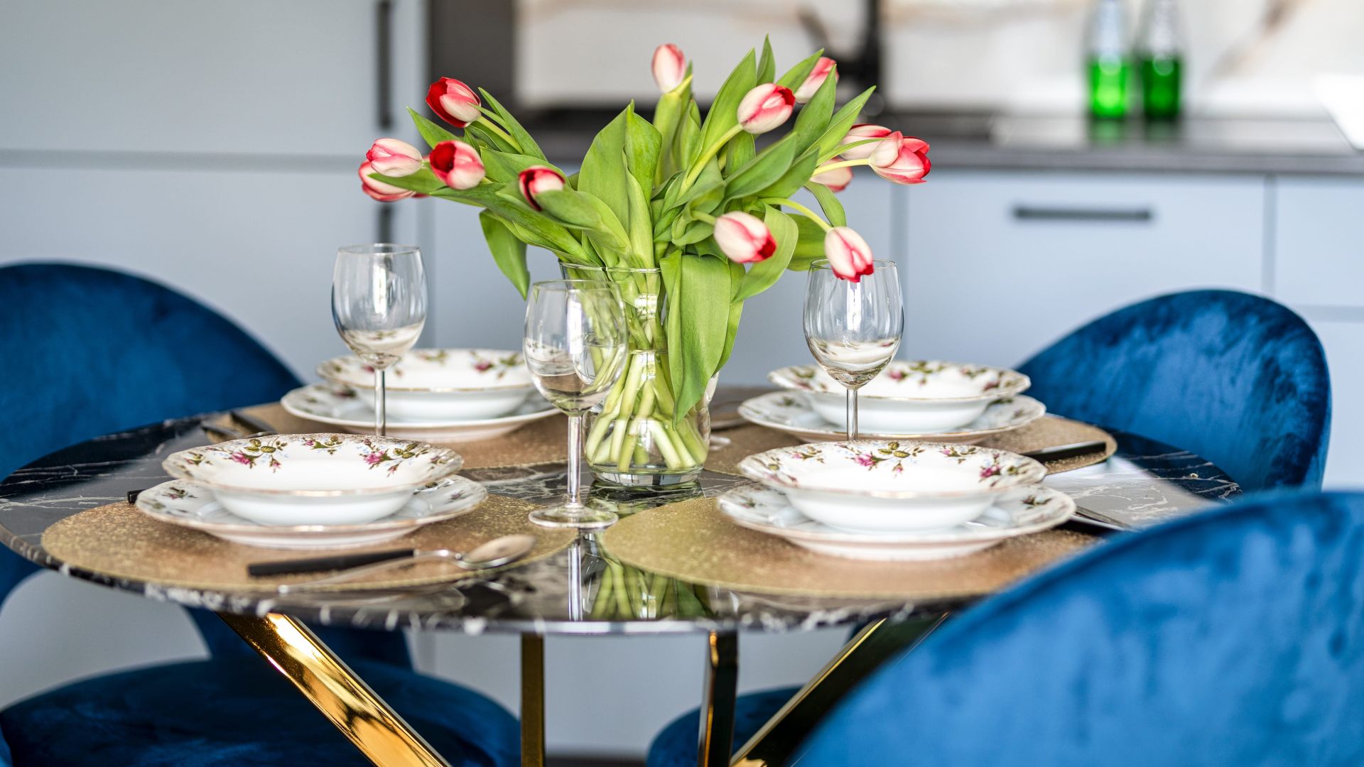 Kuchnia z aneksem jest w pełni wyposażona w najnowsze akcesoria kuchenne, które pozwolą przygotować smaczne dania. Do dyspozycji gości jest czajnik elektryczny, lodówka, zmywarka oraz mikrofalówka.