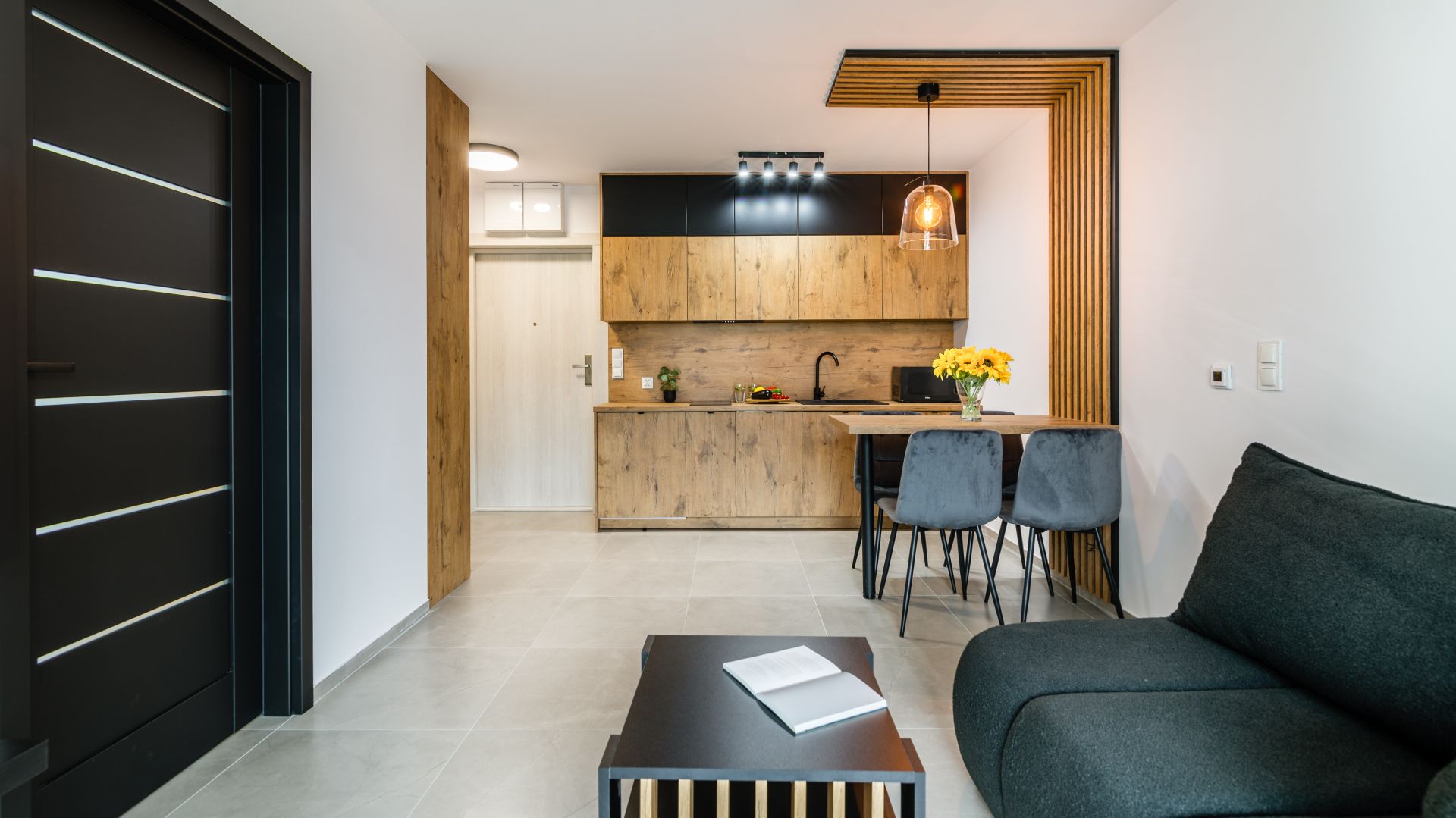 Oferujemy Państwu apartament o powierzchni 30m² przeznaczony dla czterech osób. Znajduje się na zamkniętym osiedlu, co zapewnia dodatkowe poczucie bezpieczeństwa. Dla wygody gości dostępna jest winda oraz miejsce parkingowe.