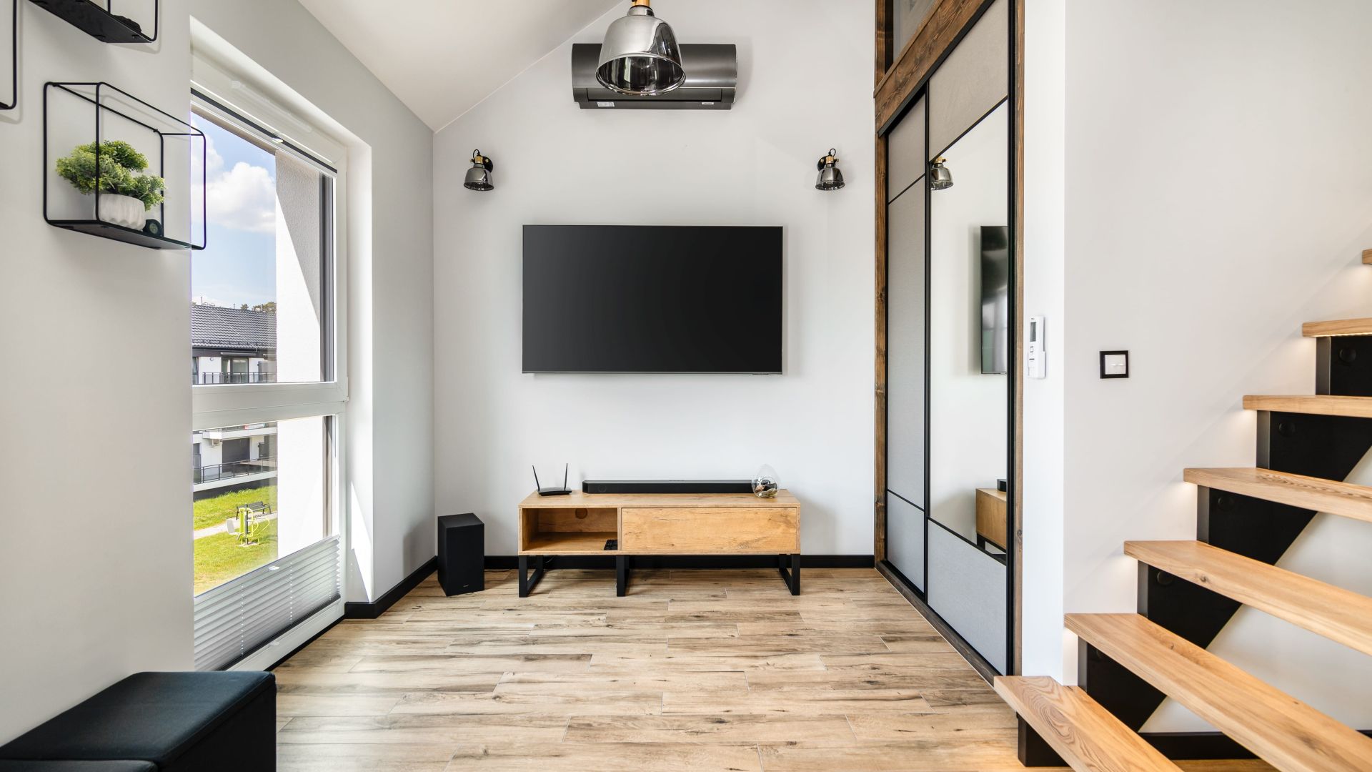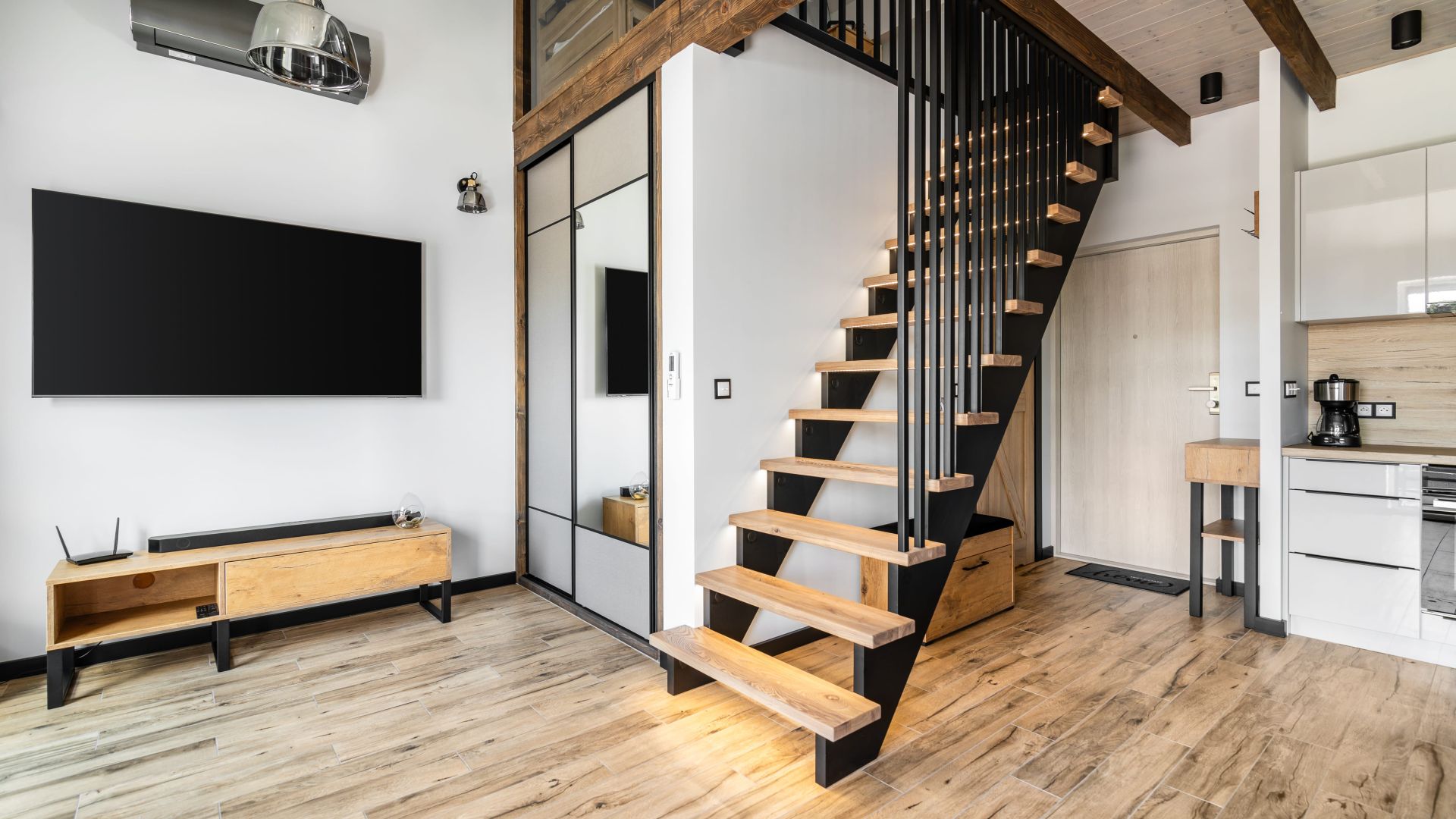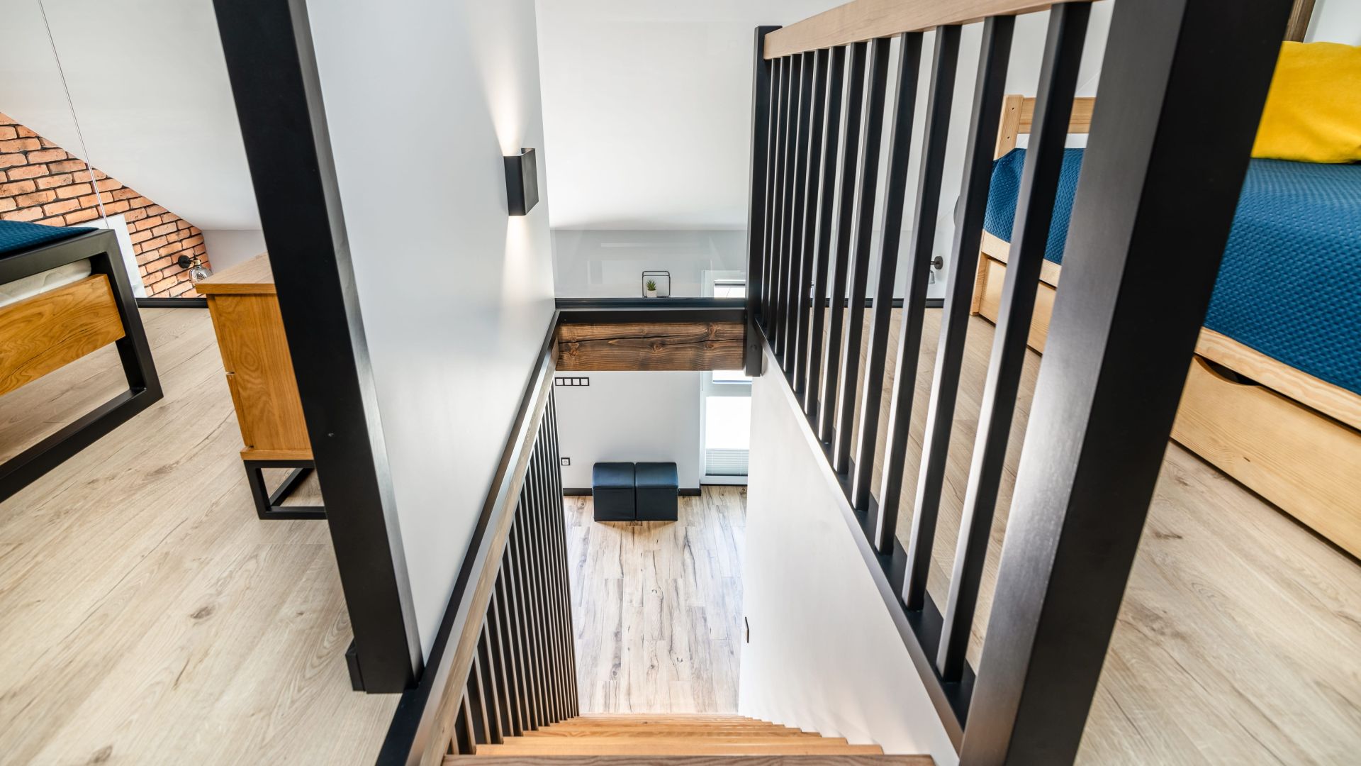 Apartament jest przestronny i nowoczesny, z antresolą dodającą unikalnego charakteru.