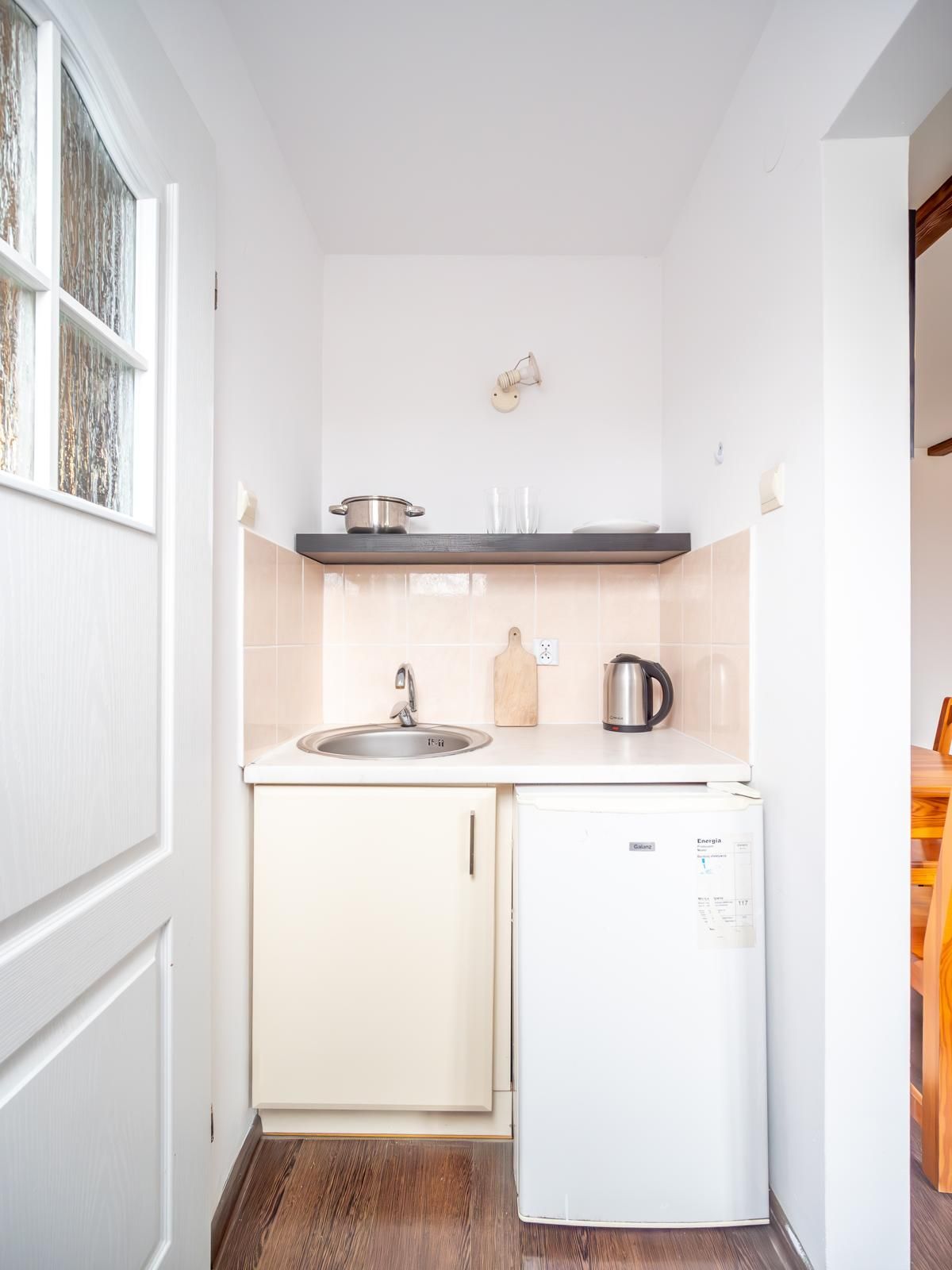 W jego skład wchodzi łóżko małżeńskie oraz rozkładana sofa, na której mogą spać dwie osoby. Pokój wyposażony jest w lodówkę, czajnik elektryczny oraz naczynia, co pozwala na przygotowanie prostych posiłków i napojów.