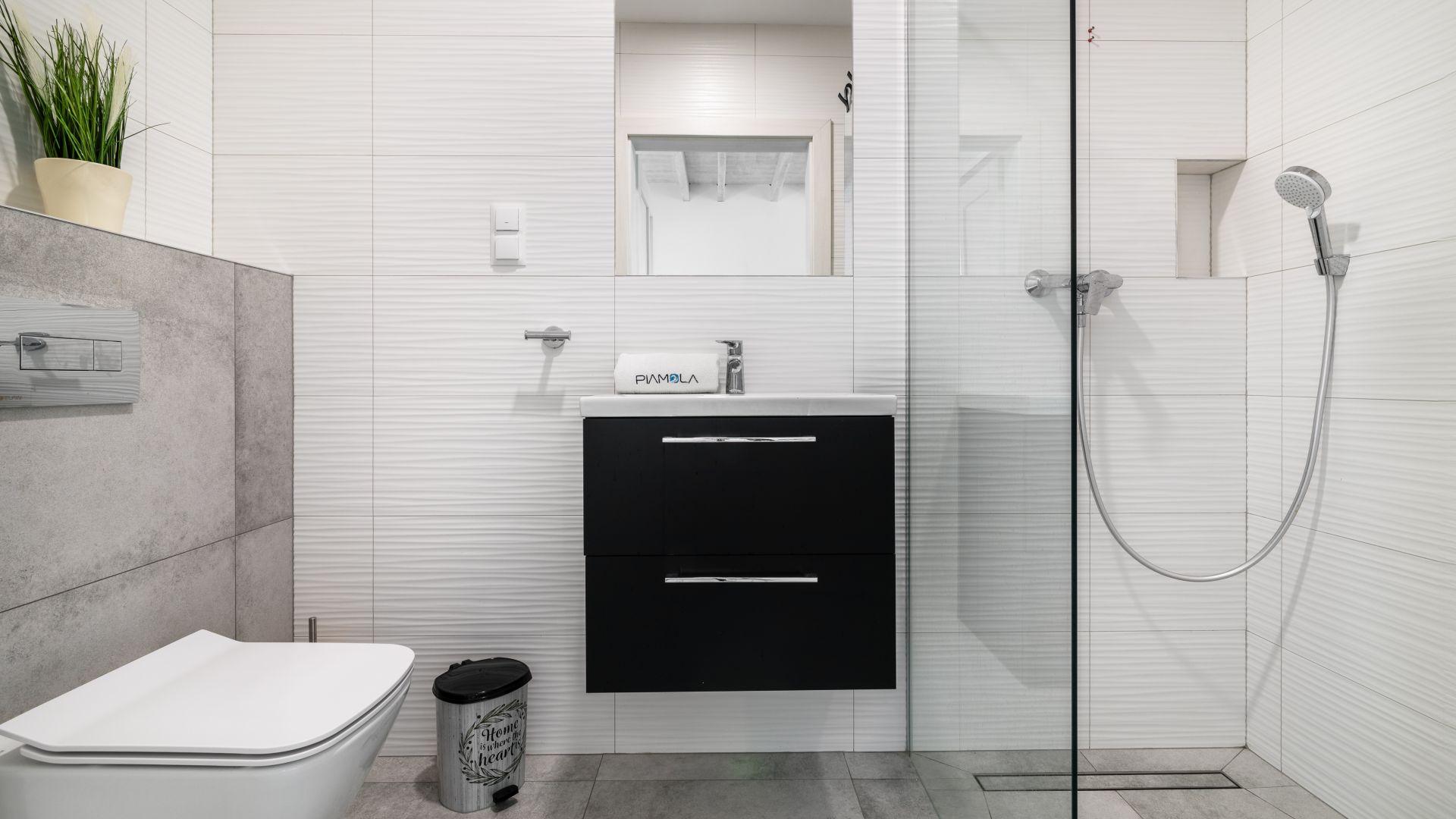 Łazienka jest praktyczna i funkcjonalna, z prysznicem, ręcznikami i suszarką do włosów. Wszystko, czego potrzebujesz, aby poczuć się jak w domu.
