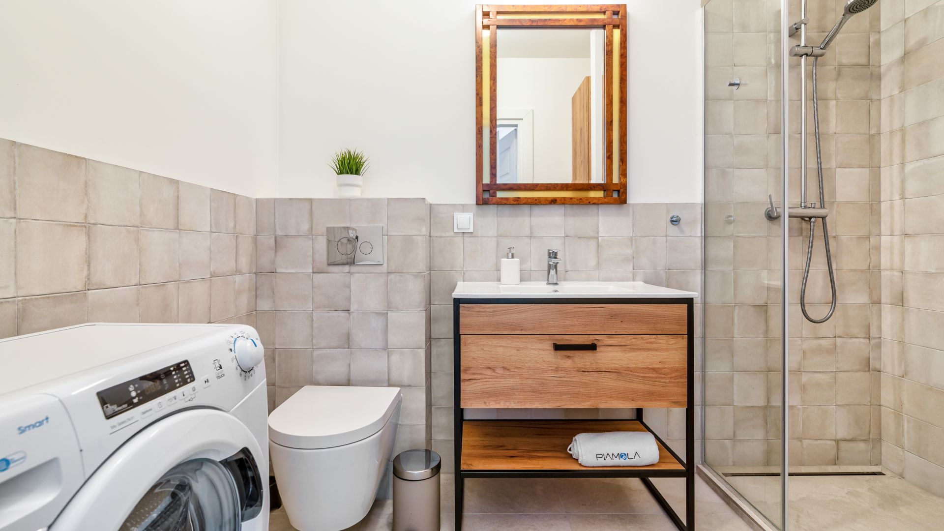 Dodatkowym udogodnieniem jest pralka, która zapewnia wygodę podczas dłuższych pobytów. Na terenie osiedla znajduje się ogólnodostępny plac zabaw, dzięki czemu apartament świetnie sprawdzi się również dla rodzin z dziećmi.