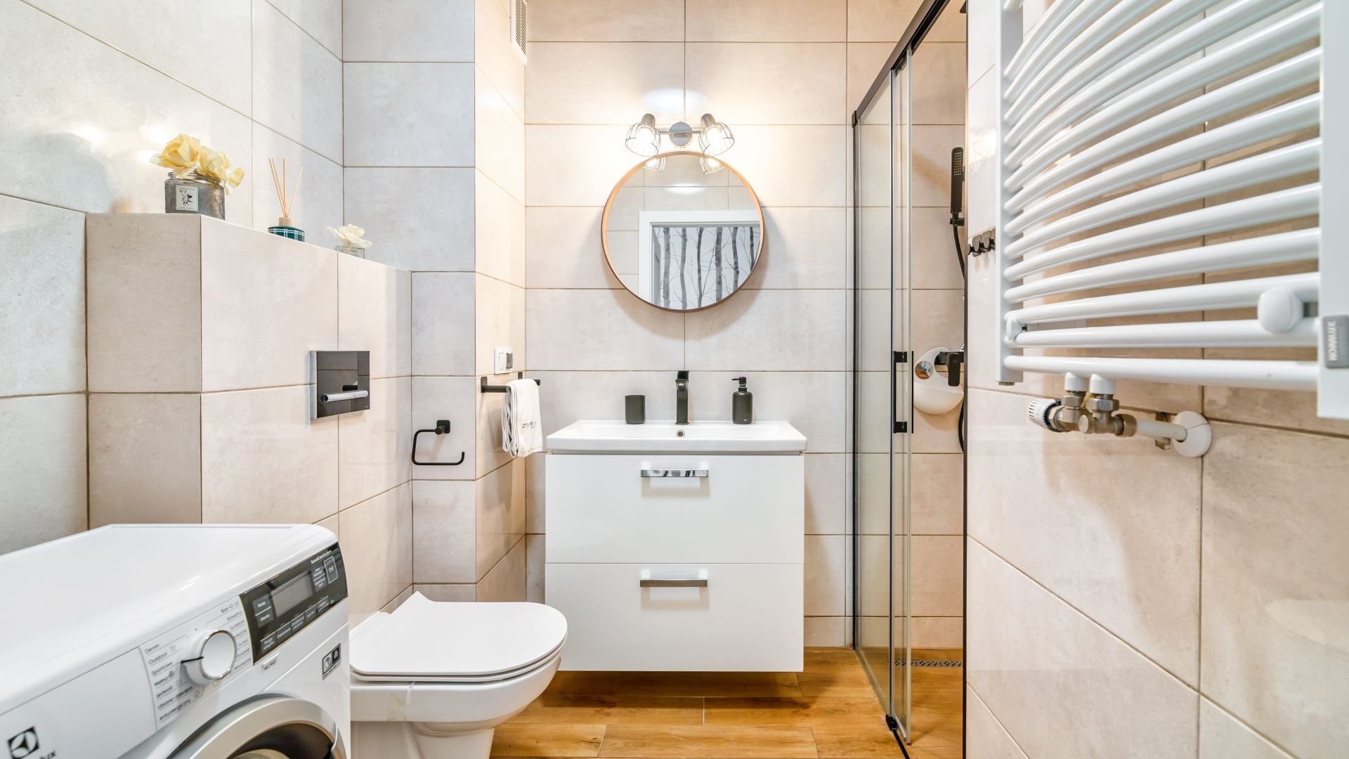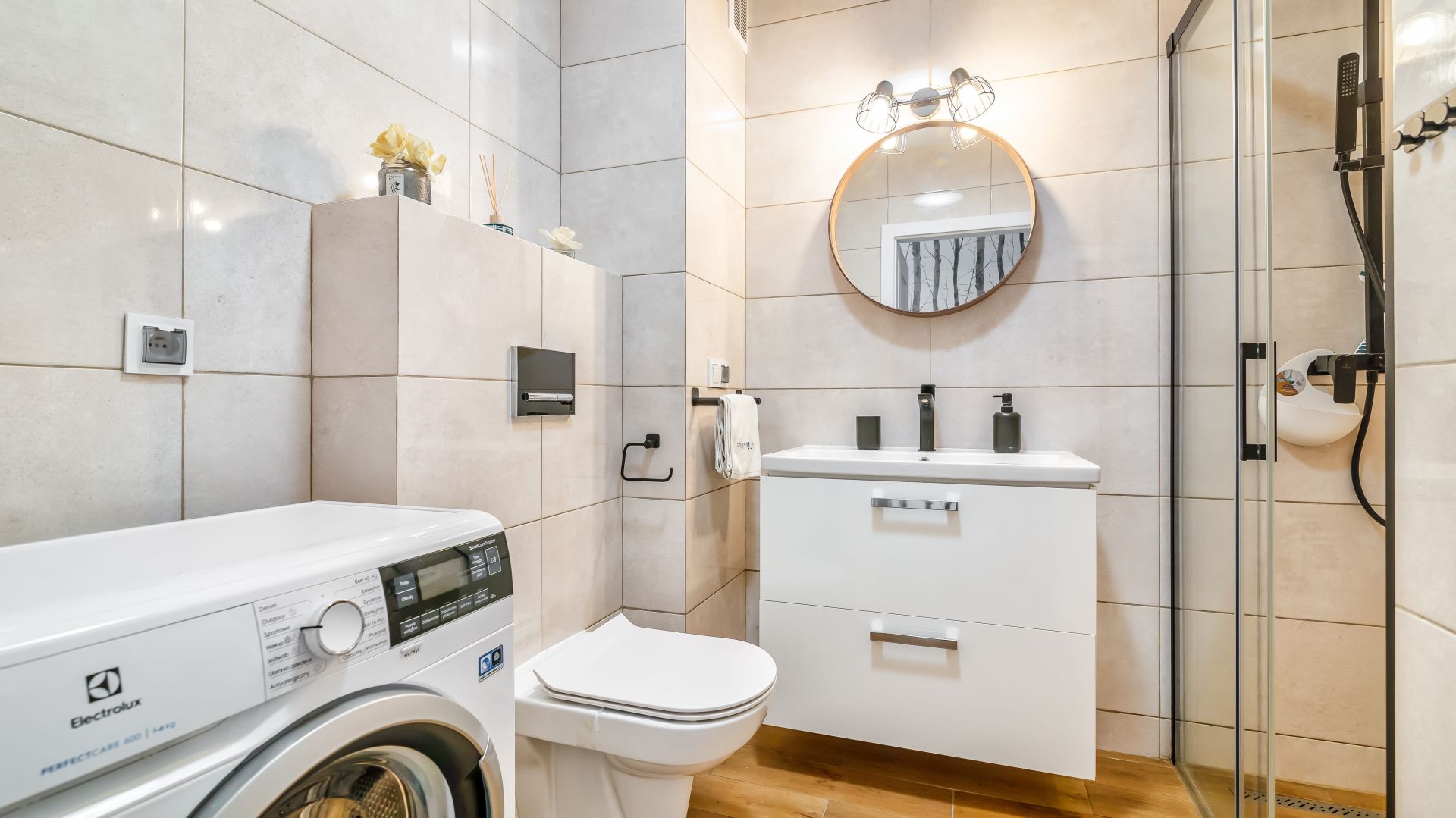 Sypialnia z komfortowym łóżkiem małżeńskim gwarantuje spokojny sen i prywatność, a w apartamencie dostępna jest także pralka, co stanowi duże udogodnienie przy dłuższych pobytach. Goście mają dostęp do szybkiego Wi-Fi, dzięki czemu można wygodnie pracować zdalnie lub korzystać z rozrywki online. Apartament również oferuje dostęp do rowerów.