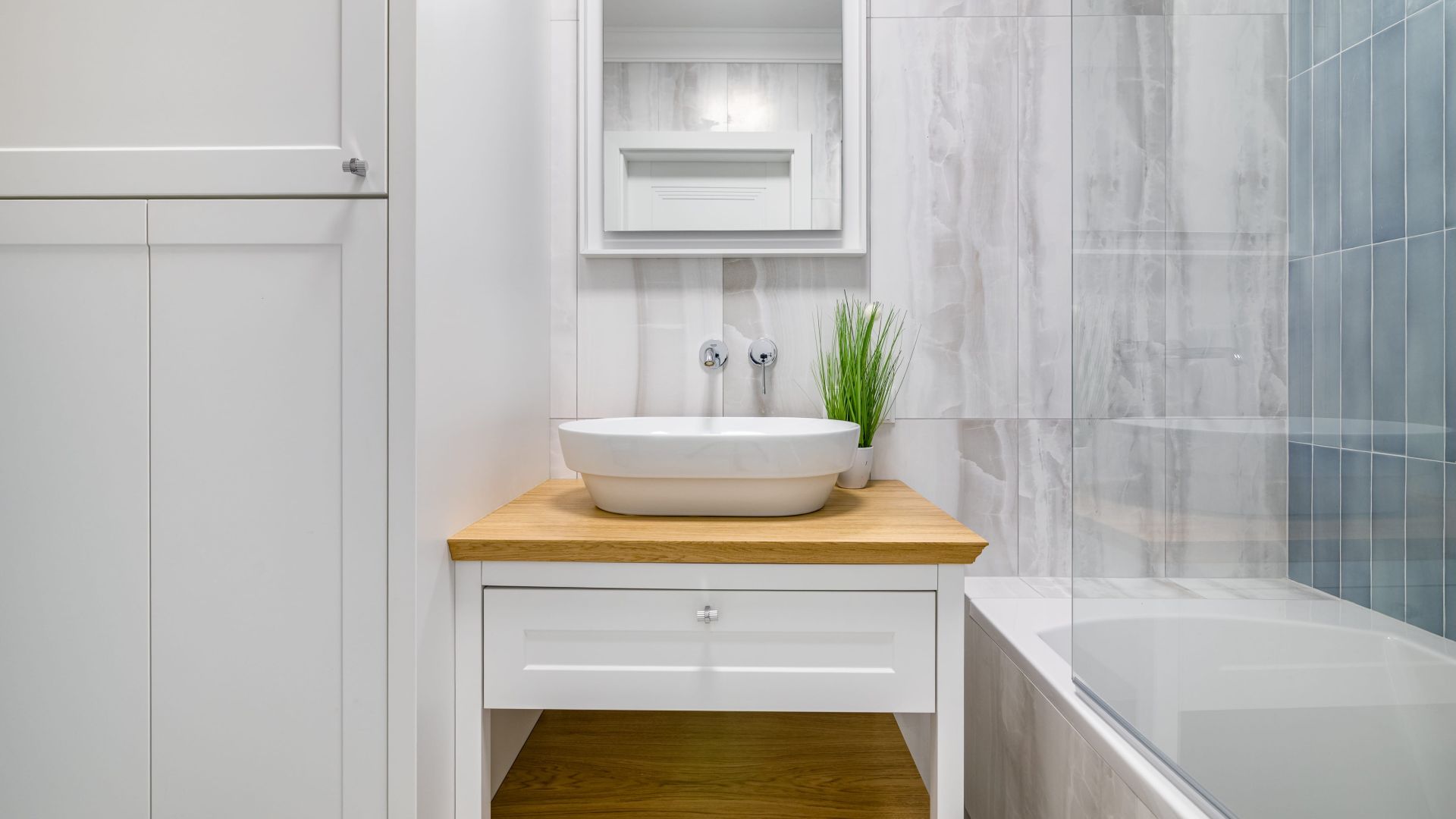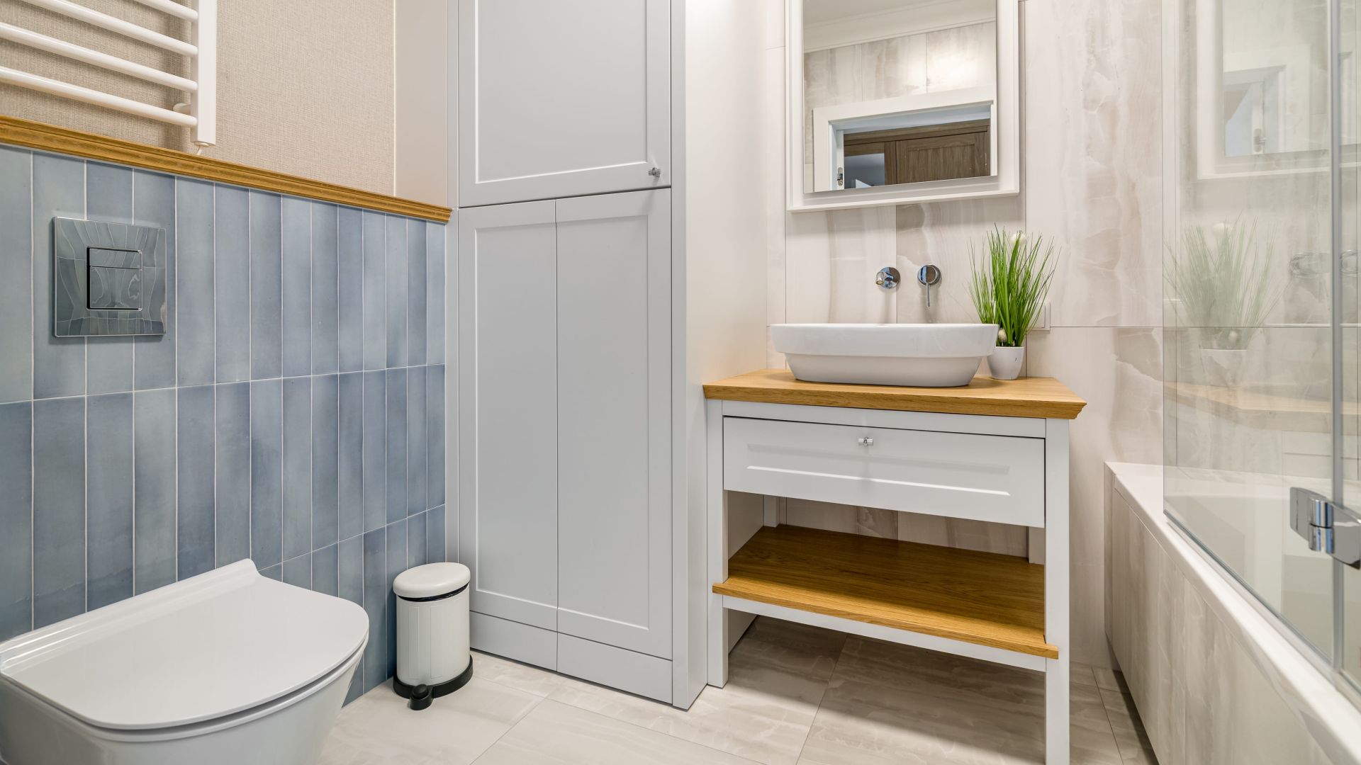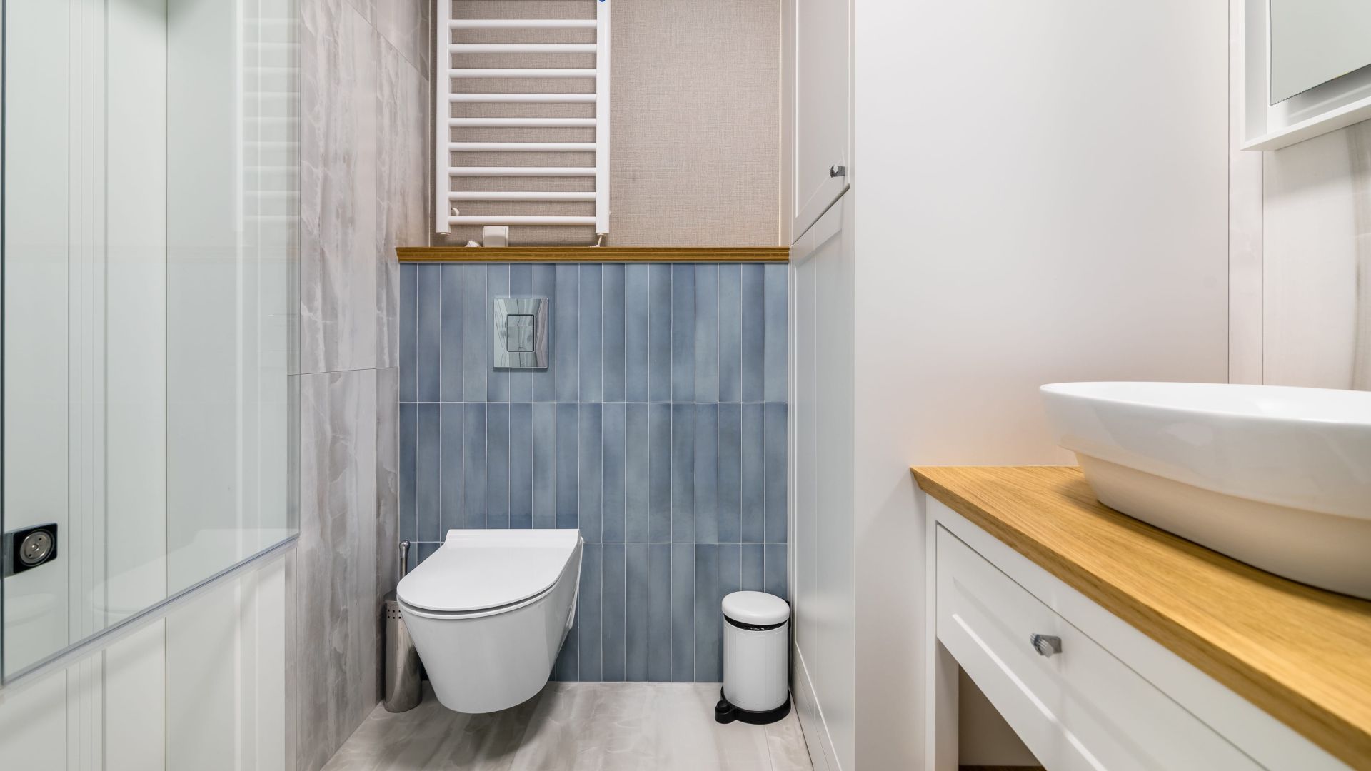 Łazienka wyposażona jest w wannę, pralkę, suszarkę do włosów oraz komplet ręczników – wszystko, co potrzebne do wygodnego pobytu.