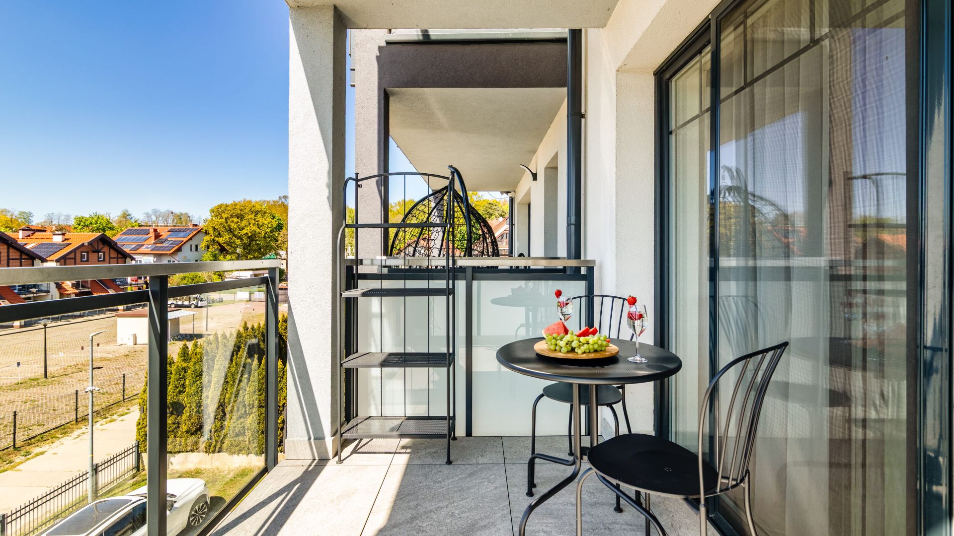 Z salonu prowadzi wyjście na balkon, z którego rozpościera się piękny widok na Zalew Wiślany. Do dyspozycji gości są także meble ogrodowe, idealne na poranną kawę lub wieczorny relaks.