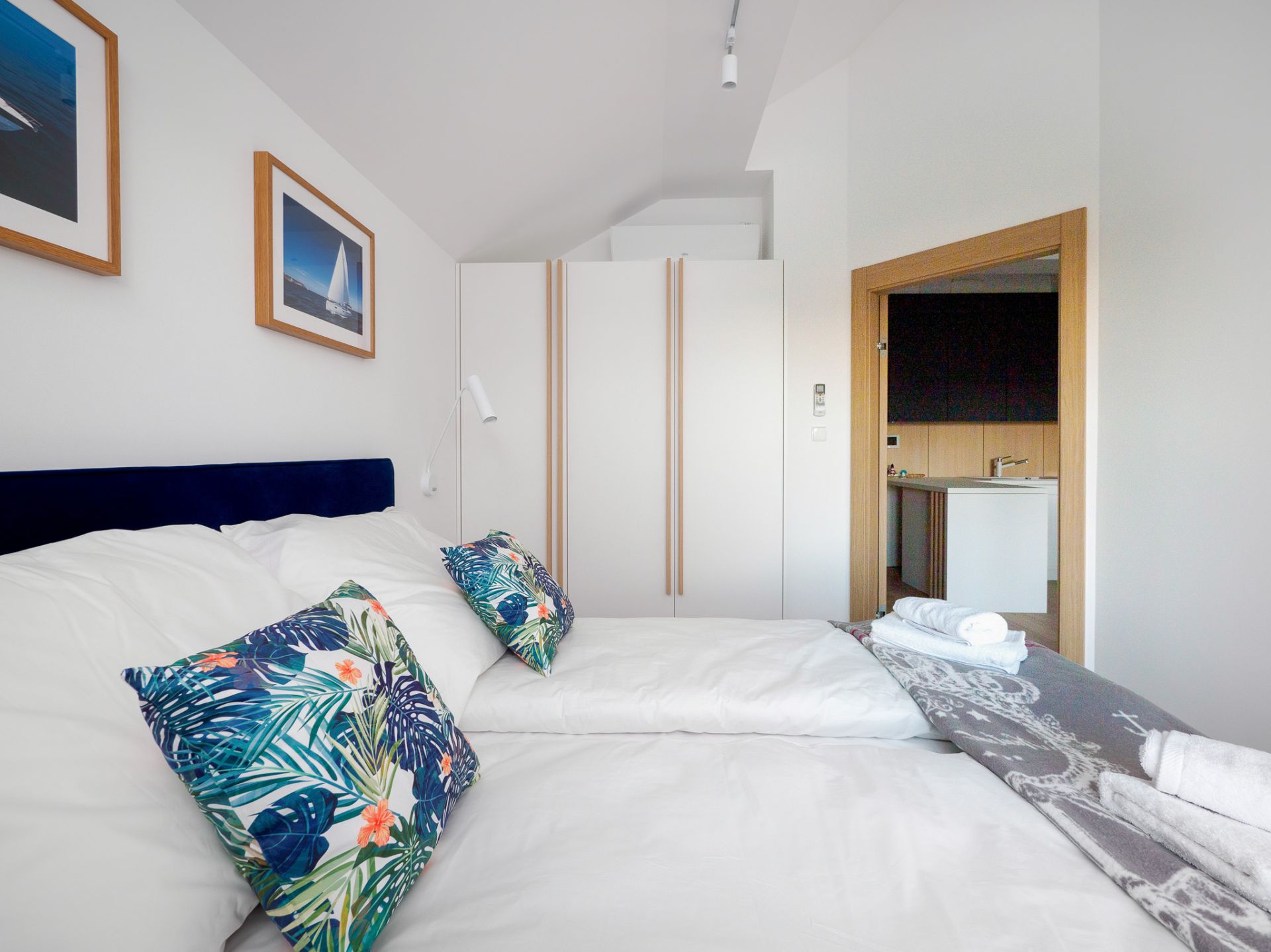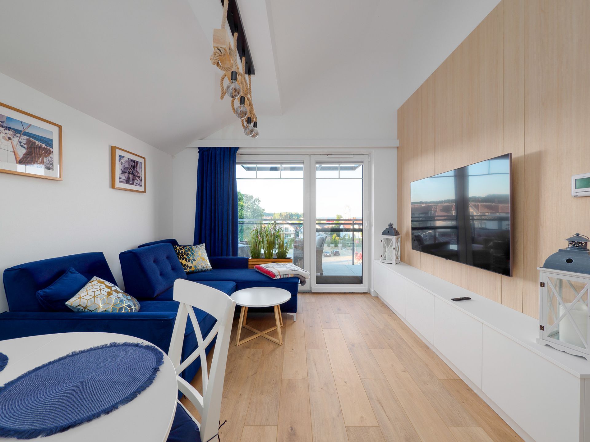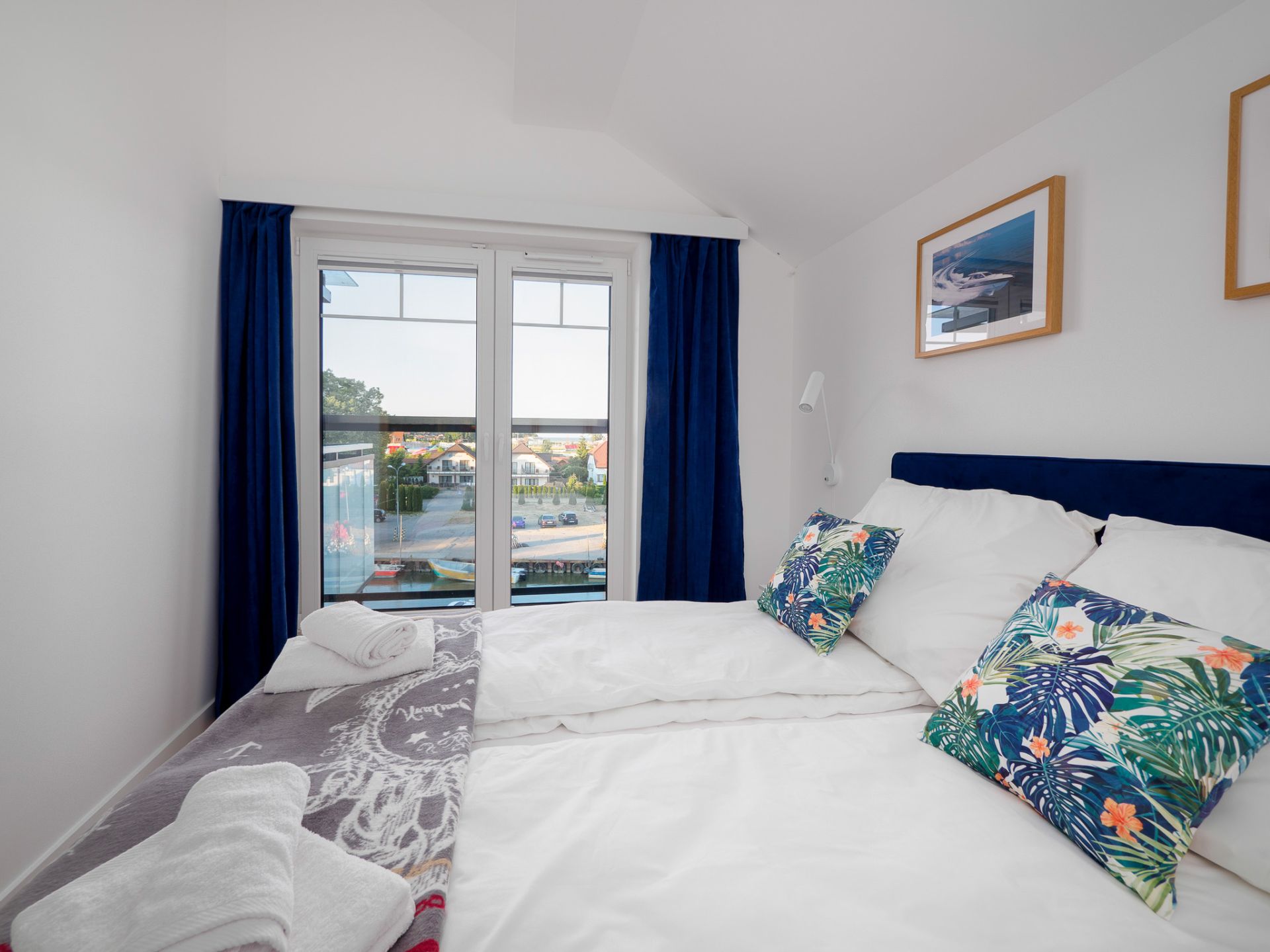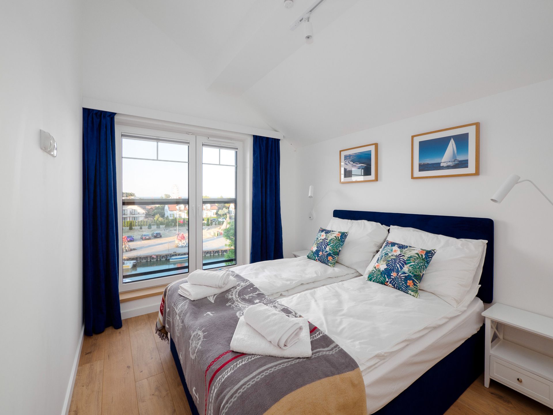 Port Krynica 24, to przytulny, funkcjonalny i elegancki apartament z pięknym widokiem na wody Zalewu Wiślanego. Zlokalizowany na trzecim piętrze 40 metrowy lokal przeznaczony jest do wypoczynku dla maksymalnie 4 osób. Wnętrze zostało indywidualnie zaprojektowane i wykonane z najwyższej klasy materiałów wykończeniowych. Apartament posiada sypialnię z wygodnym łóżkiem małżeńskim, szafę na ubrania, a nowoczesne podświetlenia wprowadzają w przyjemny nastrój.