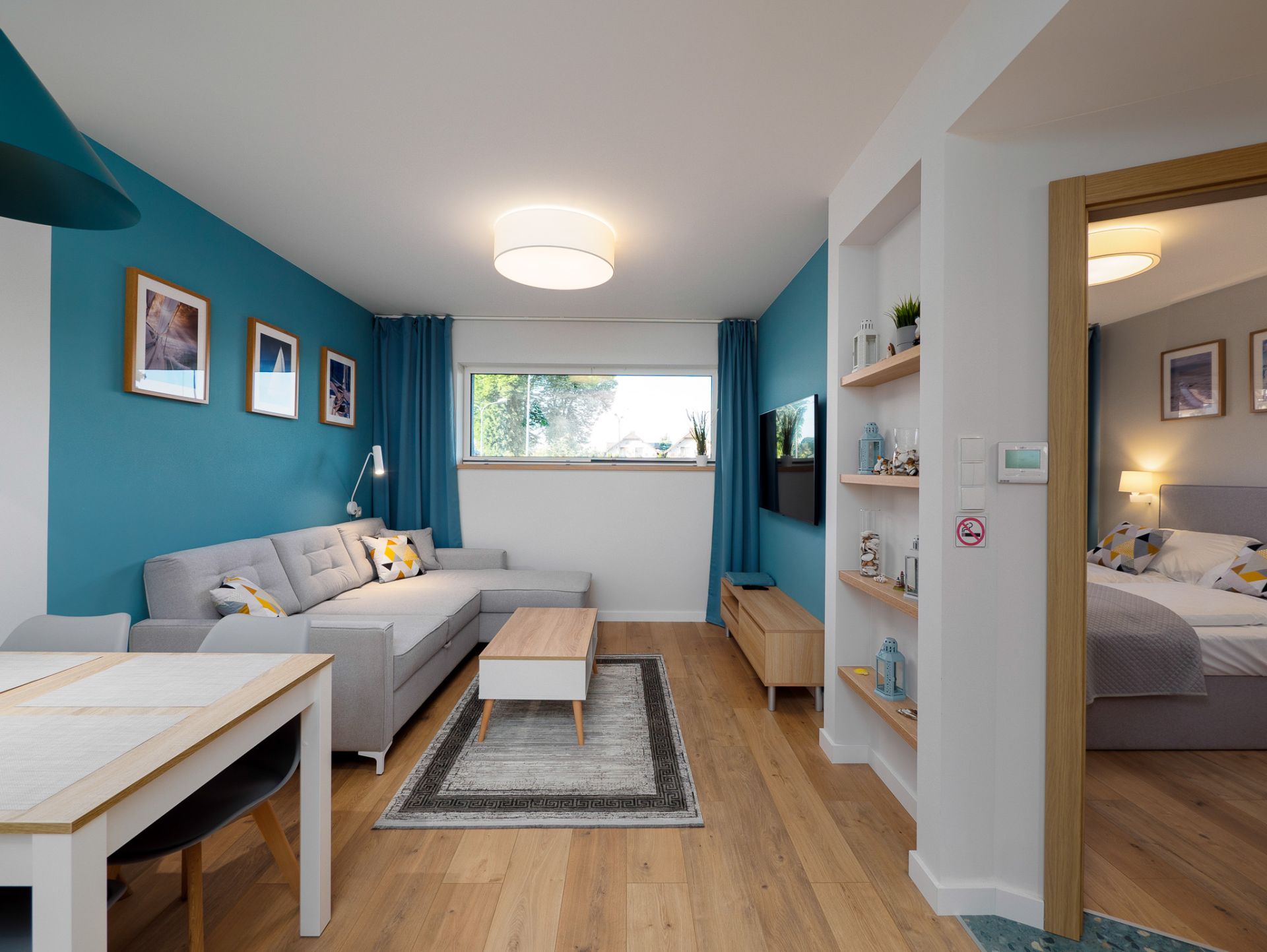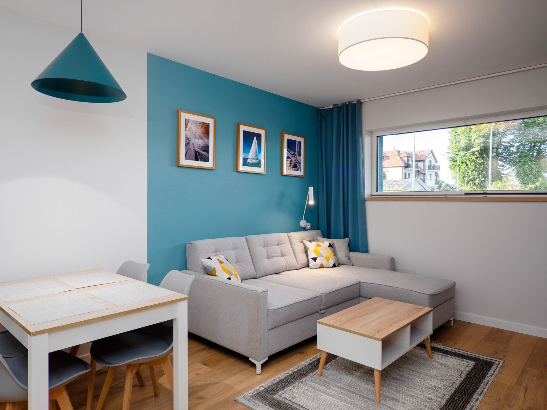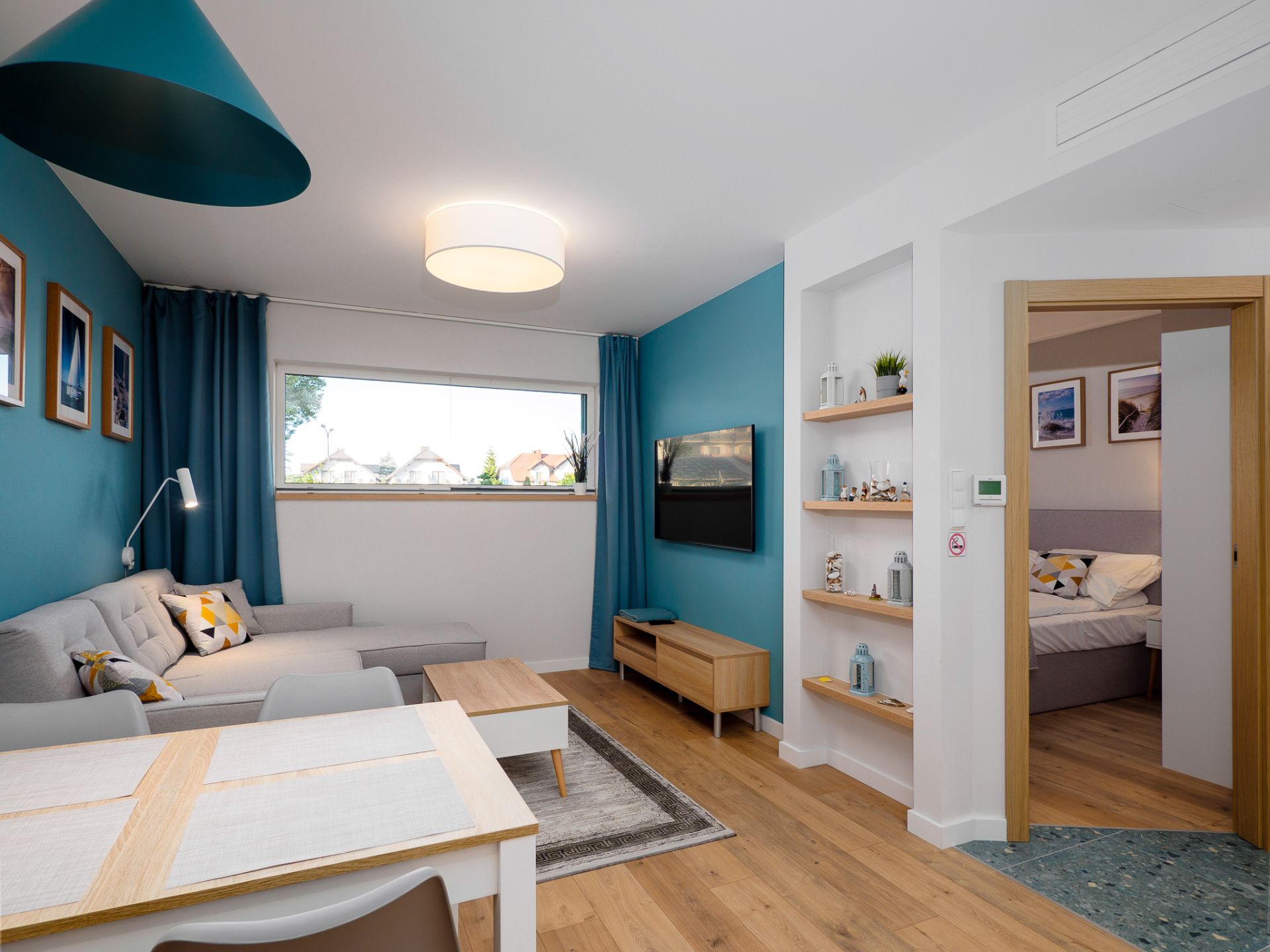 Funkcjonalny apartament w Stegnie z widokiem na las