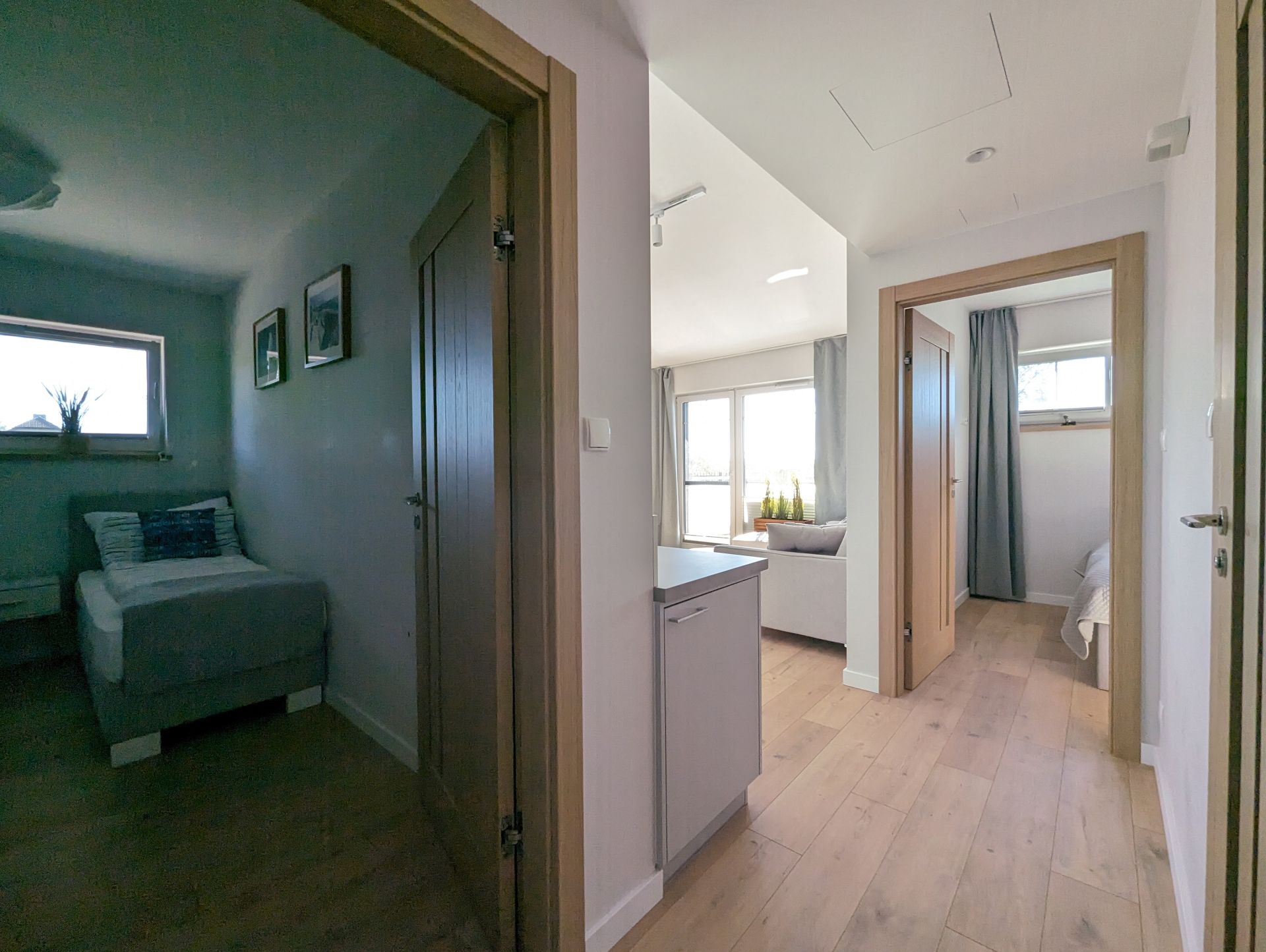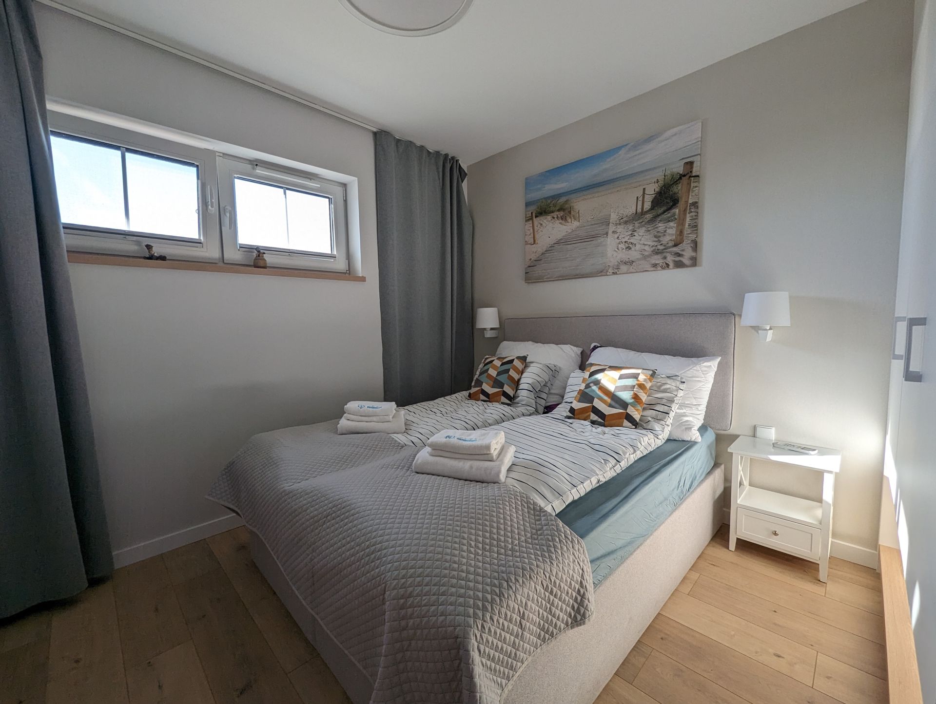 Salon z wygodną kanapą i TV pozwoli na chwile relaksu. Przestronna, elegancka, z dużym łóżkiem sypialnia, na pewno zadowoli niejednych z Państwa, a kiedy wyjazd na wypoczynek wybierzemy się w większym gronie, druga sypialnia z dwoma pojedynczymi łóżkami da nam dużo swobody.