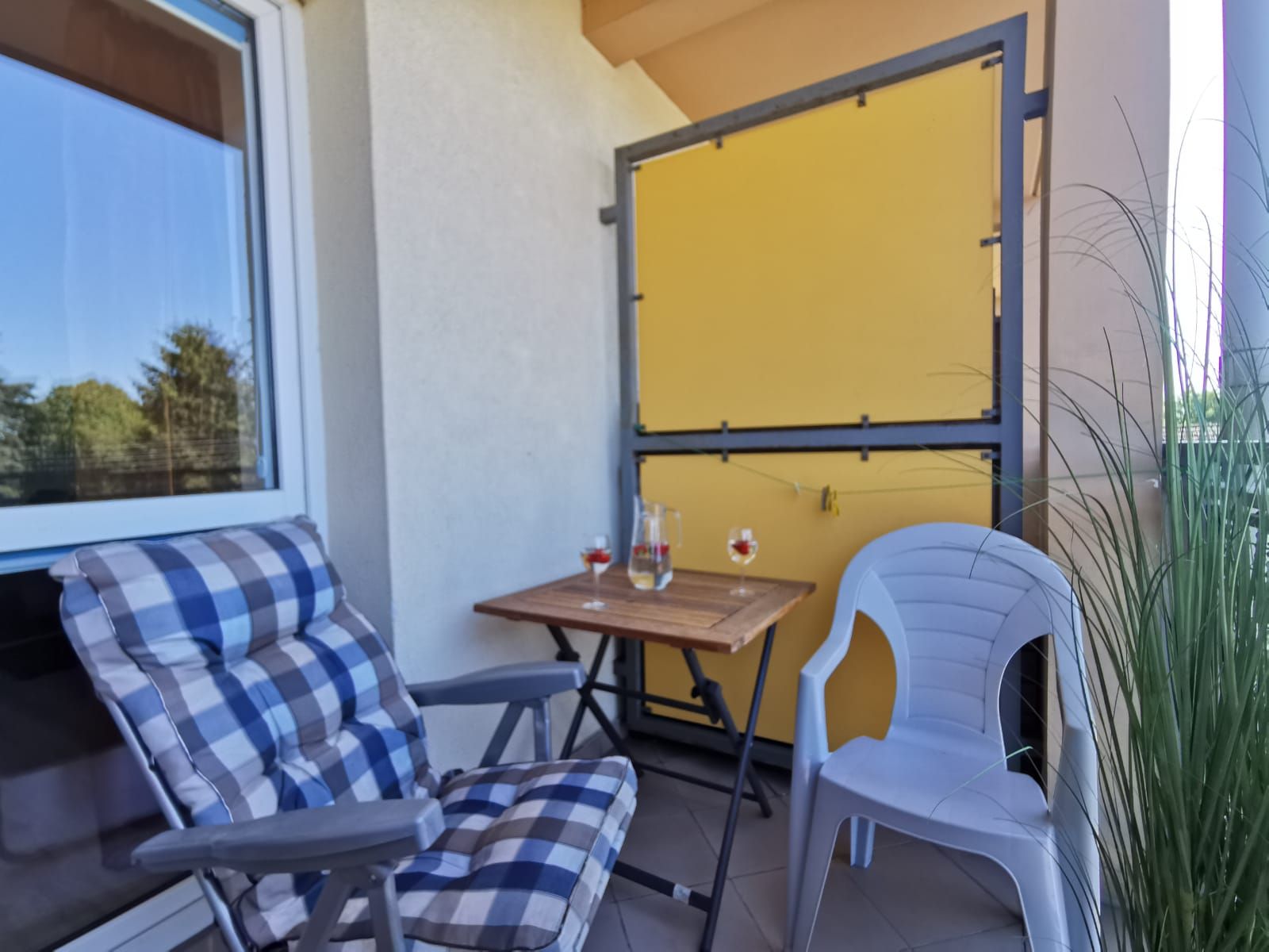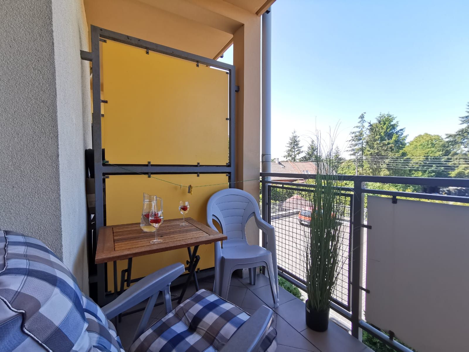 Dodatkowym atutem apartamentu jest balkon, na którym można cieszyć się poranną kawą lub wieczornym odpoczynkiem na świeżym, nadmorskim powietrzu.