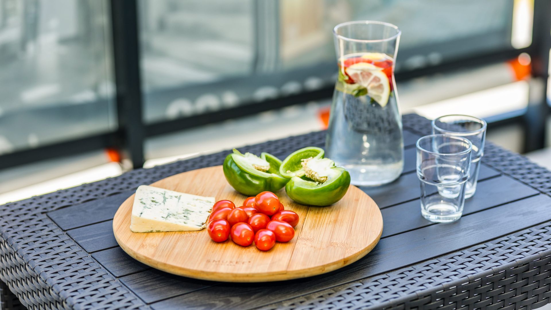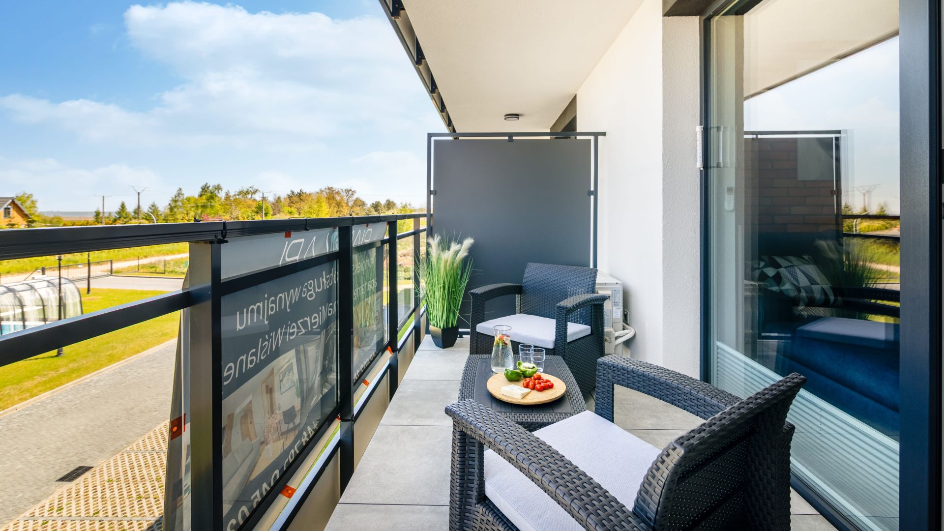Na balkonie znajdują się meble ogrodowe, z których można podziwiać piękny widok na Zalew Wiślany. To idealne miejsce na poranną kawę lub wieczorny relaks.