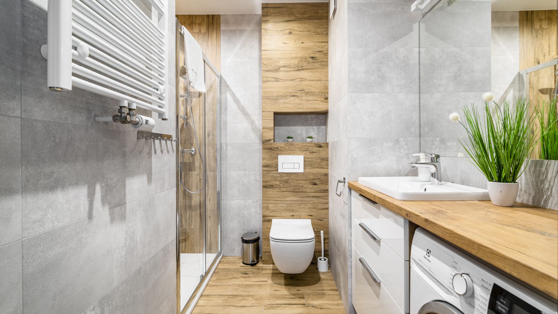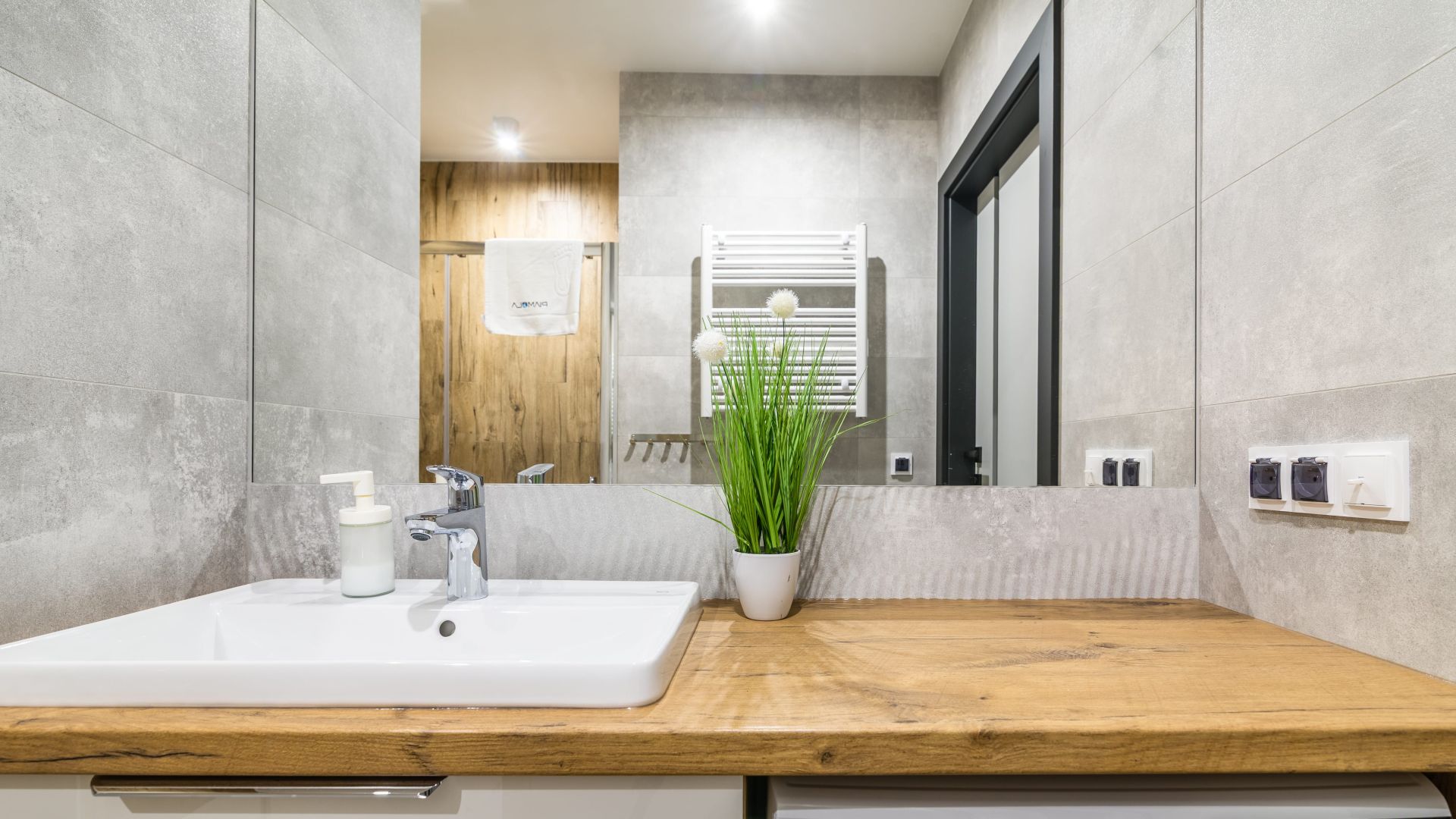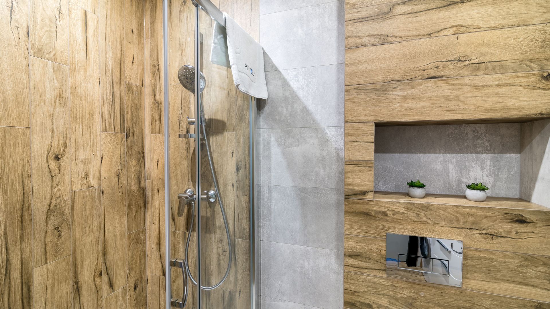 Łazienka została wyposażona w kabinę prysznicową, pralkę oraz suszarkę, co zapewnia pełen komfort podczas pobytu. Apartament jest również wyposażony w ręczniki.