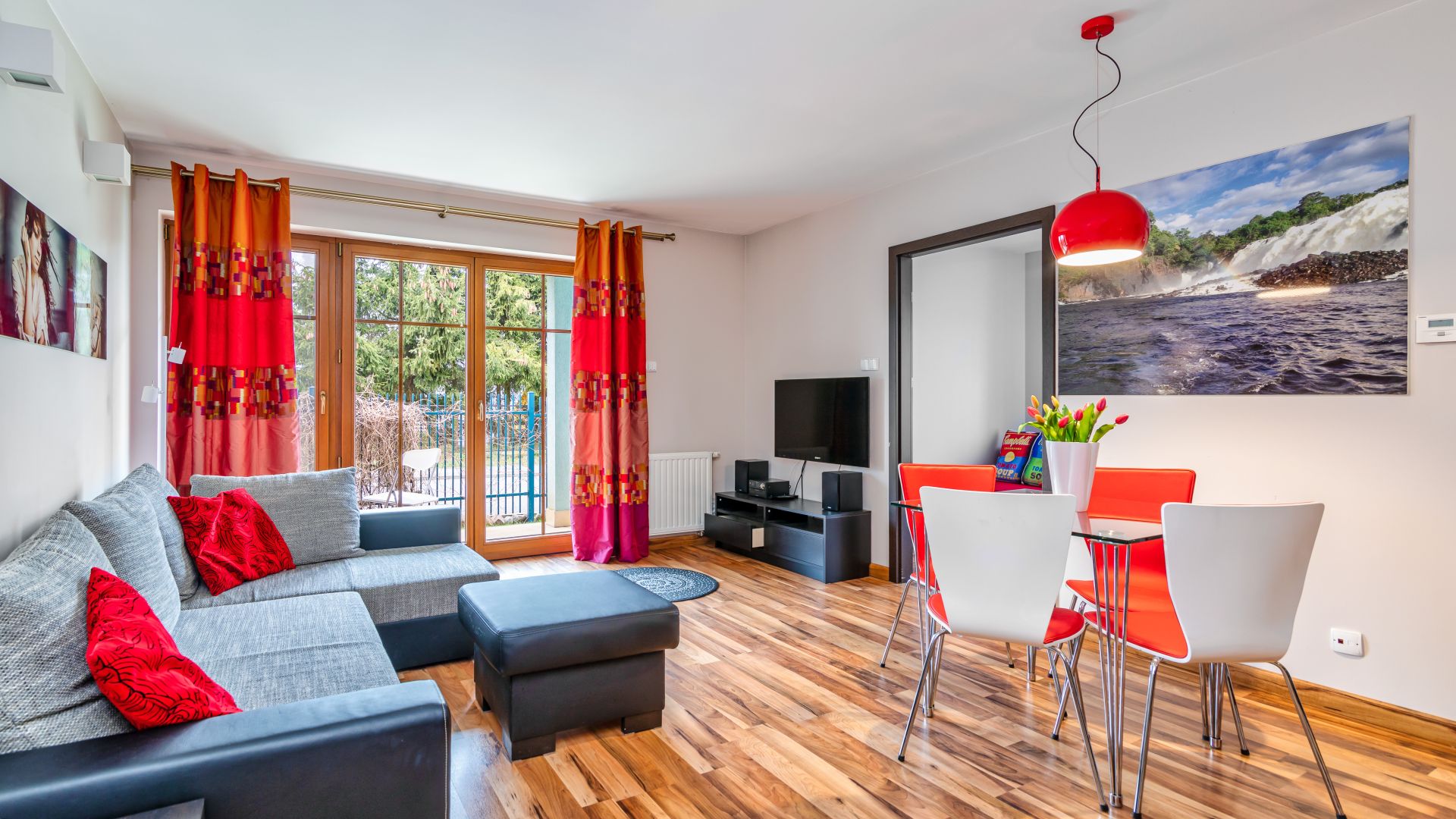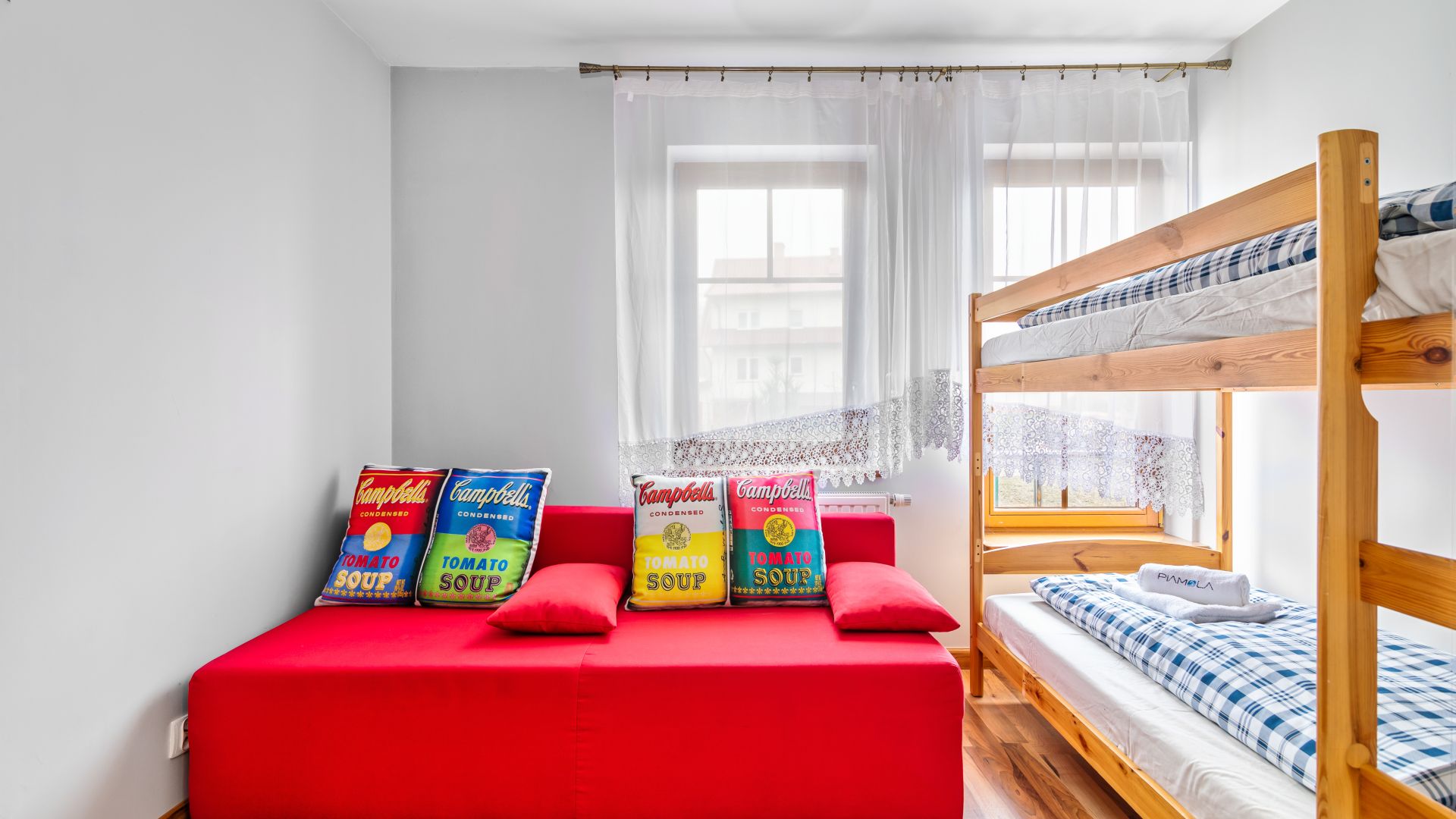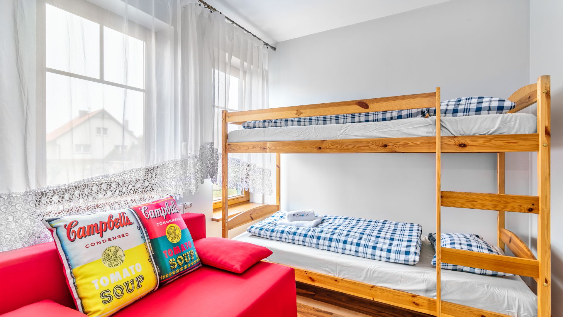 Willa Turkusowa to obiekt całoroczny znajdujący się w centralnej części Kątów Rybackich, położony tuż przy sosnowym lesie, oddalony od plaży około 1500m. W obrębie zamkniętego terenu mają Państwo do dyspozycji bezpłatne miejsce parkingowe, altanę z grilem, stojak na rowery, a dla najmłodszych bezpieczny plac zabaw. Oferowany apartament to przestronny salon, z wyjściem na taras z dostępem do części ogrodowej, sypialnia w rozkładaną sofą i piętrowym łóżkiem, przestronna łazienka z prysznicem i pralką. Aneks kuchenny wyposażony jest we wszystkie niezbędne naczynia, talerze i akcesoria. Mamy też gratkę dla kinomaniaków w postaci odtwarzacza dvd wraz z kolekcją ponad 20 filmów, które możemy oglądać wylegując się na wygodnej kanapie narożnej. Wysoki poziom wykończenia, wyjątkowy styl i duża przestrzeń, zapewnią komfortowy pobyt nawet dla 5 osobowej rodziny.